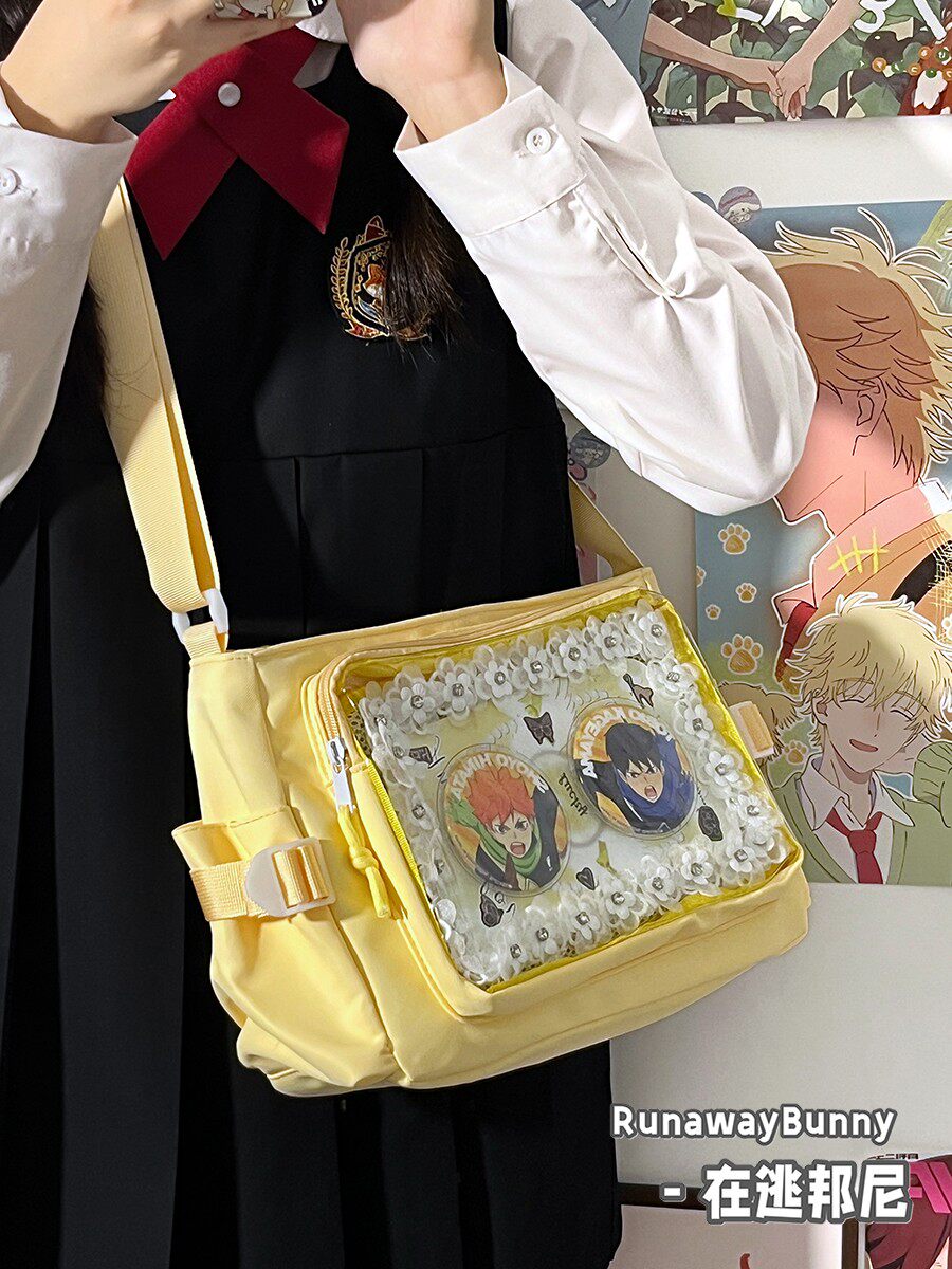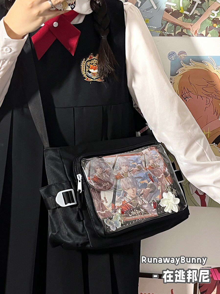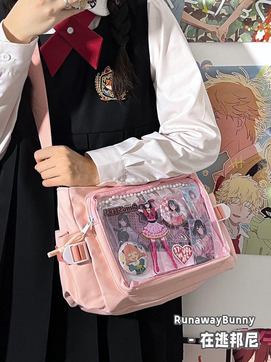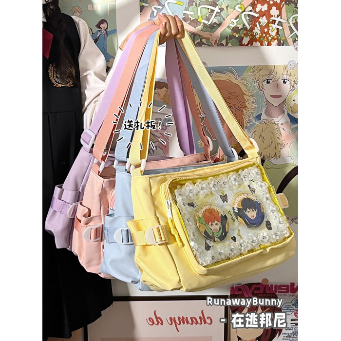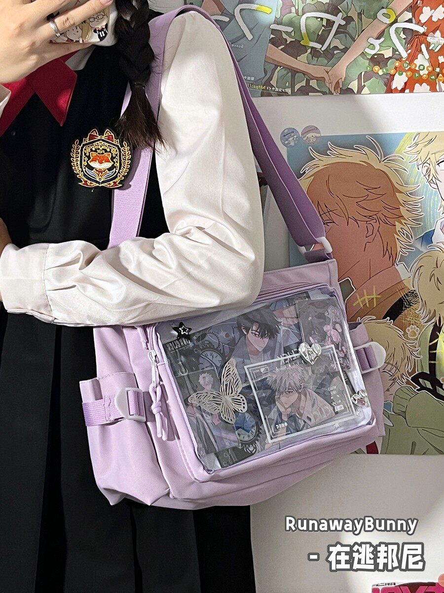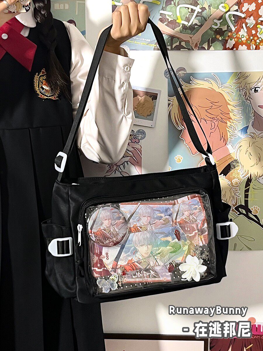 校園百搭簡約純色單肩斜背郵差包紥穀透明吧唧女JK二次元娃包痛包