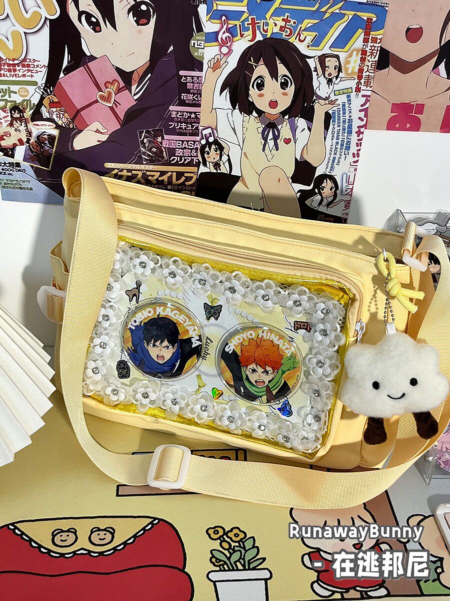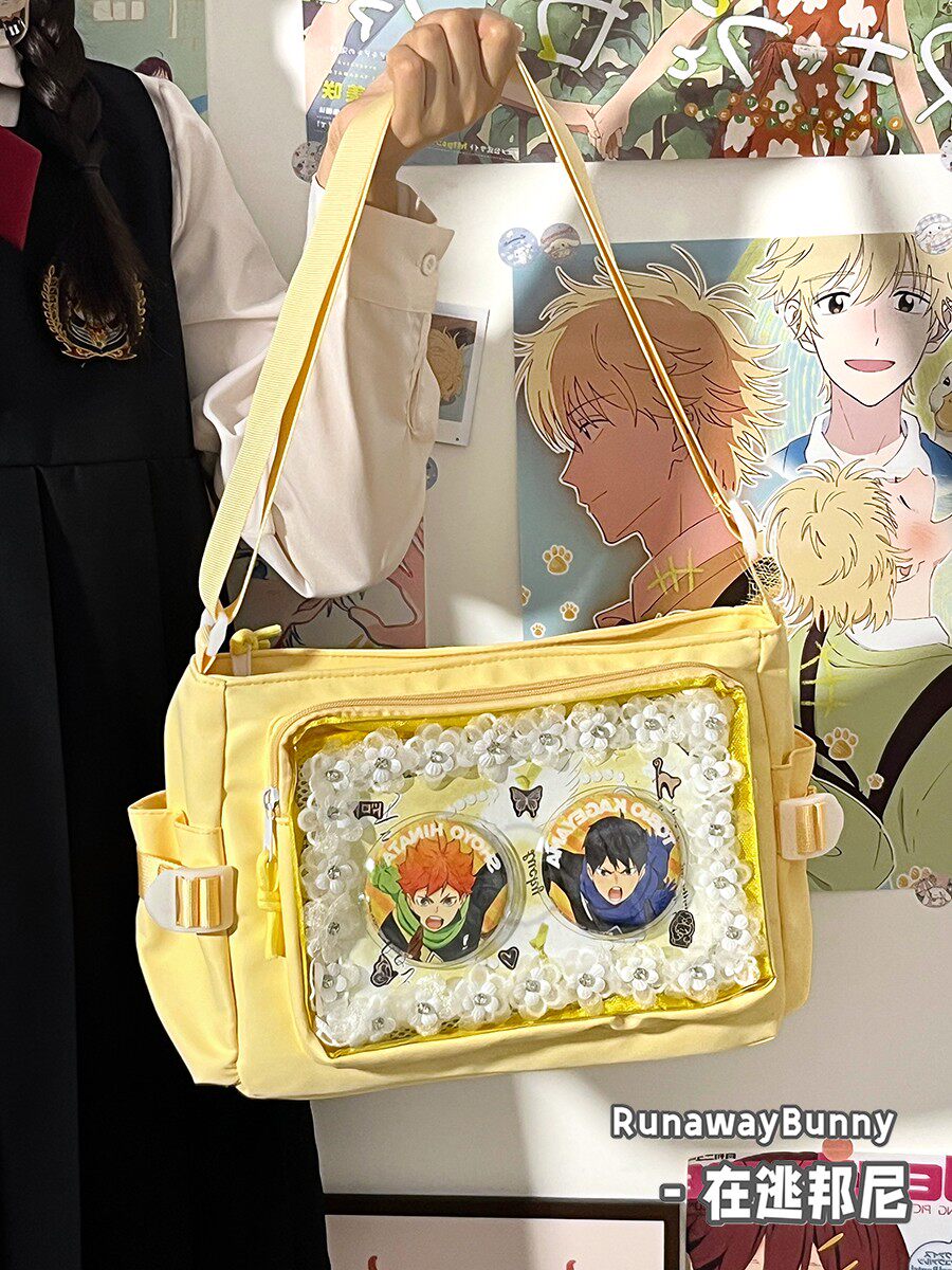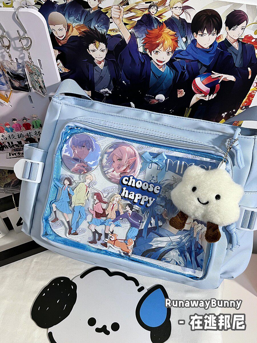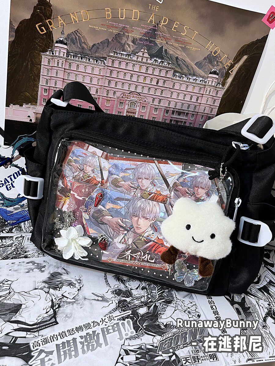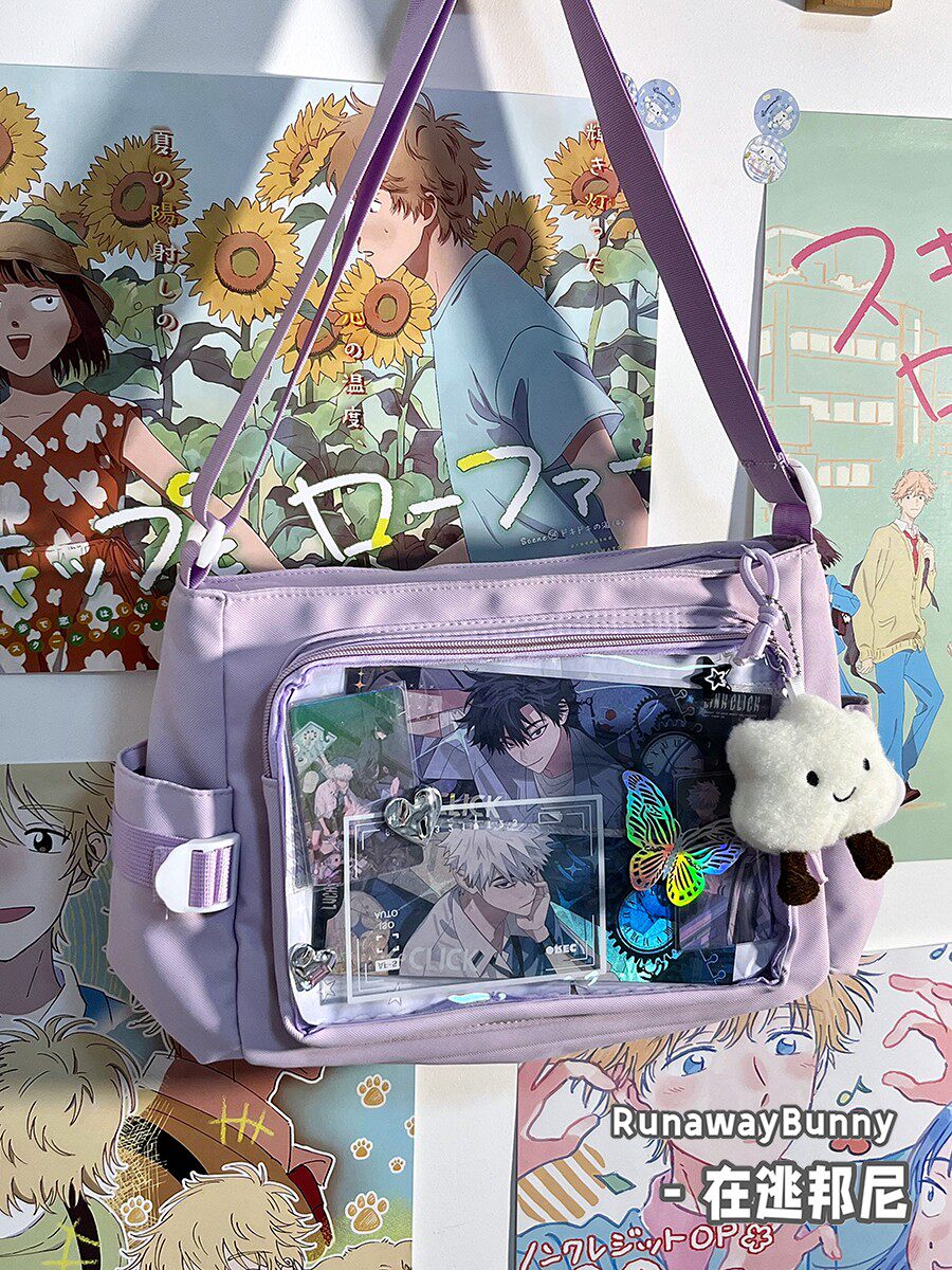 校園百搭簡約純色單肩斜背郵差包紥穀透明吧唧女JK二次元娃包痛包