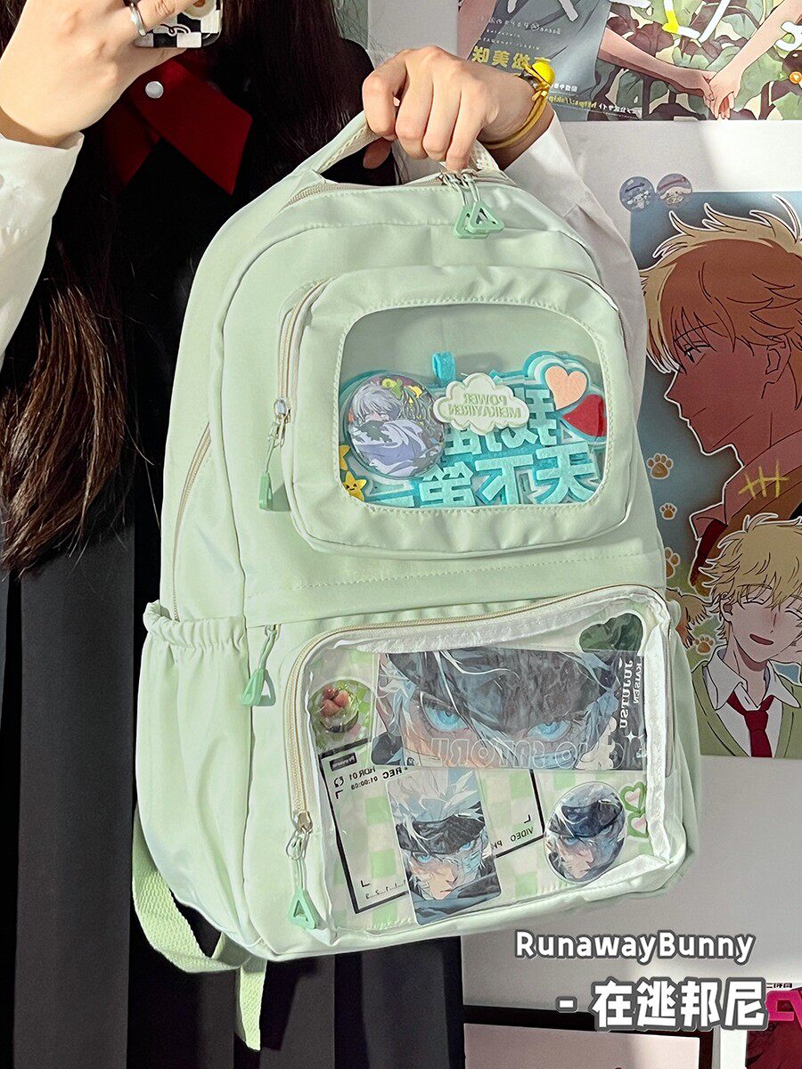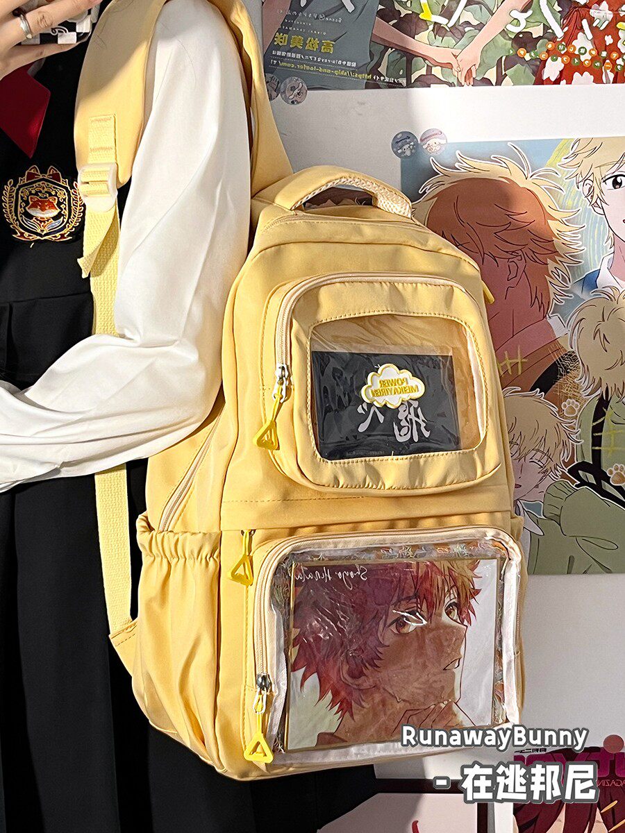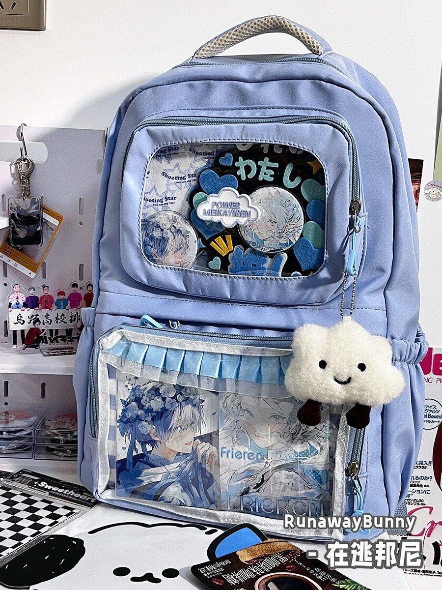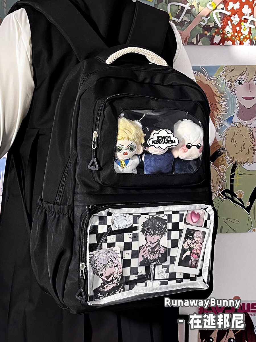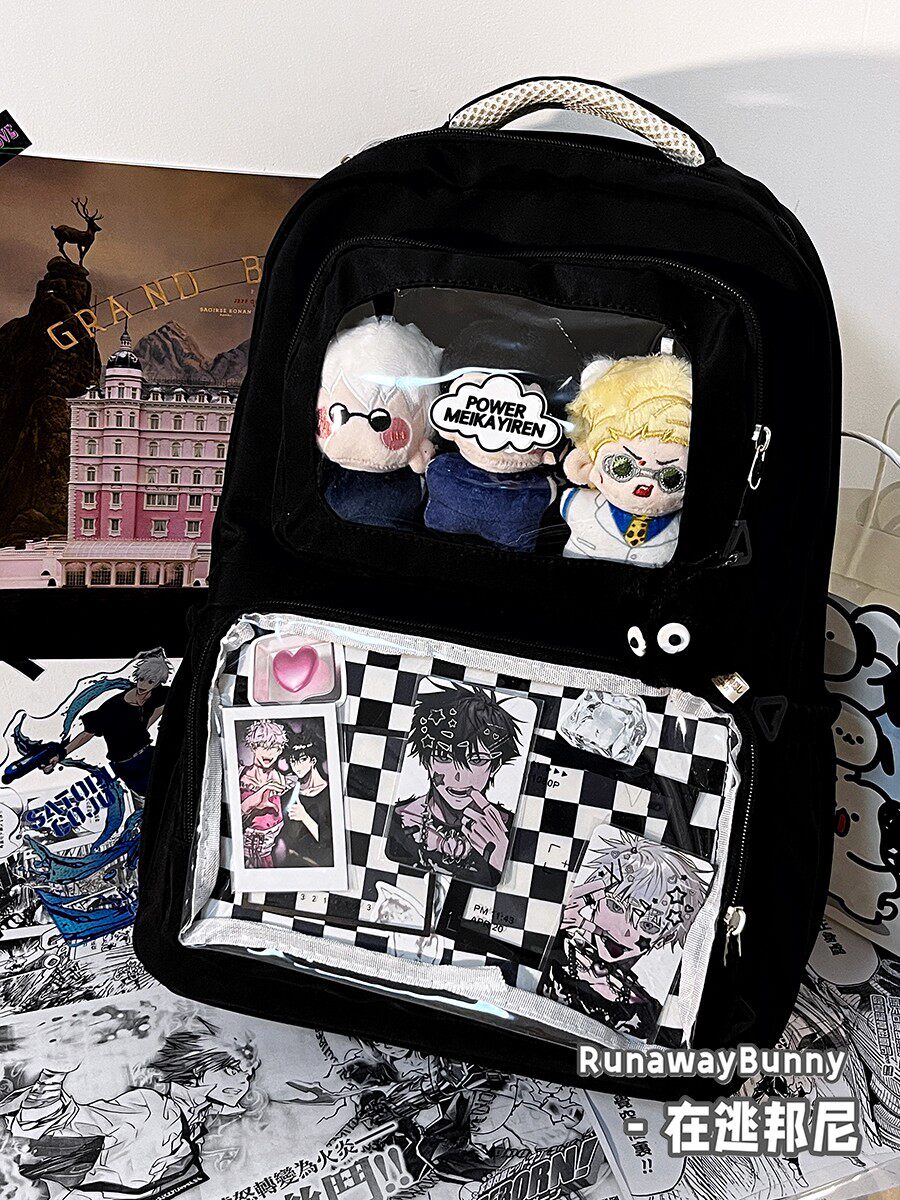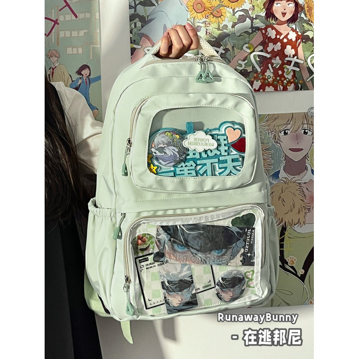 日系ins痛包百搭大容量雙肩包女2024新款透明學院風校園學生書包