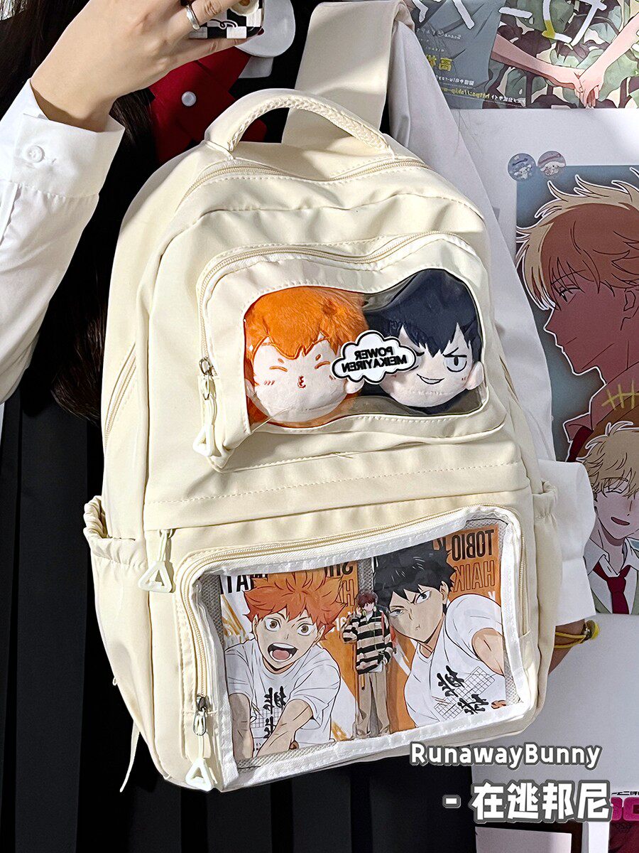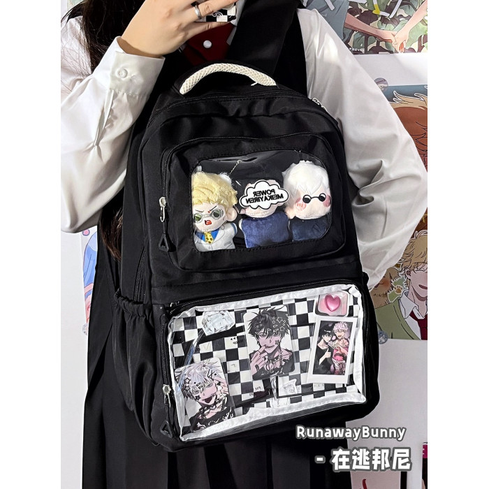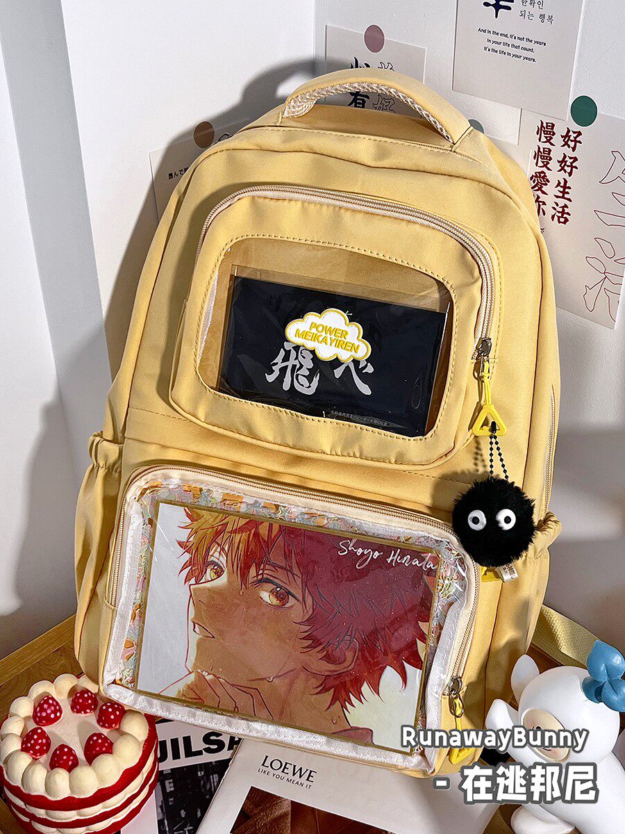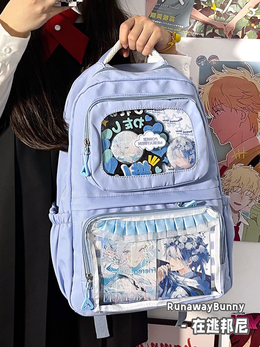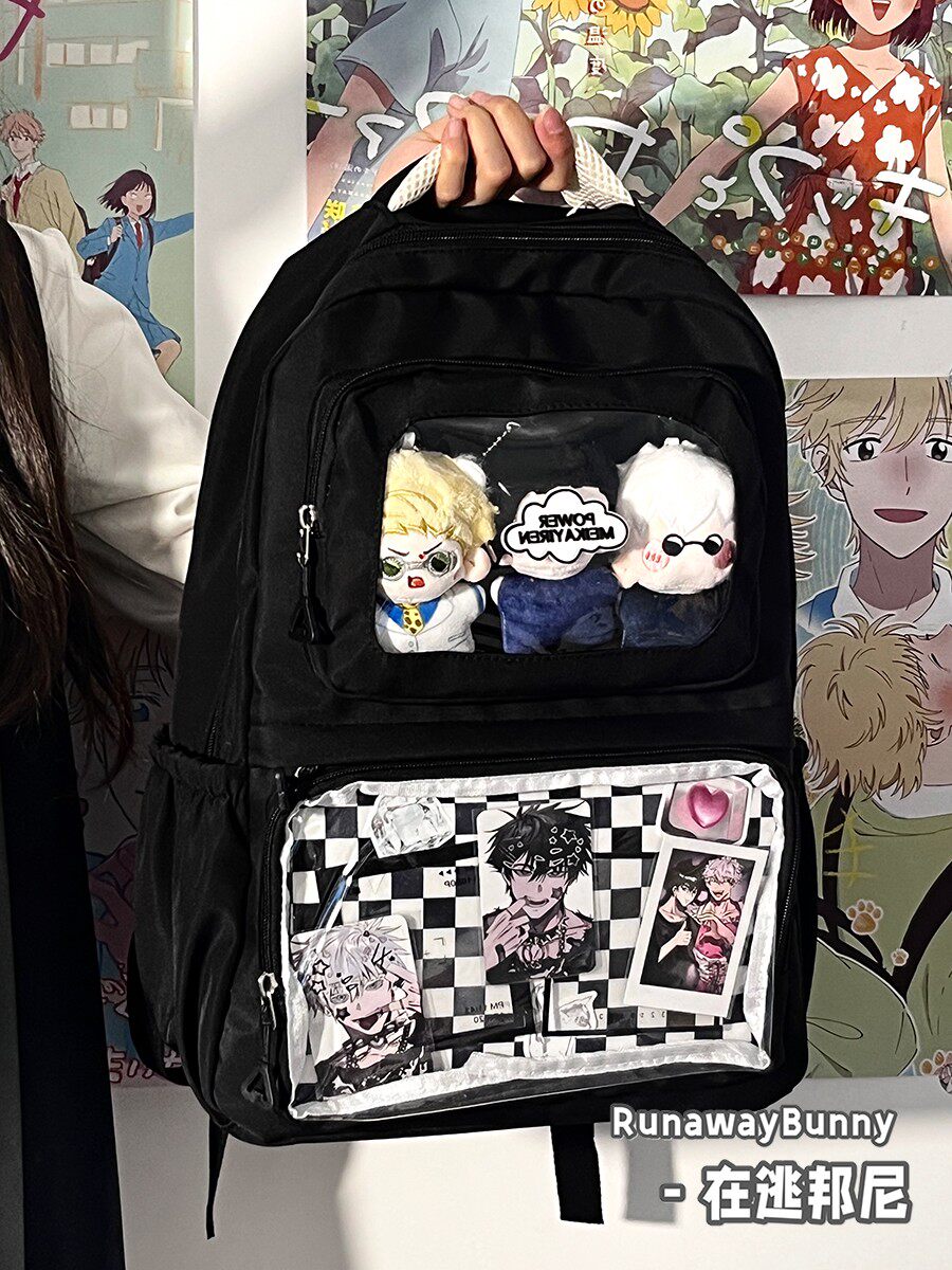日系ins痛包百搭大容量雙肩包女2024新款透明學院風校園學生書包