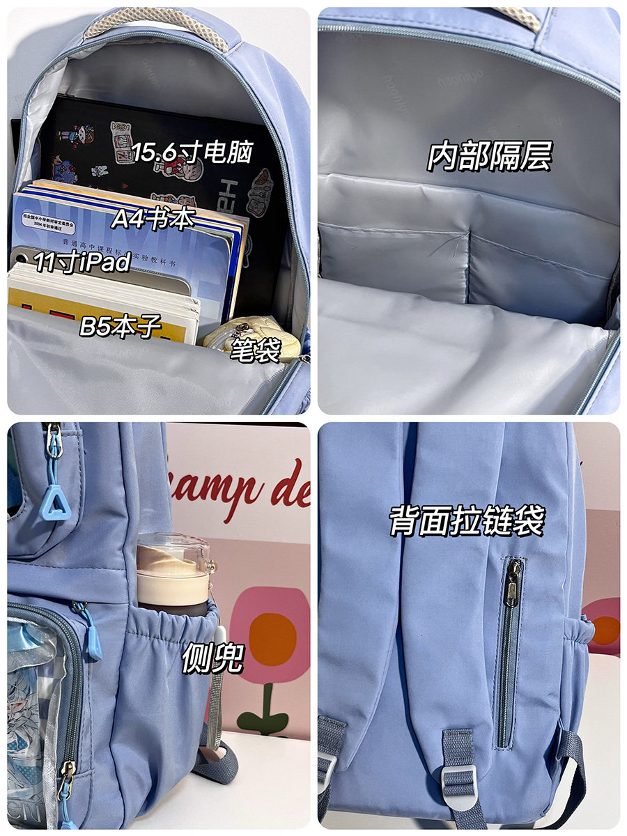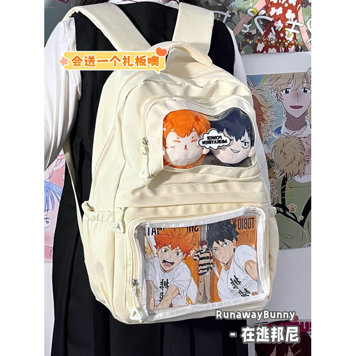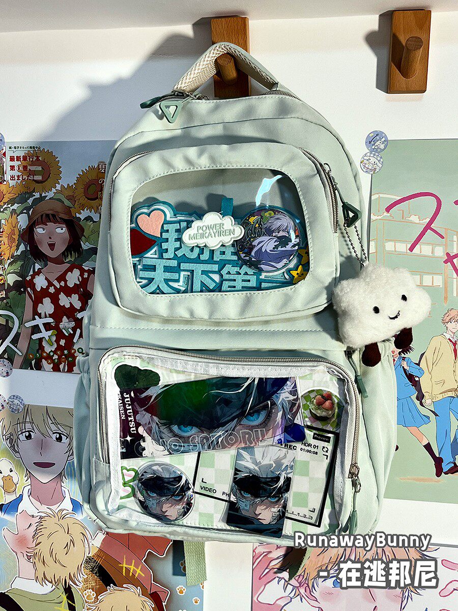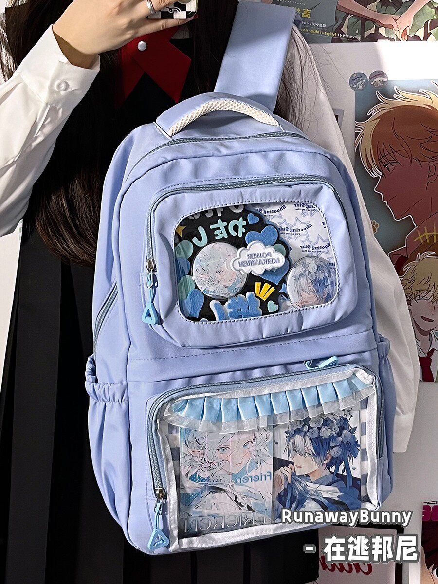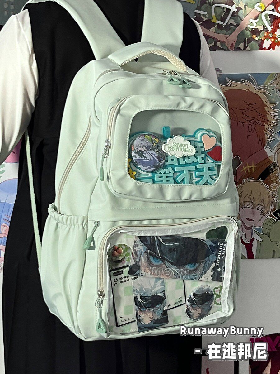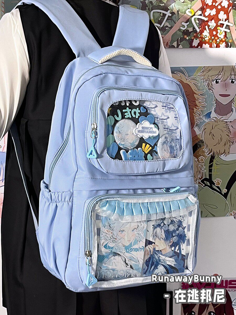 日系ins痛包百搭大容量雙肩包女2024新款透明學院風校園學生書包