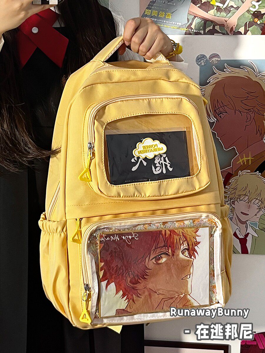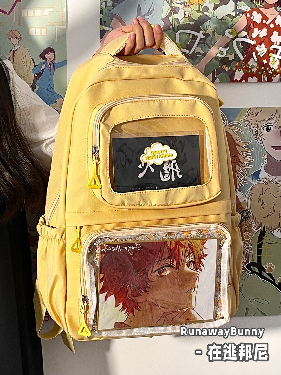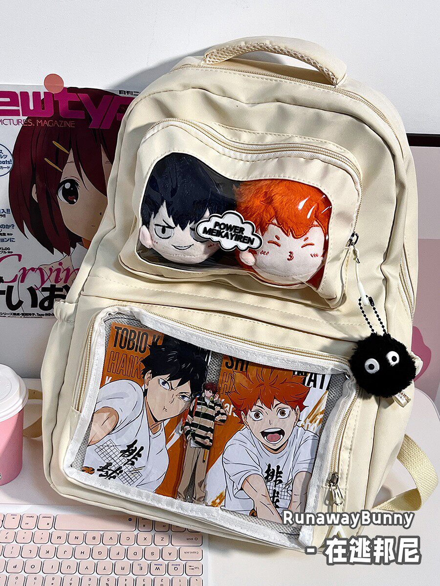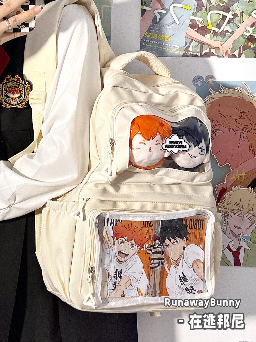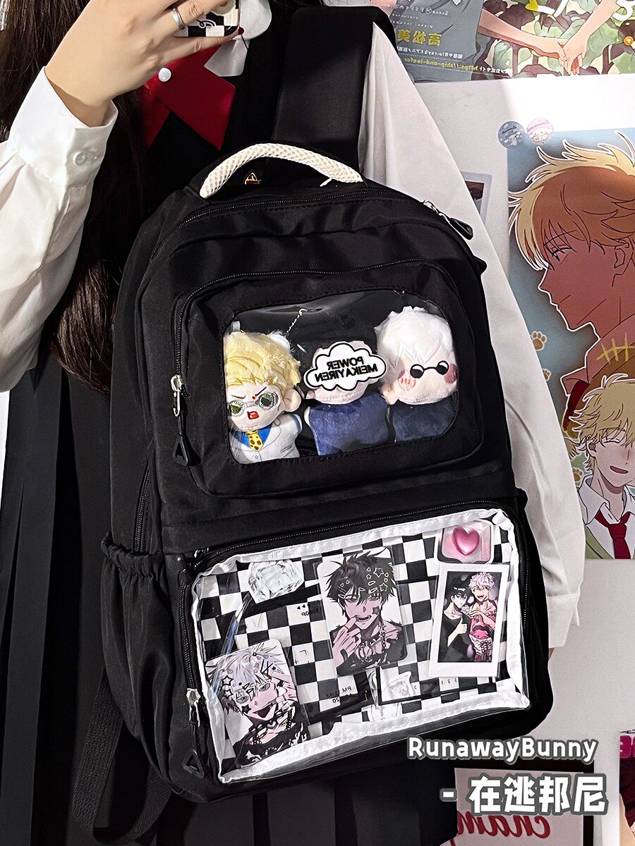 日系ins痛包百搭大容量雙肩包女2024新款透明學院風校園學生書包