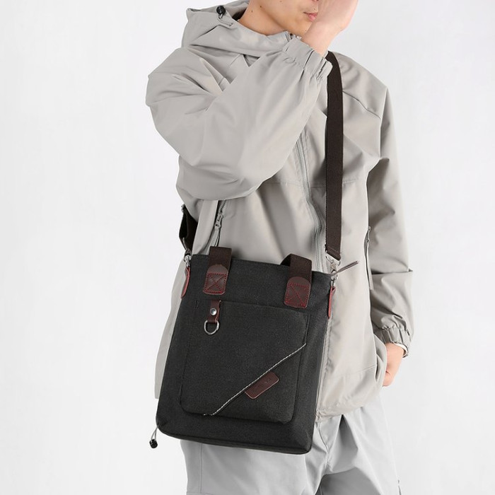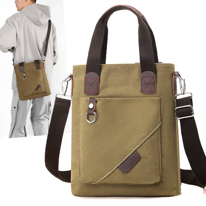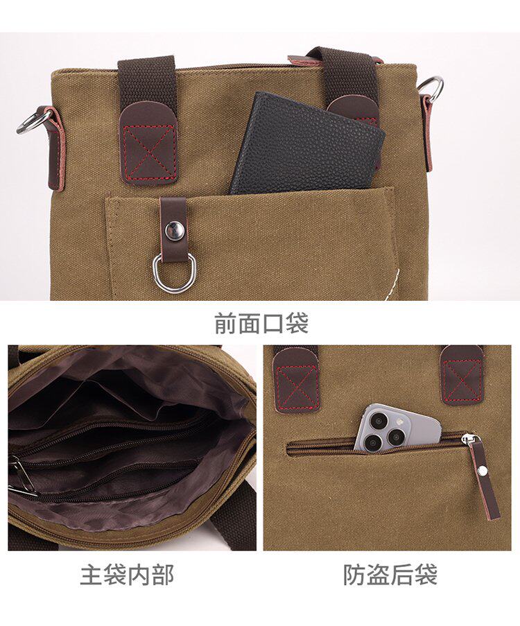 潮流男包手提包簡約商務公文包休閒復古帆布包男款時尚單肩斜後後背包