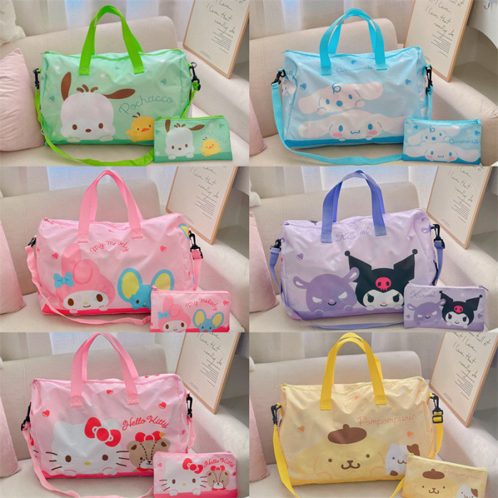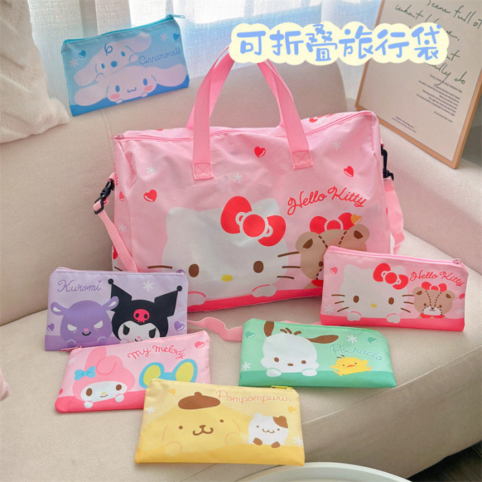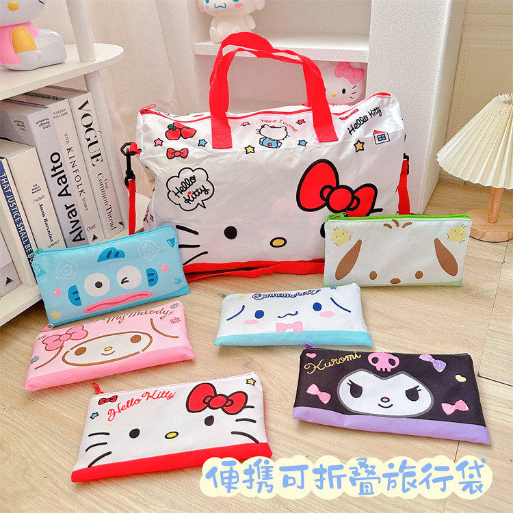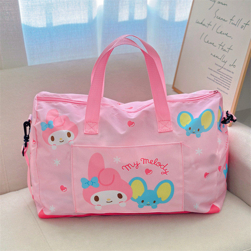 可愛行李袋大容量女生可斜背旅行袋可攜式可折曡待産收納包收納袋
