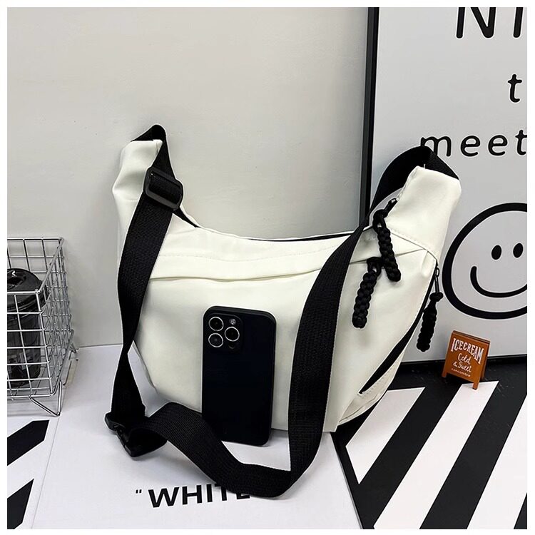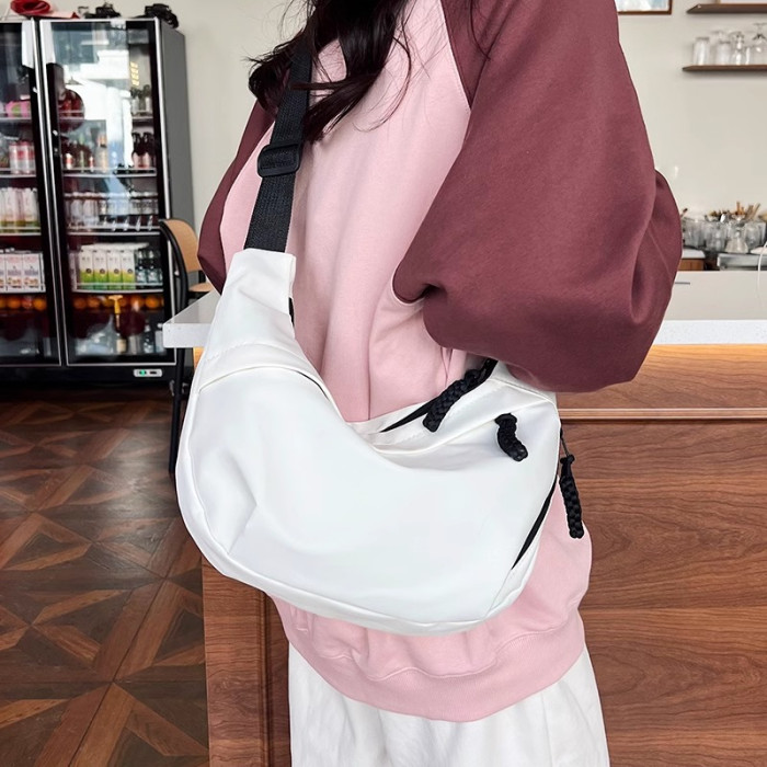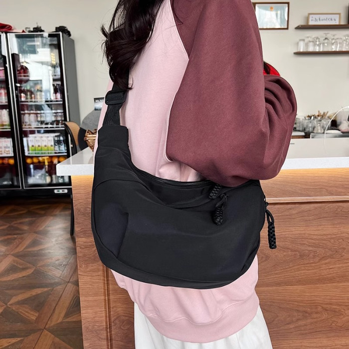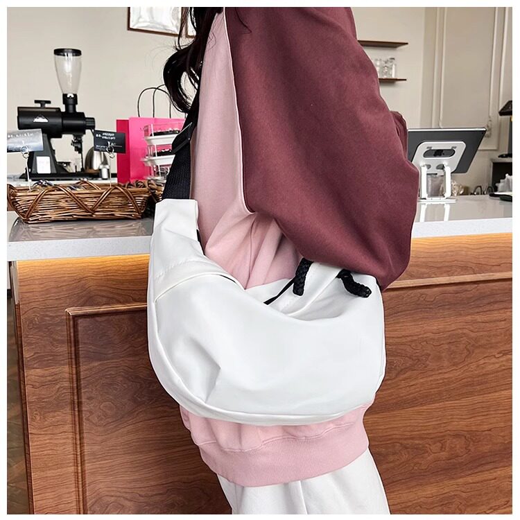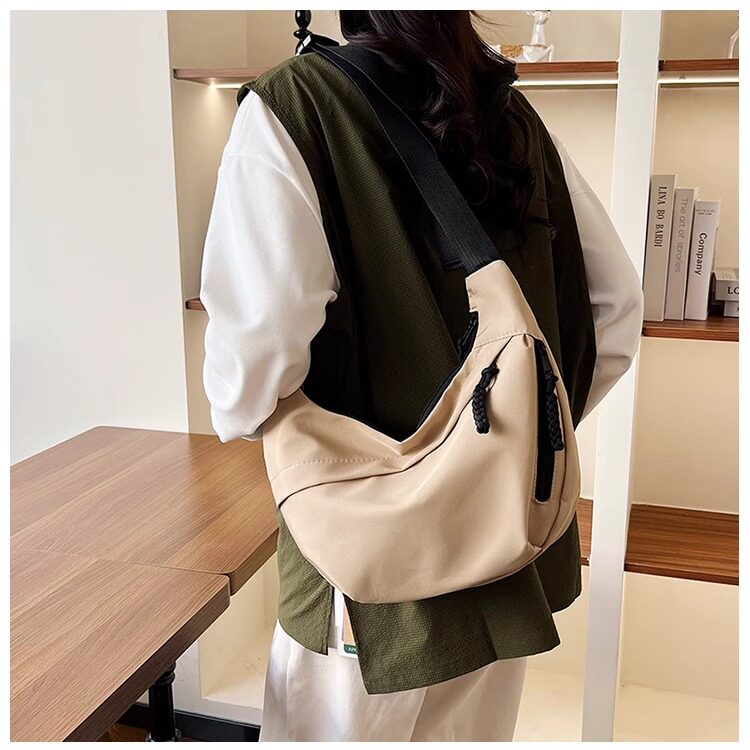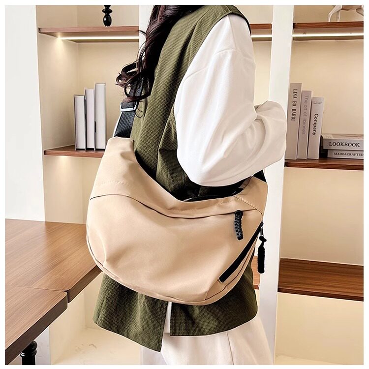 餃子包女斜後後背包2024新款大容量休閒大學生上課裝書運動單肩帆布包