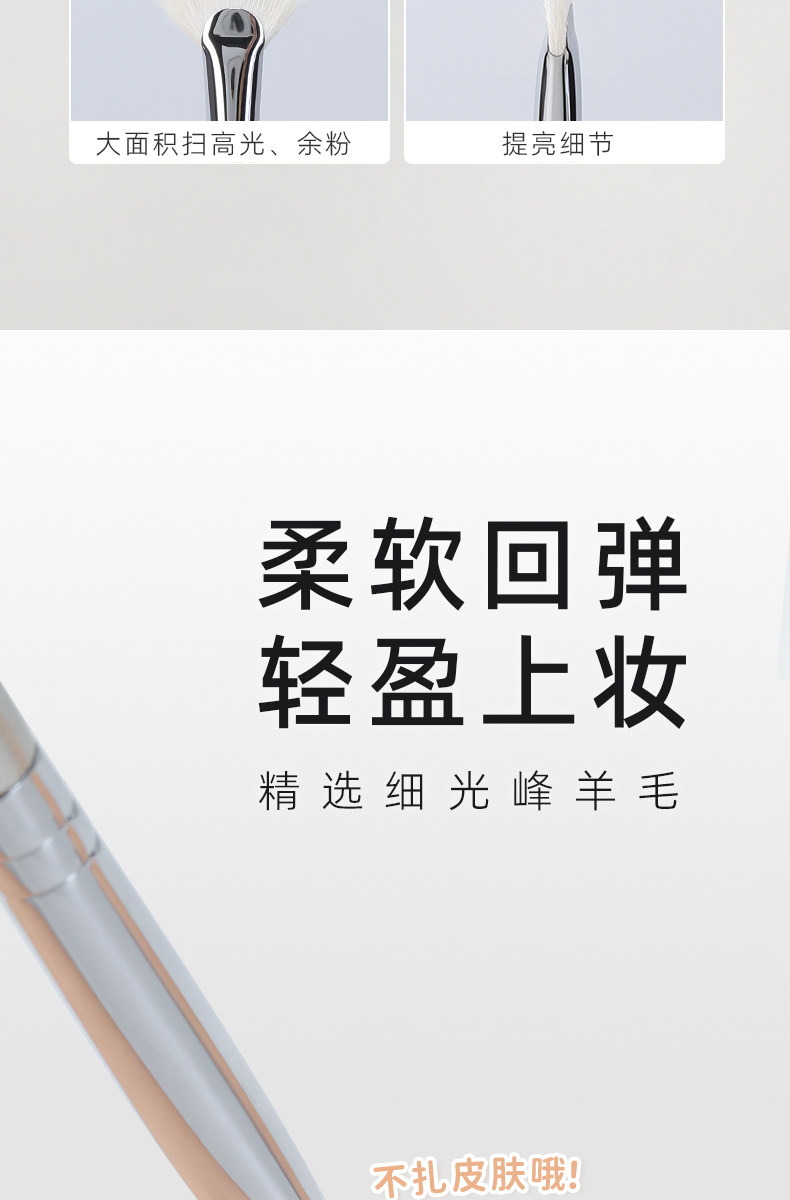郭小妞扇形高光刷一支裝白羊毛動物毛刷子面部細節提亮修容化妝刷