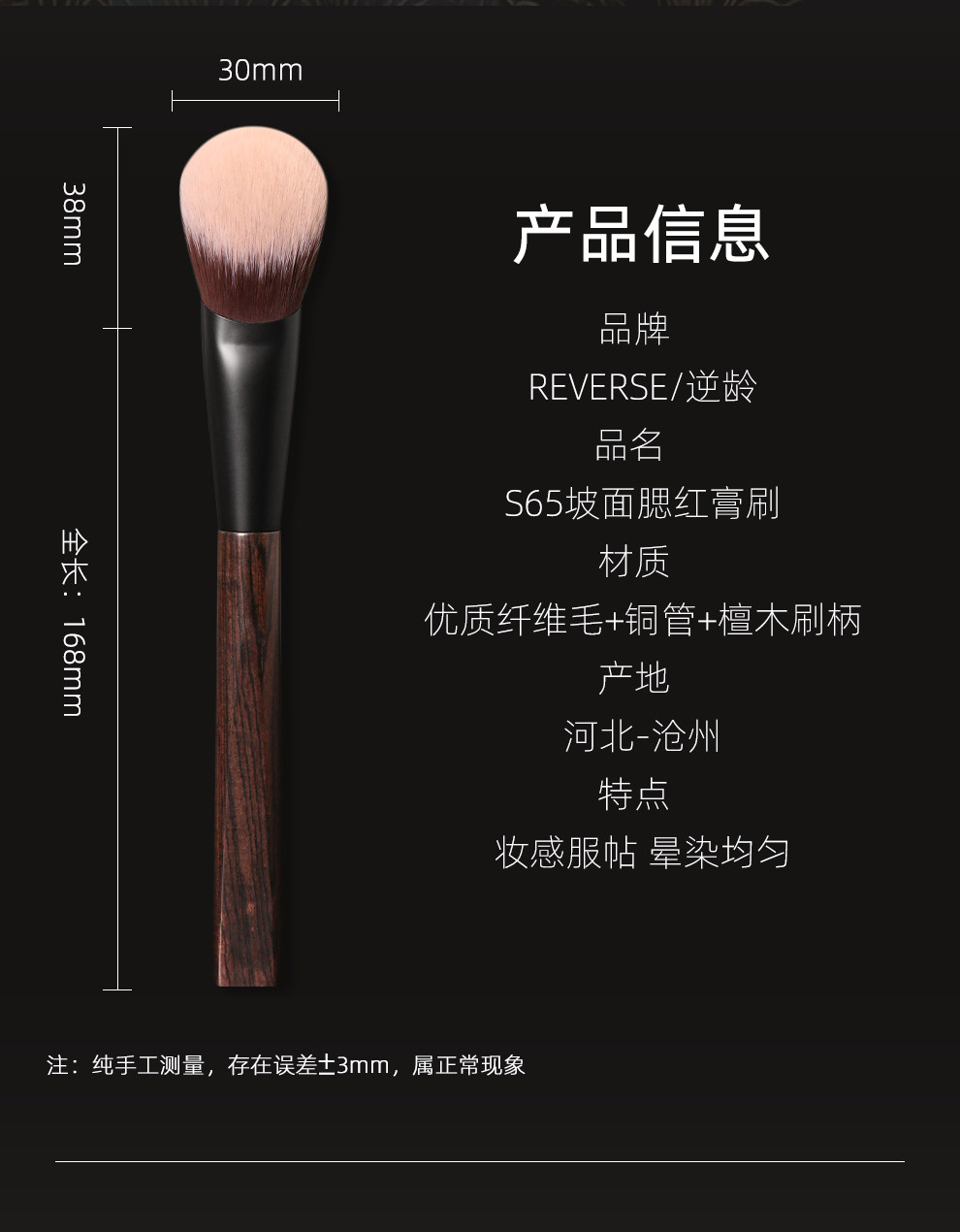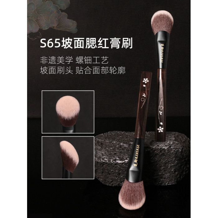 逆齡檀木S65坡形腮紅膏刷優質纖維毛柔軟可攜式腮紅膏刷點彩刷