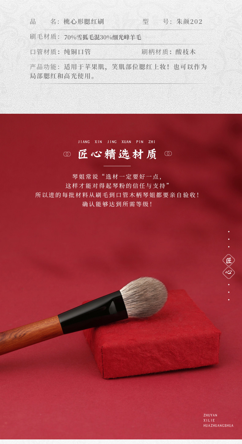 琴製化妝刷硃顔系列202桃心腮紅刷定妝刷侷部提亮刷動物毛一支裝