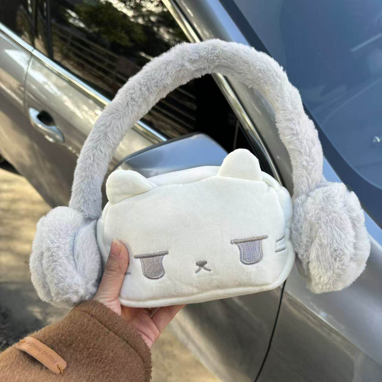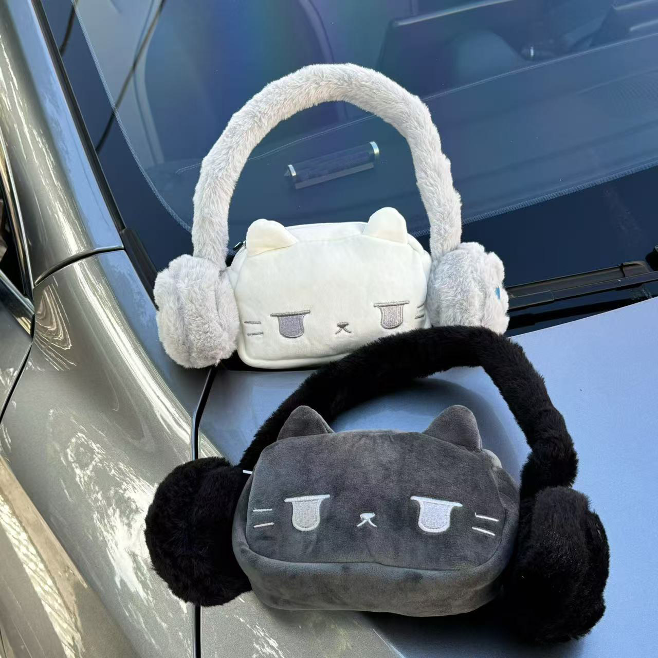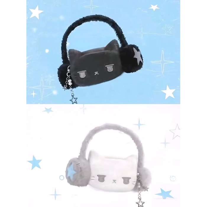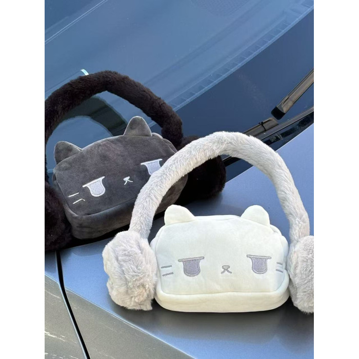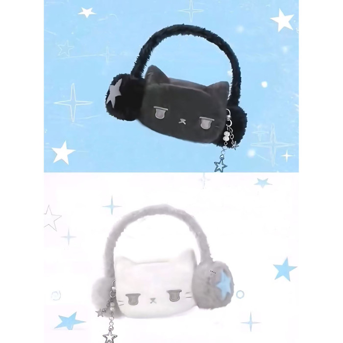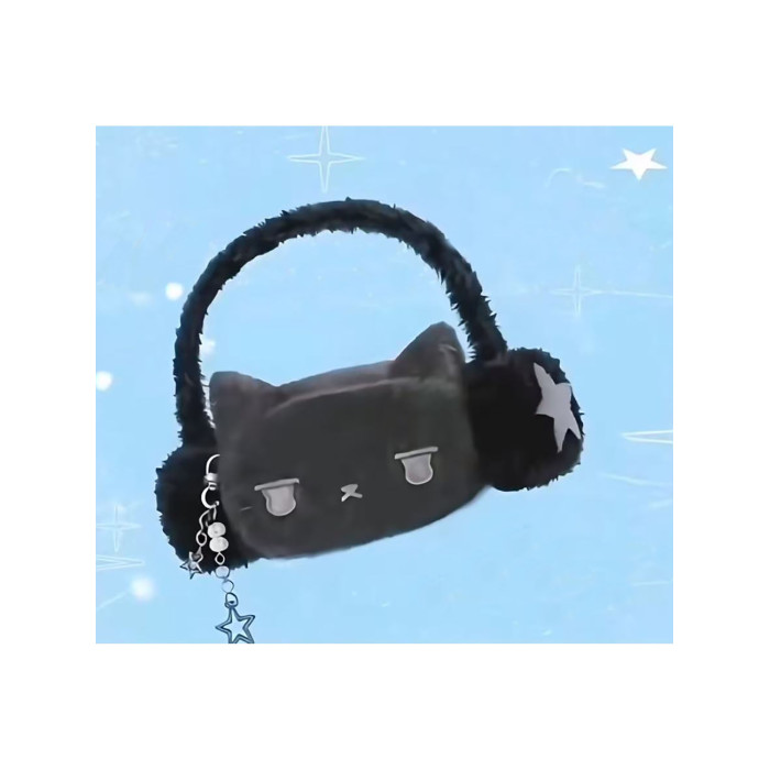 耳機貓貓毛毛包腋下包手提毛絨包可愛卡通手機包星星通勤單肩包女