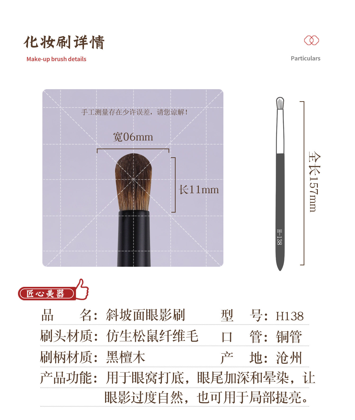 | 品名 | H138斜坡面暈染眼影刷 |