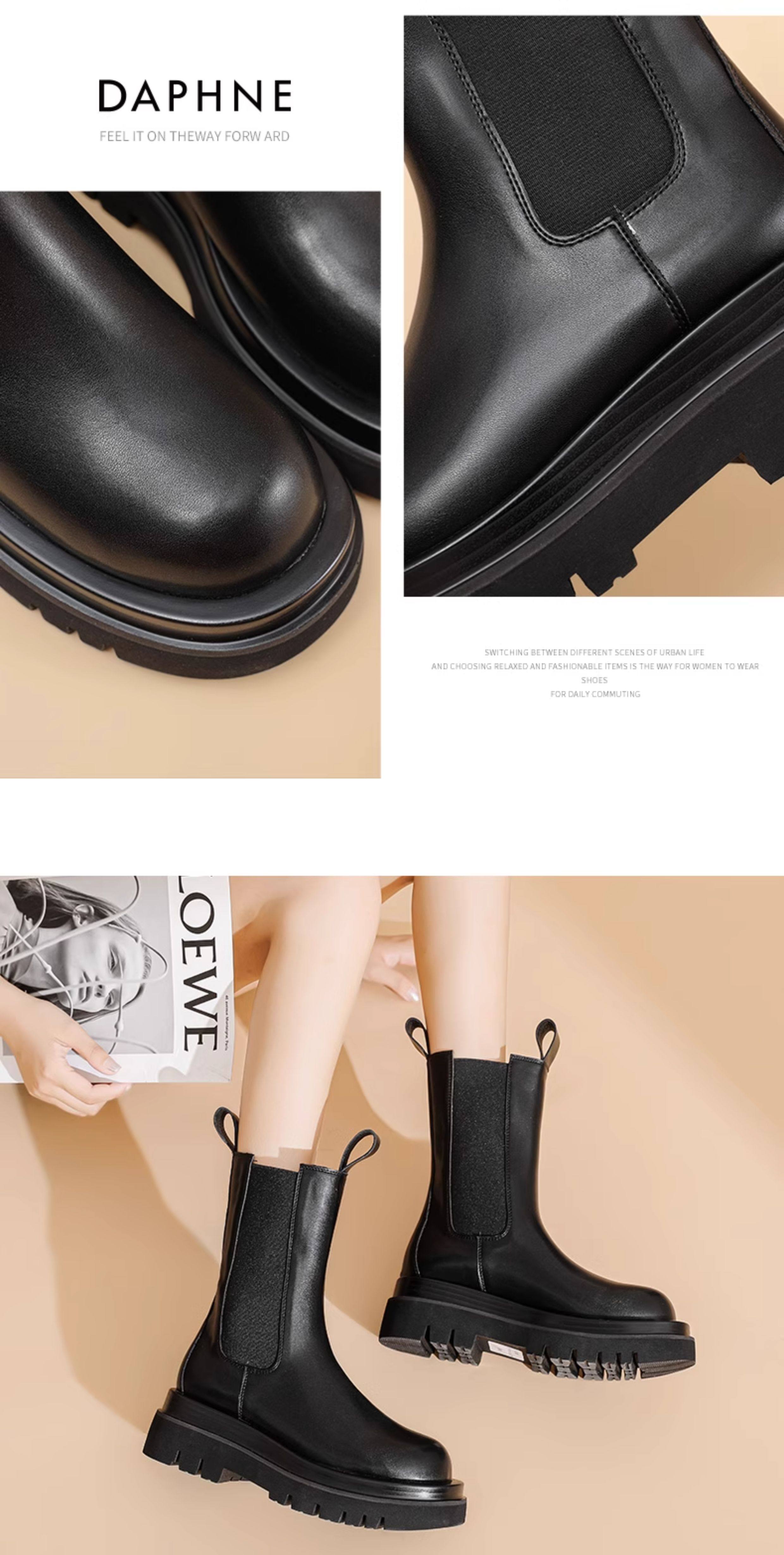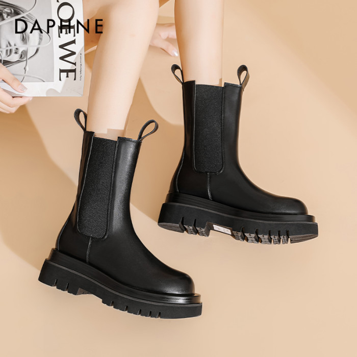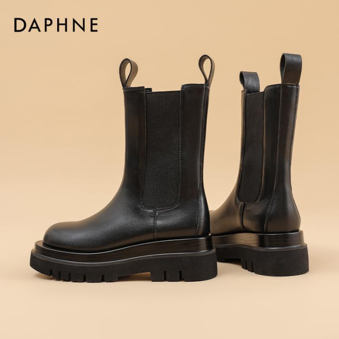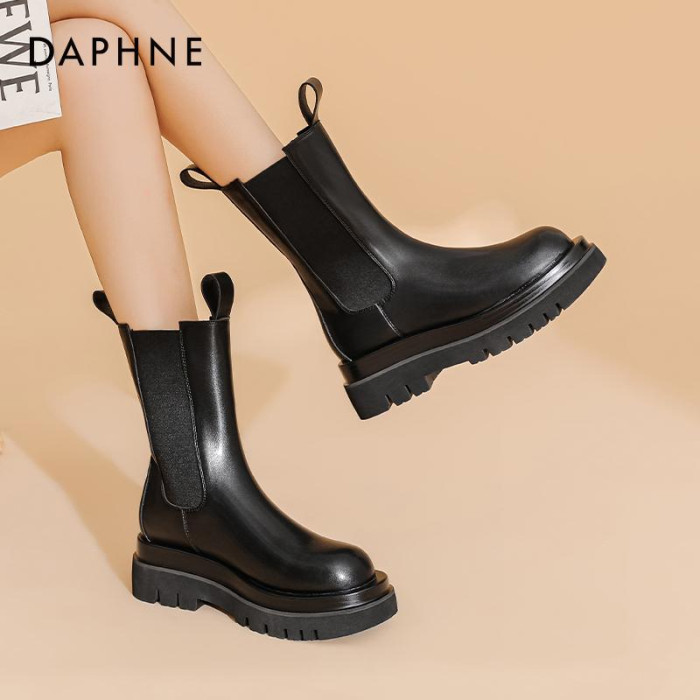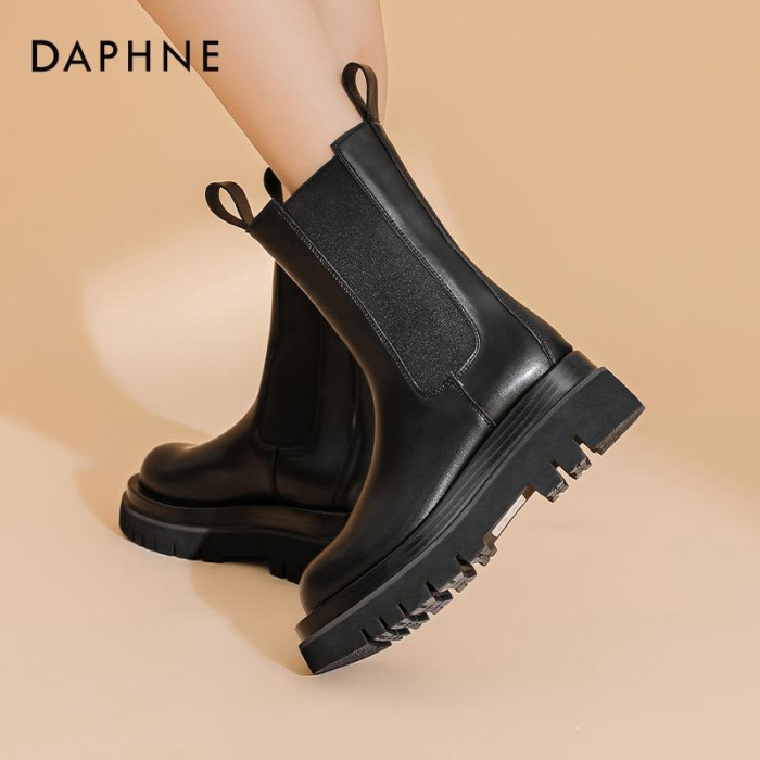 達芙妮菸筒靴女2025新款厚底增高時尚瘦瘦靴英倫風馬丁靴短靴女靴