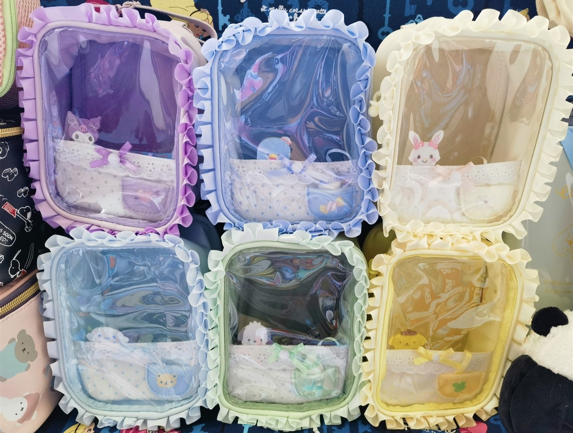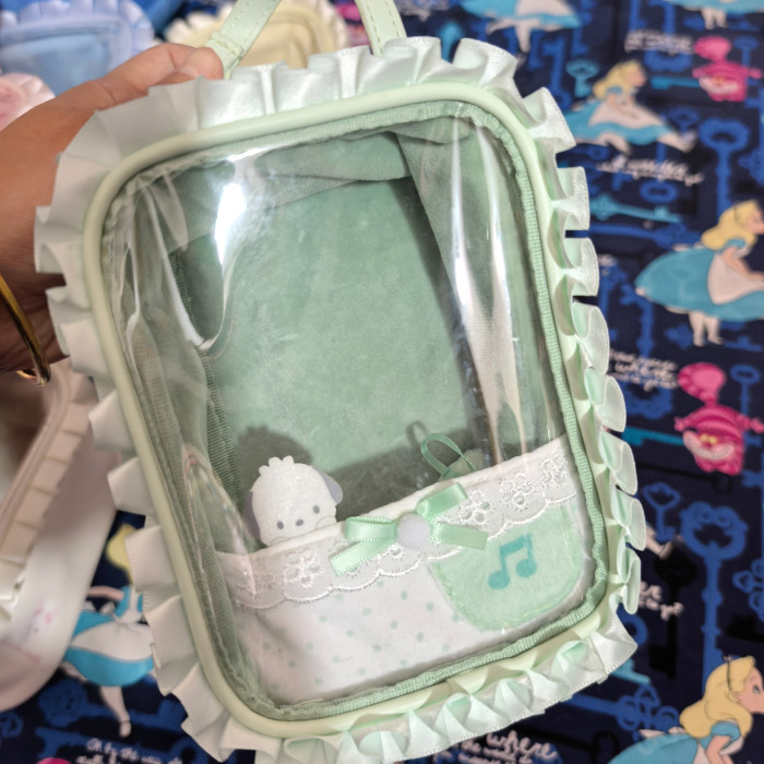 日單新款蕾絲透明娃娃痛包收納包可愛通勤玩偶包女孩收納包彩妝包
