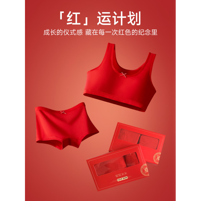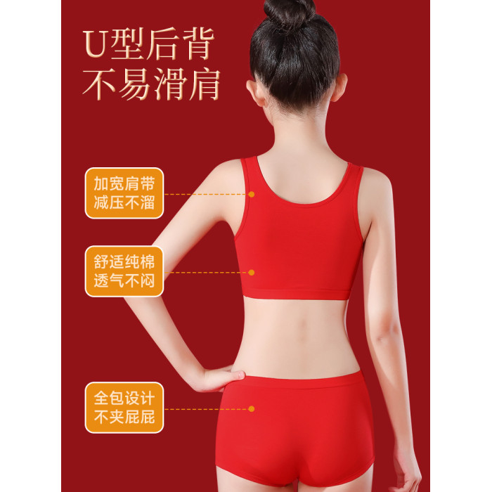 女童本命年套裝12嵗發育期背心2026馬年紅色內衣內褲兒童少女文胸