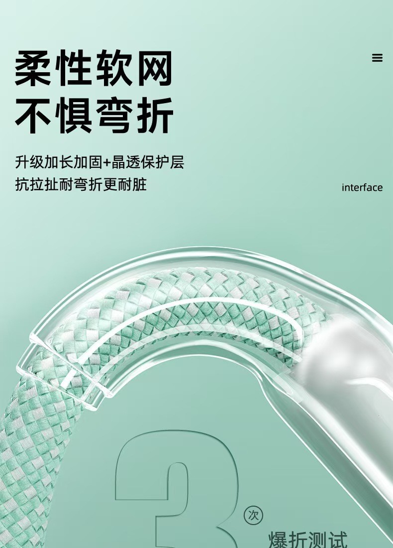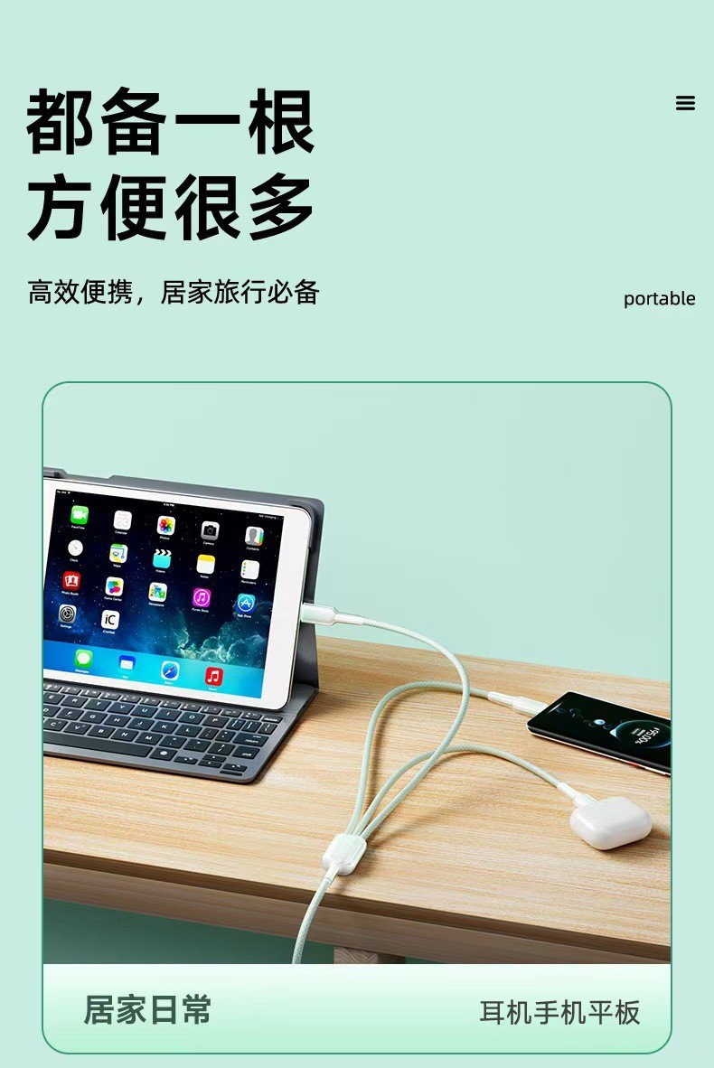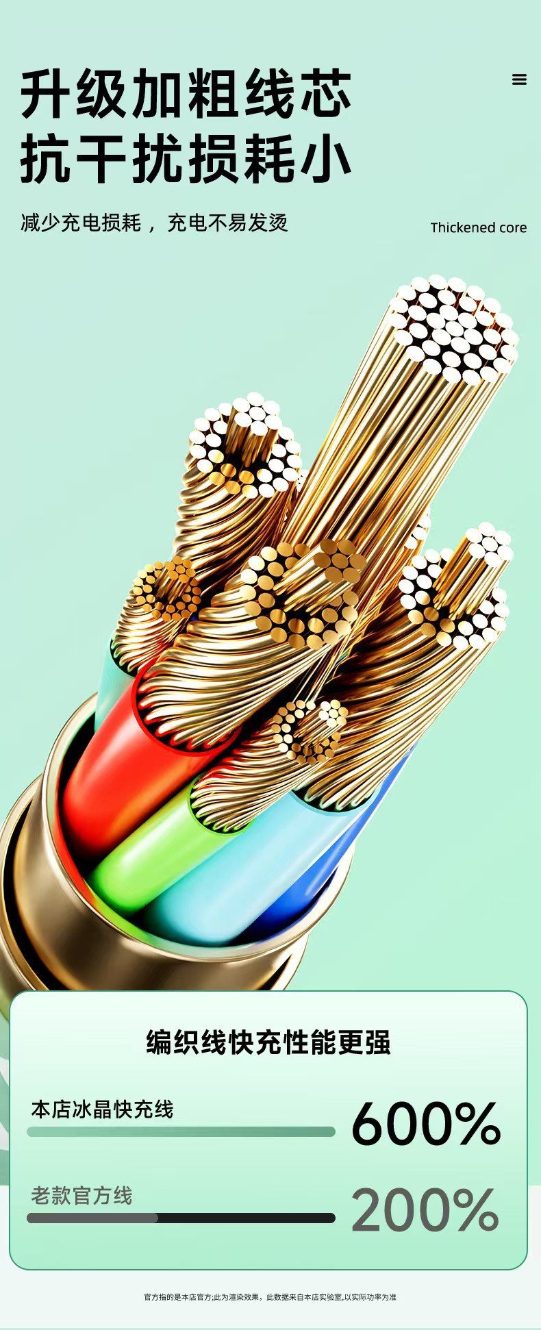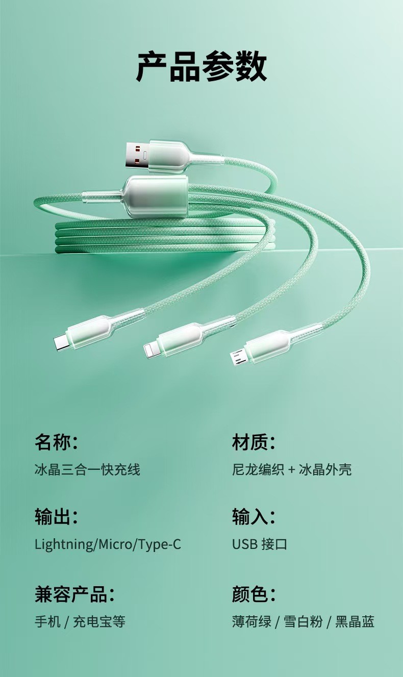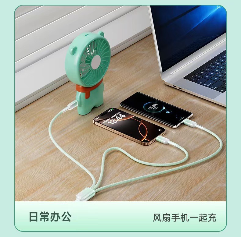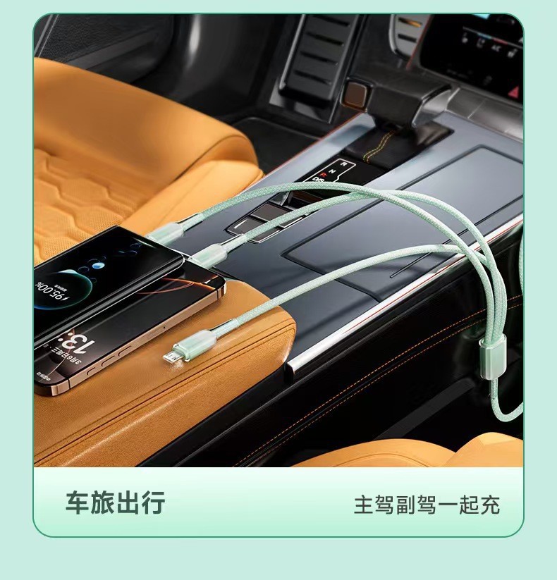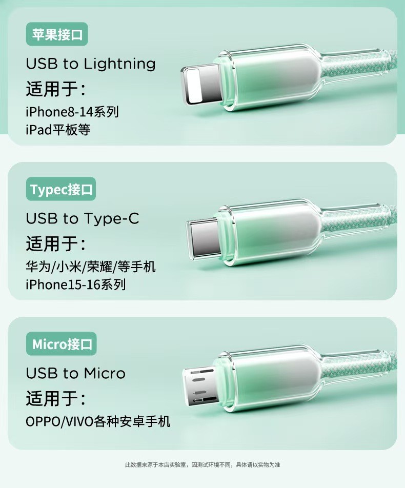 120W透明冰晶一拖三快充usb數據線 適用蘋果16華爲手機充電線