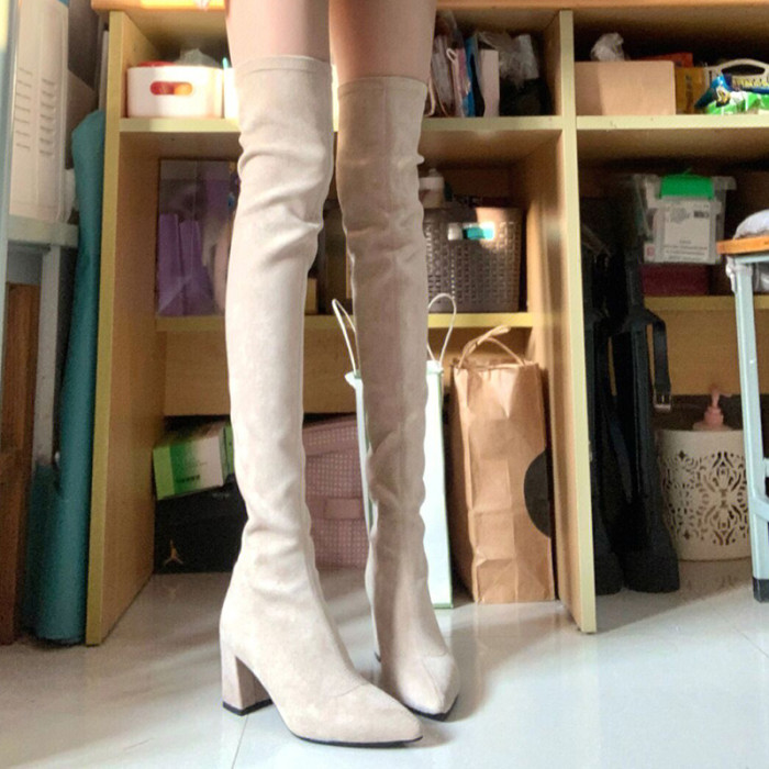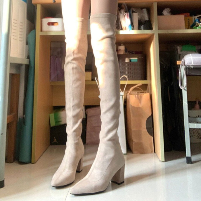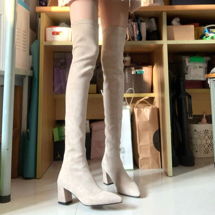 過膝靴2025秋冬新款時尚百搭尖頭粗跟高筒彈力瘦瘦靴小個子長筒靴