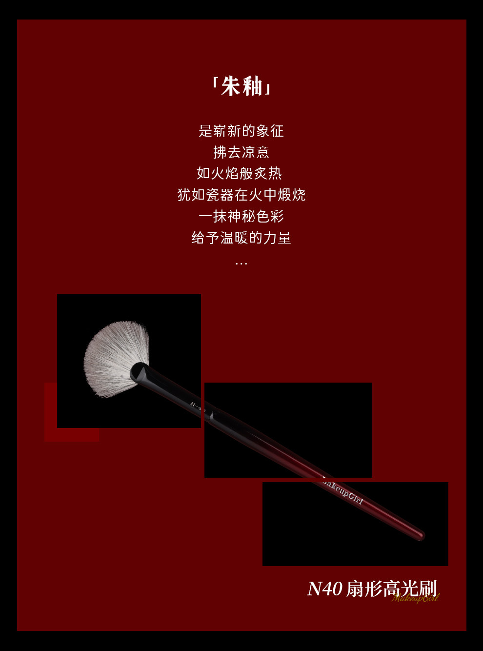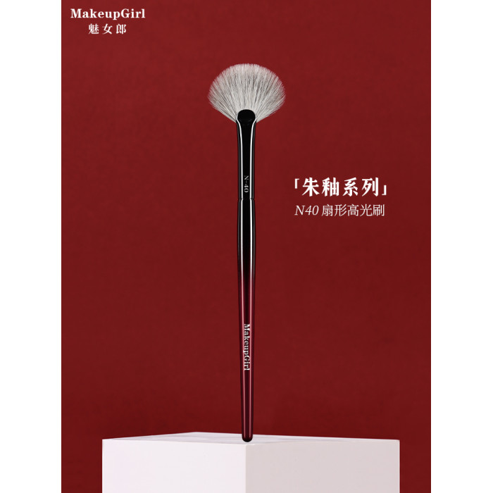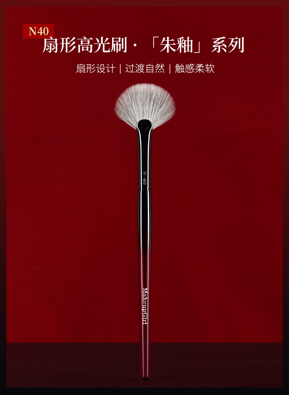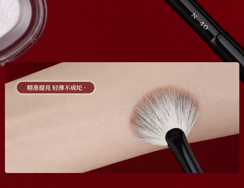 魅女郎硃釉N40扇形高光刷動物毛顴骨提亮面部餘粉刷超柔軟化妝刷