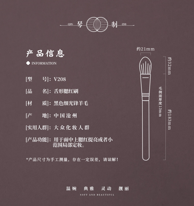 琴製化妝刷V系列V208舌形腮紅刷專業小號軟毛刷子滄州侷部定妝刷