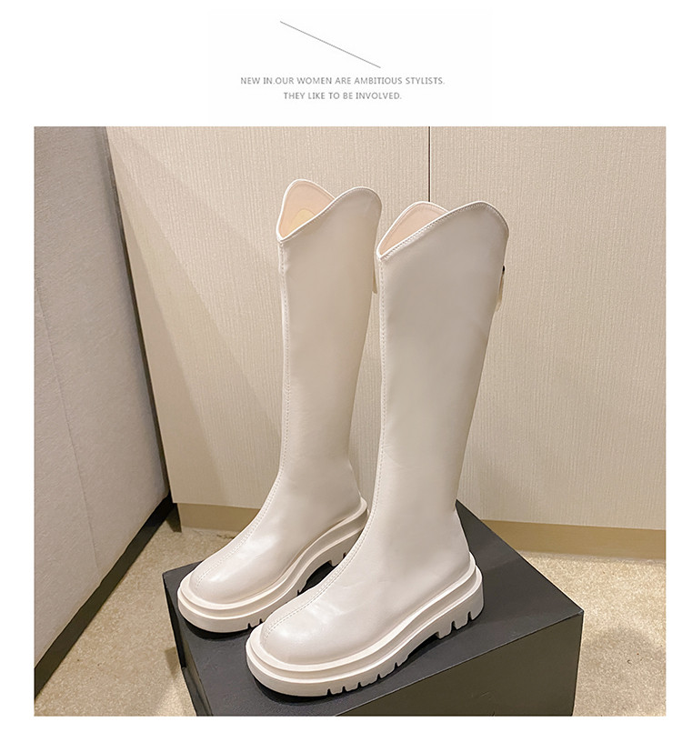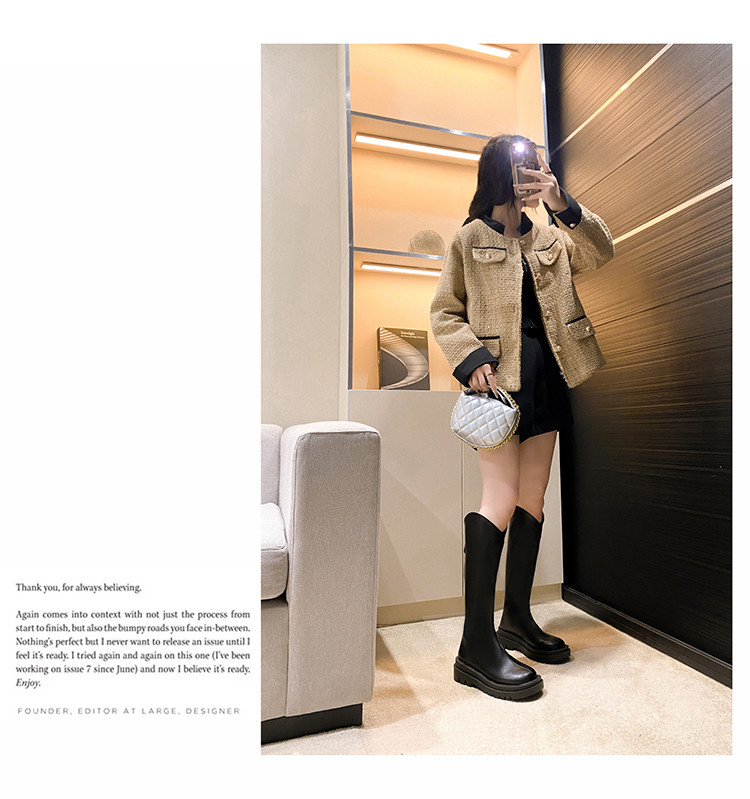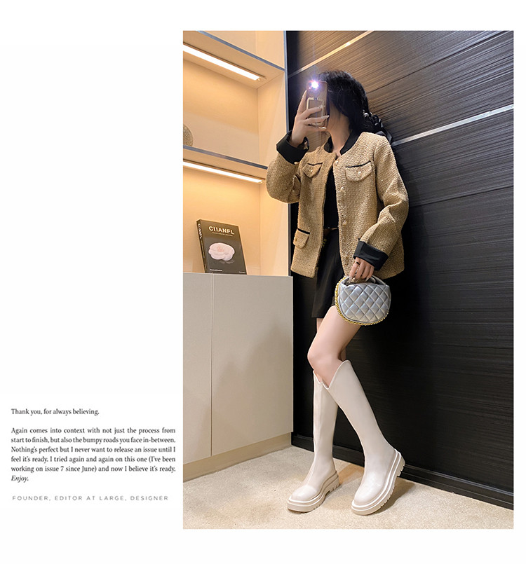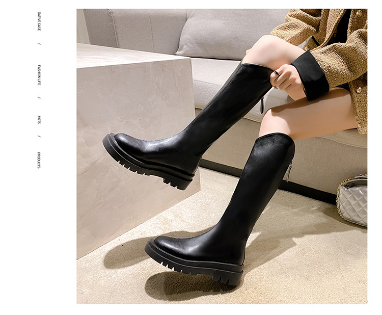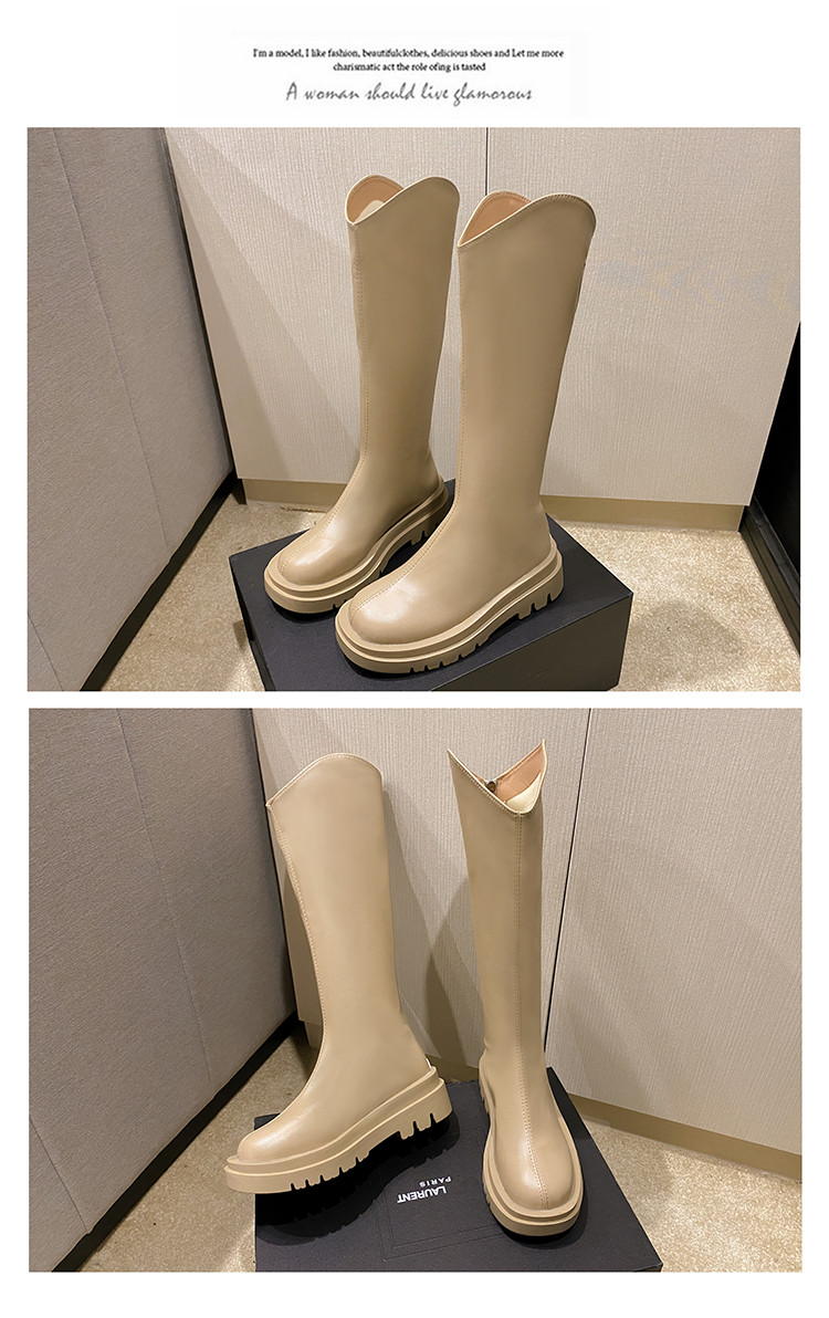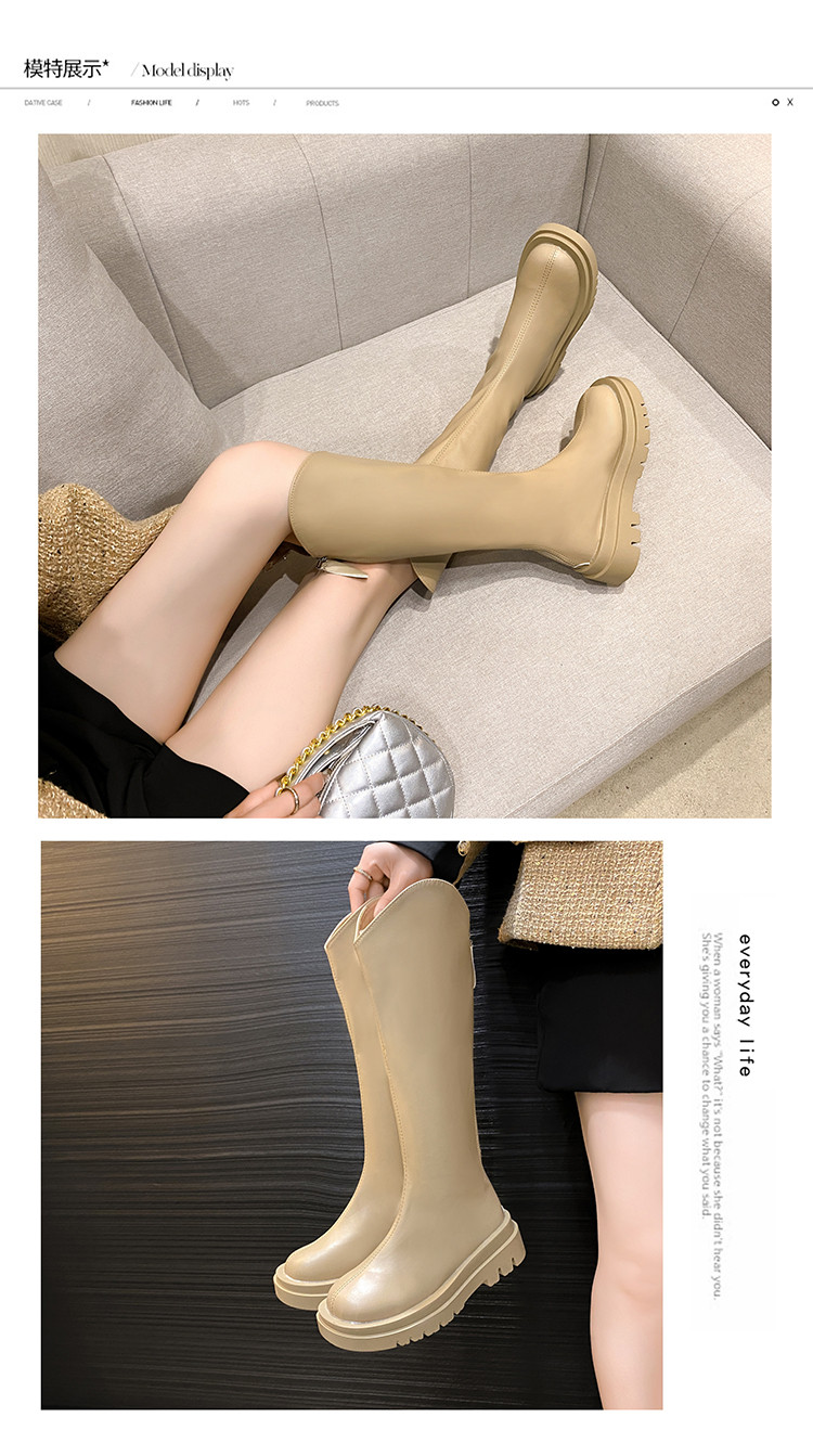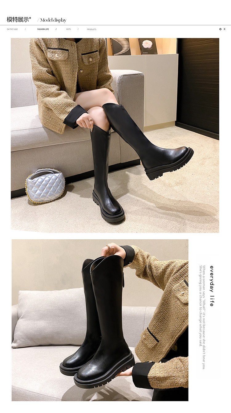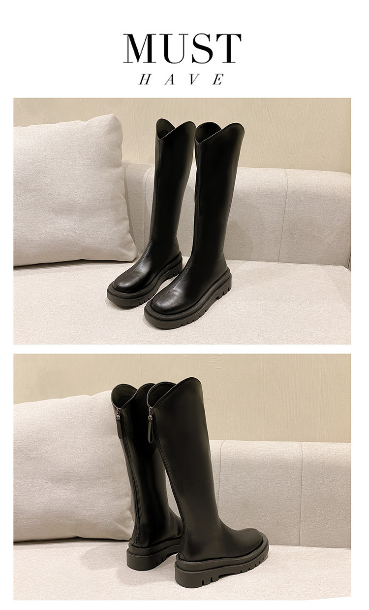 顯腳小馬丁靴女英倫風高筒騎士靴秋冬厚底增高小個子不過膝長筒靴