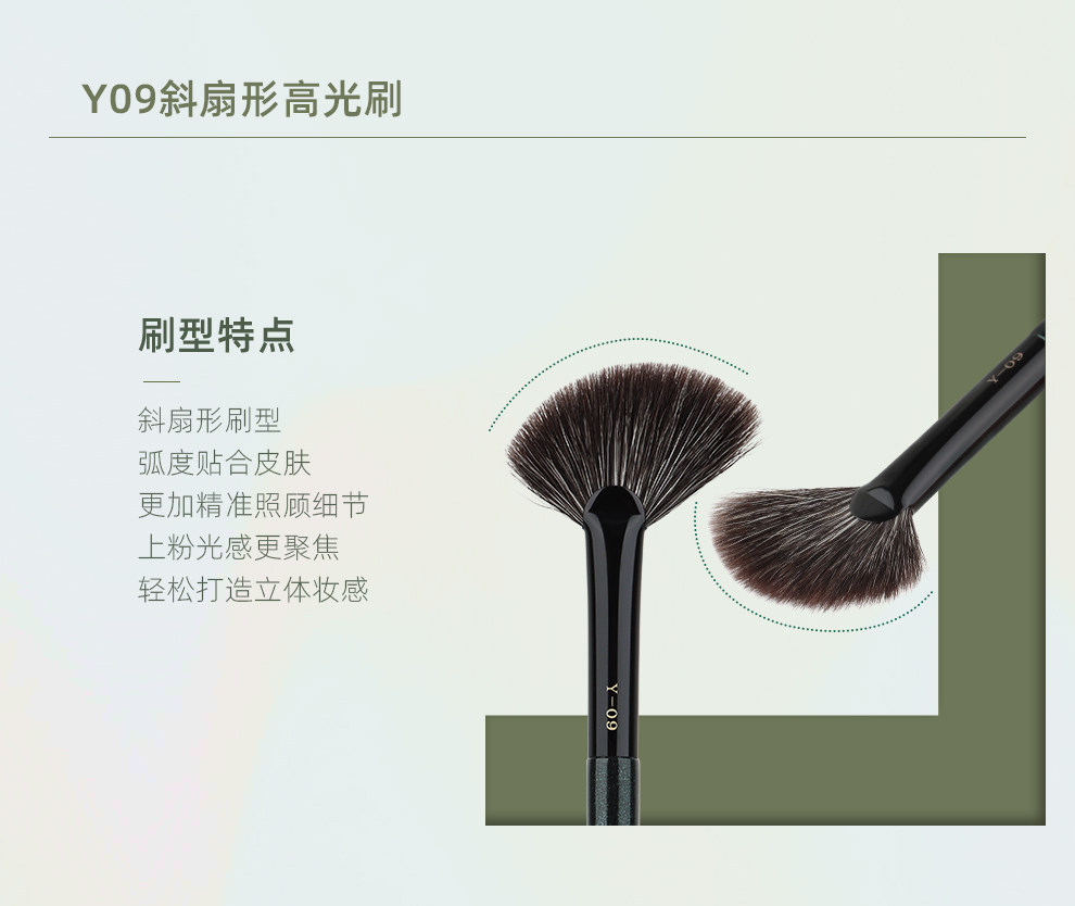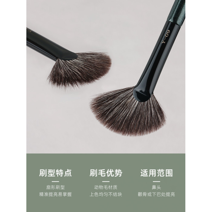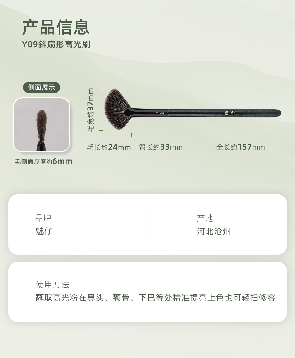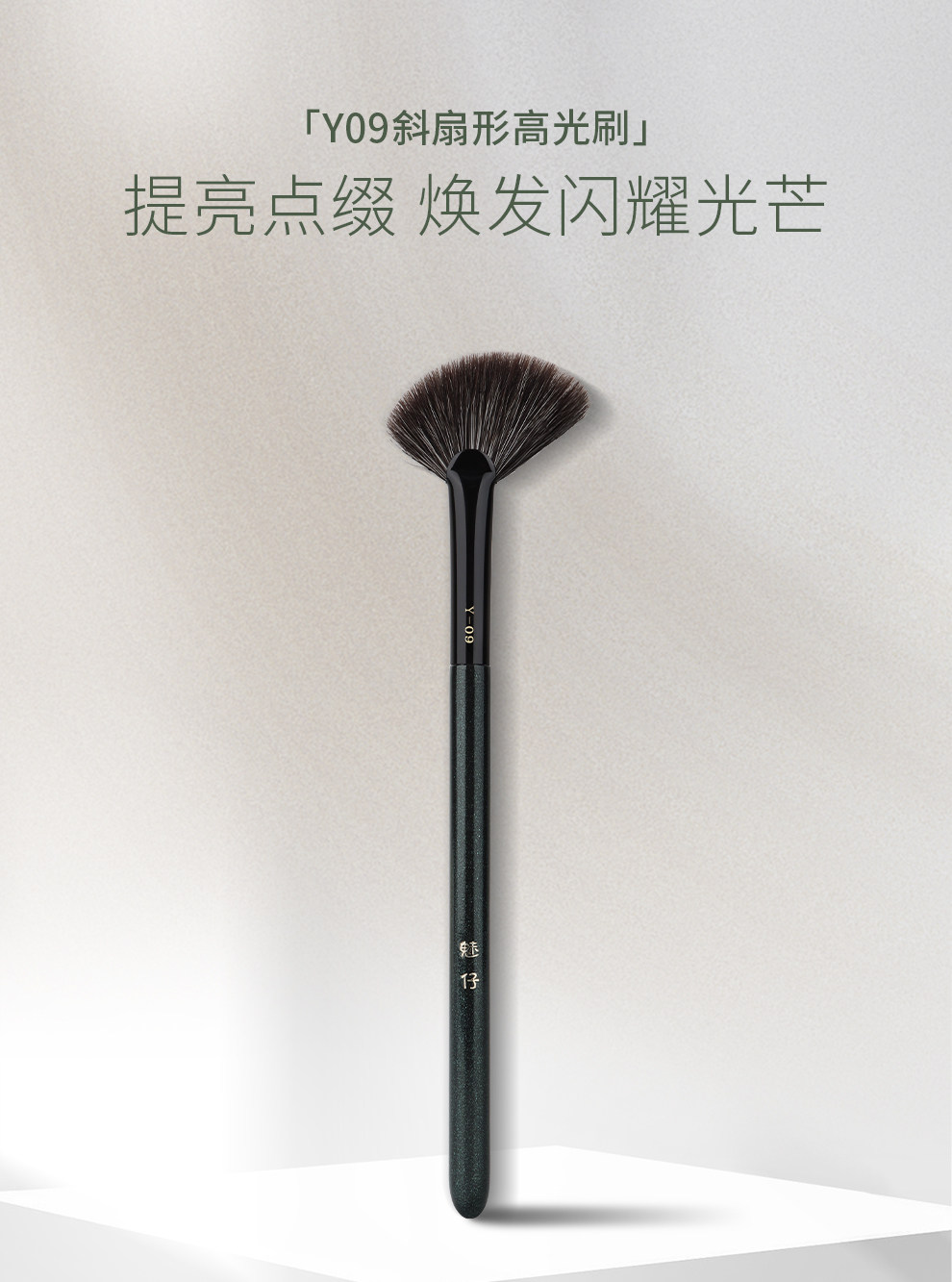 魅仔Y09斜角扇形高光刷提亮臉部清透超柔軟動物毛餘粉啞光化妝刷