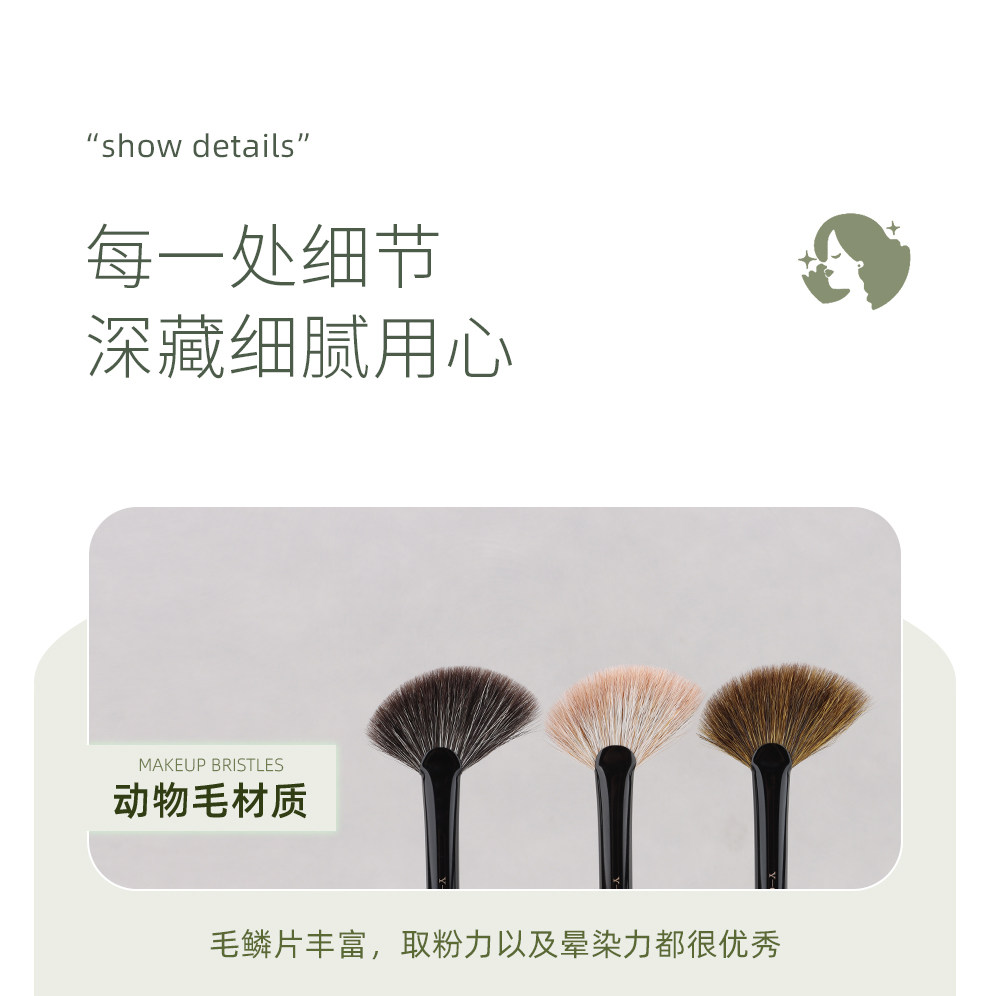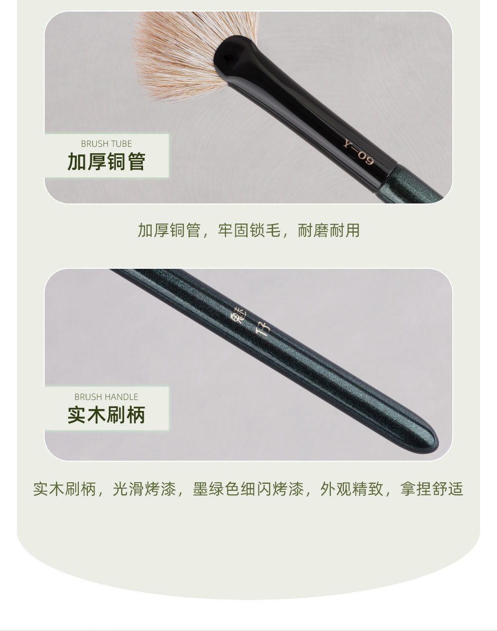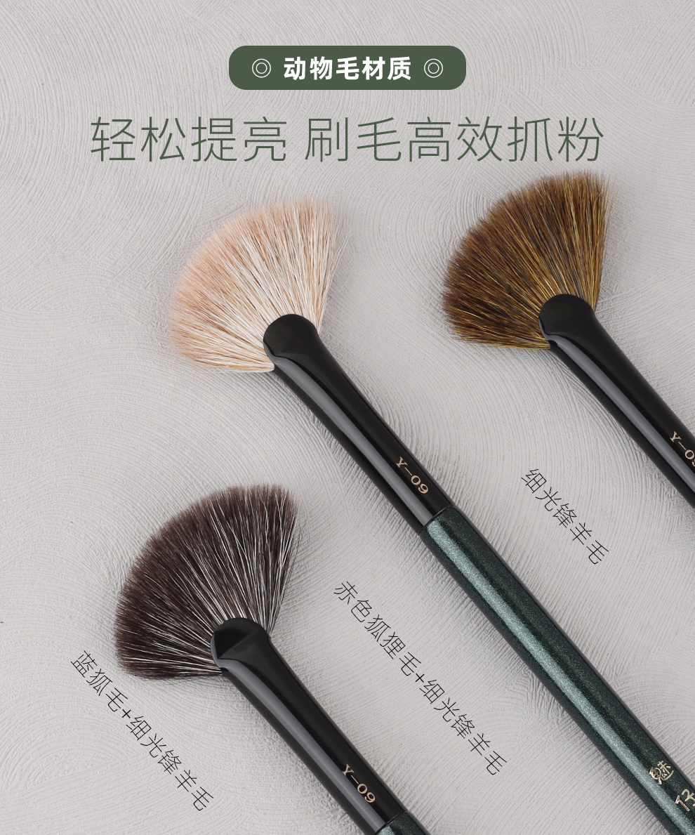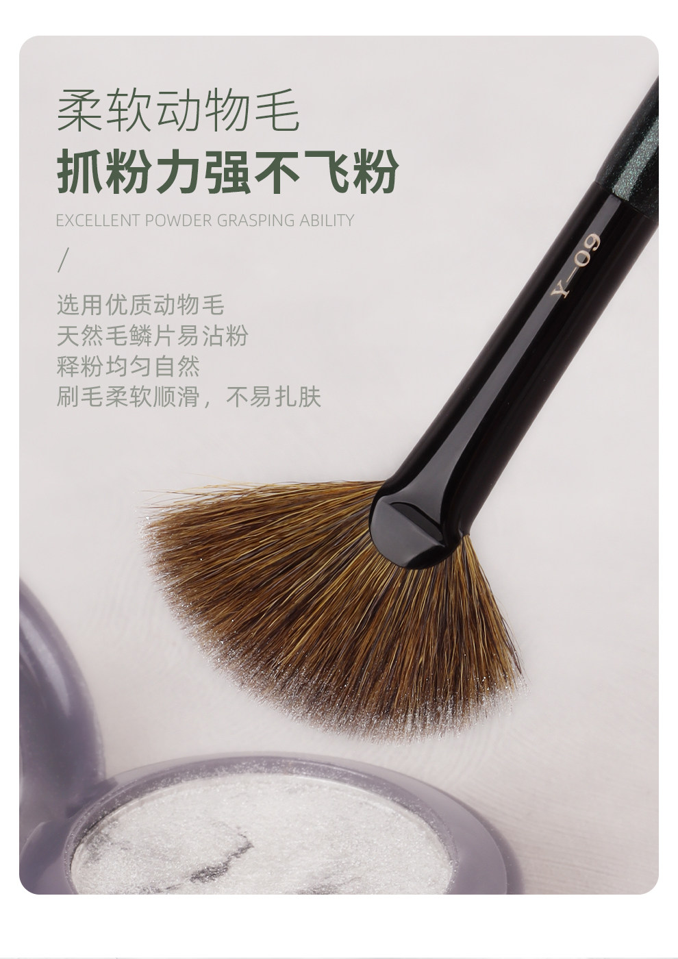 魅仔Y09斜角扇形高光刷提亮臉部清透超柔軟動物毛餘粉啞光化妝刷