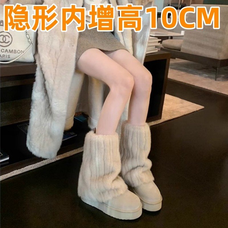 內增高10CM長筒靴雪地靴女款厚底2026年新款中筒冬季保暖加絨加厚