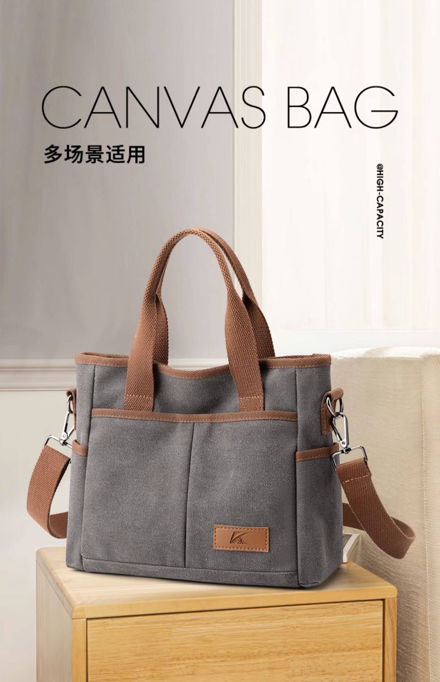 2025新款百搭上班通勤大容量帆布包女包手提斜後後背包中老年媽媽包潮