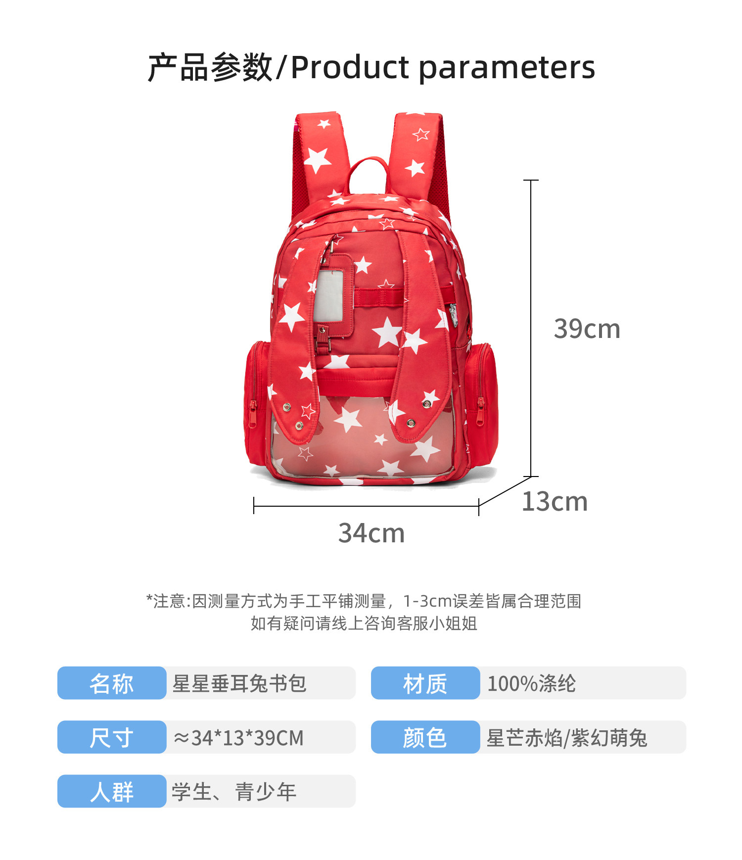 梁拌泡菜LBPC星星垂耳兔痛包學生雙肩包原創設計可愛二次元書包