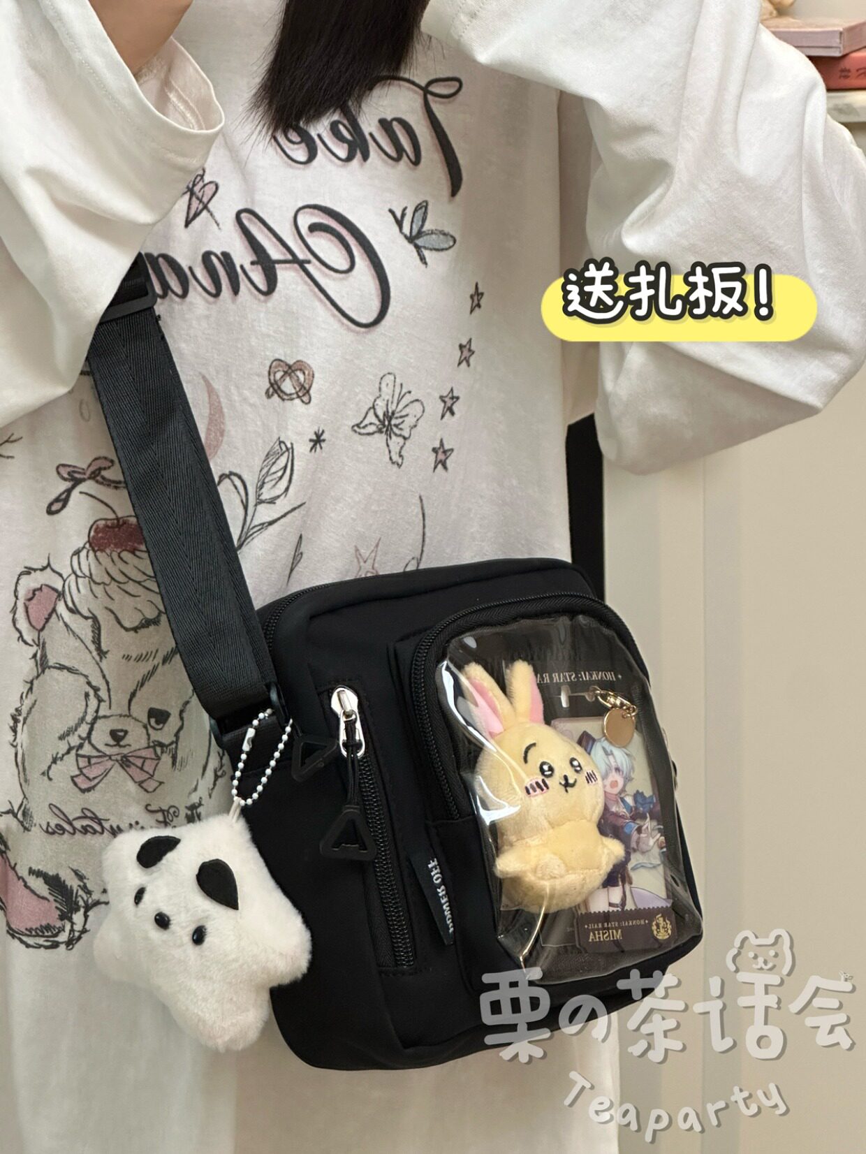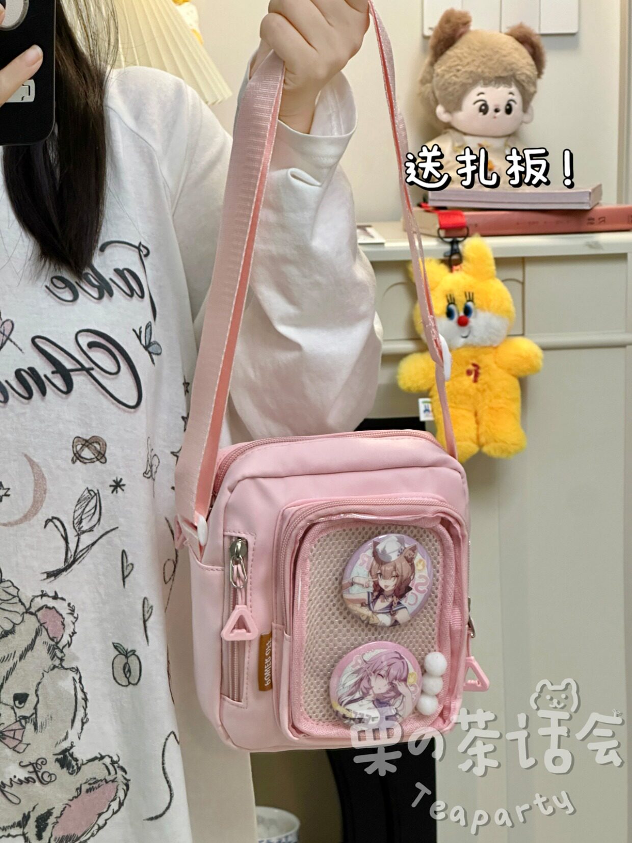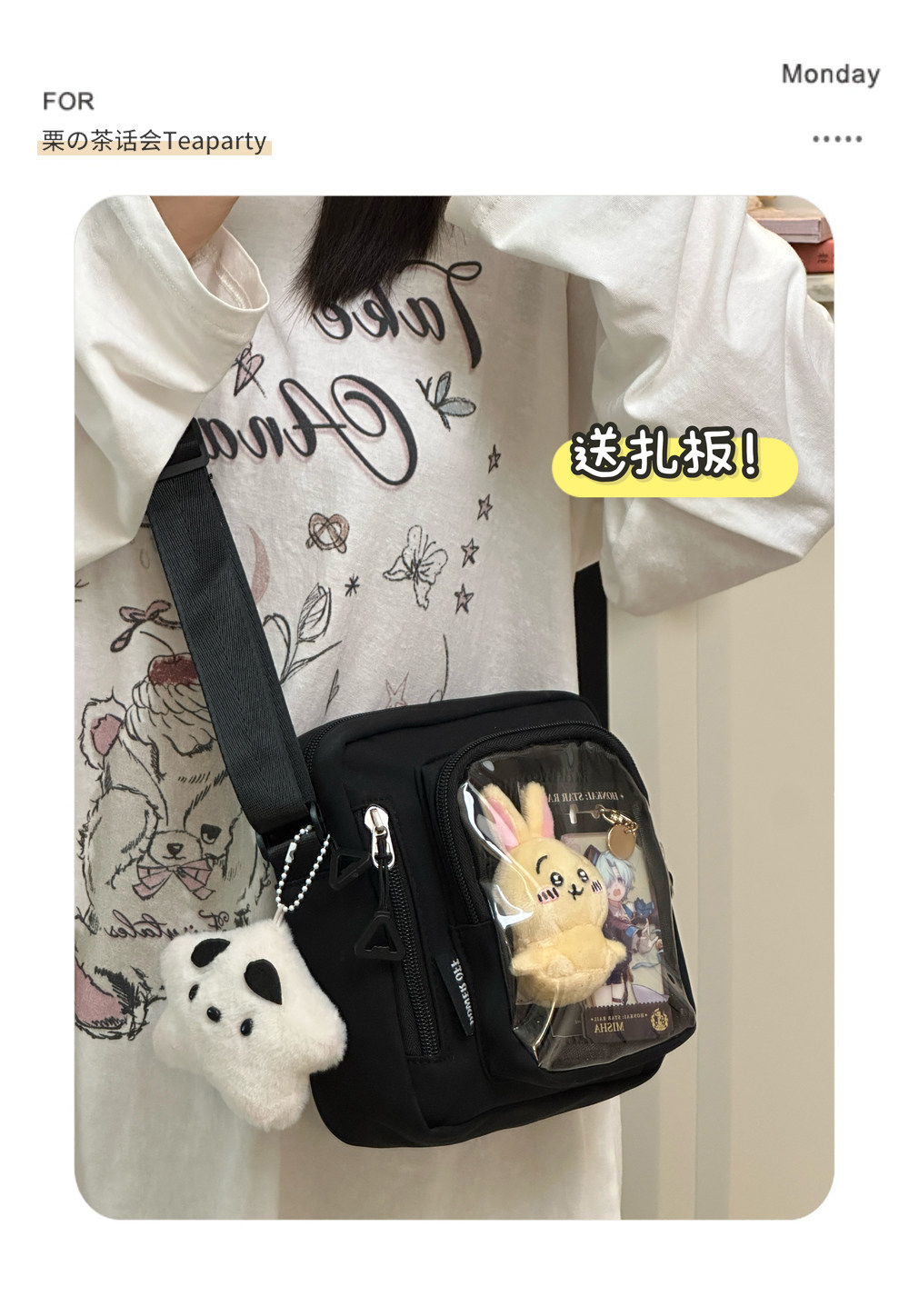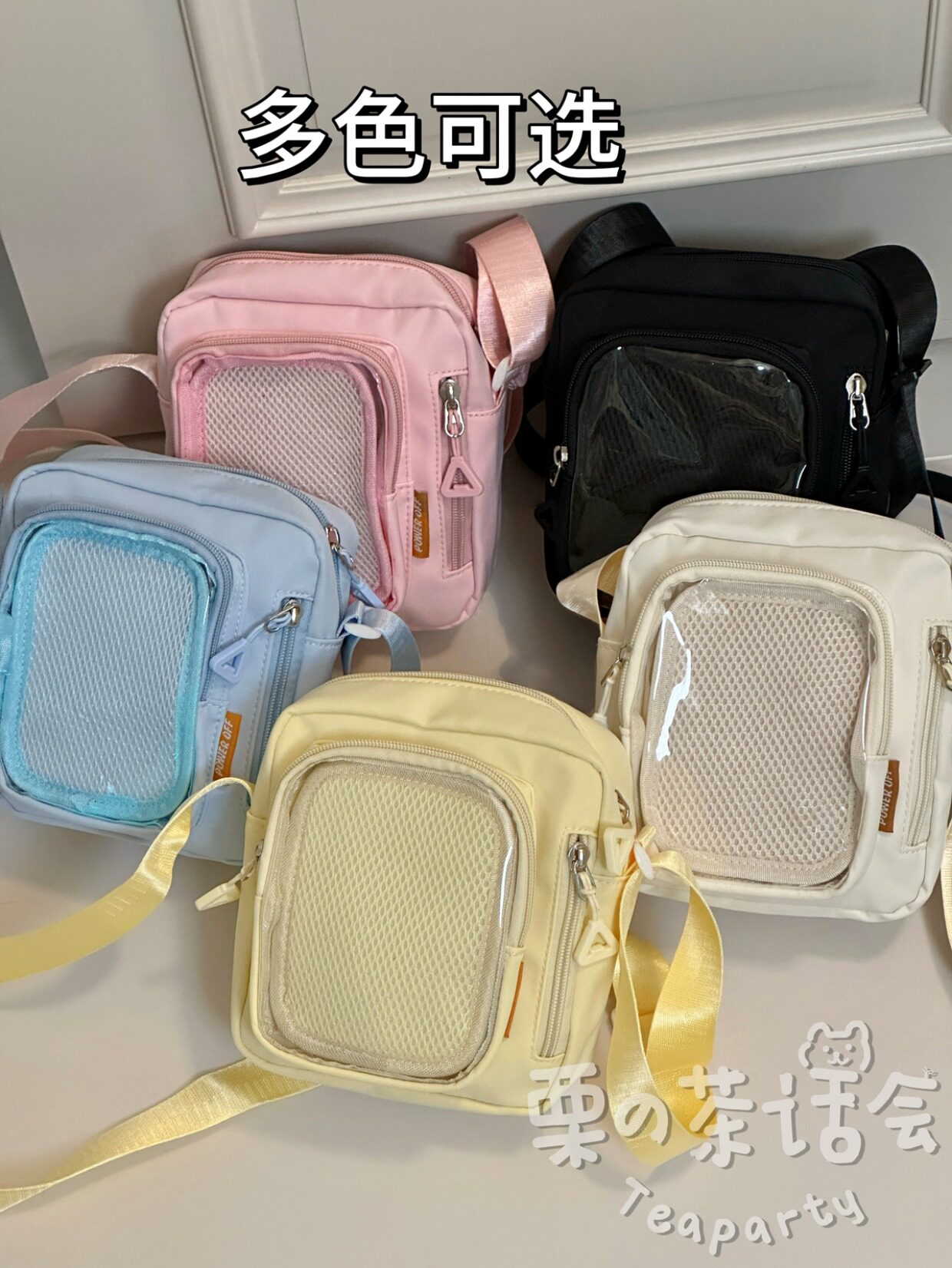 日系ins可愛透明吧唧痛包休閒小包包女 百搭斜後後背包學生簡約手機包