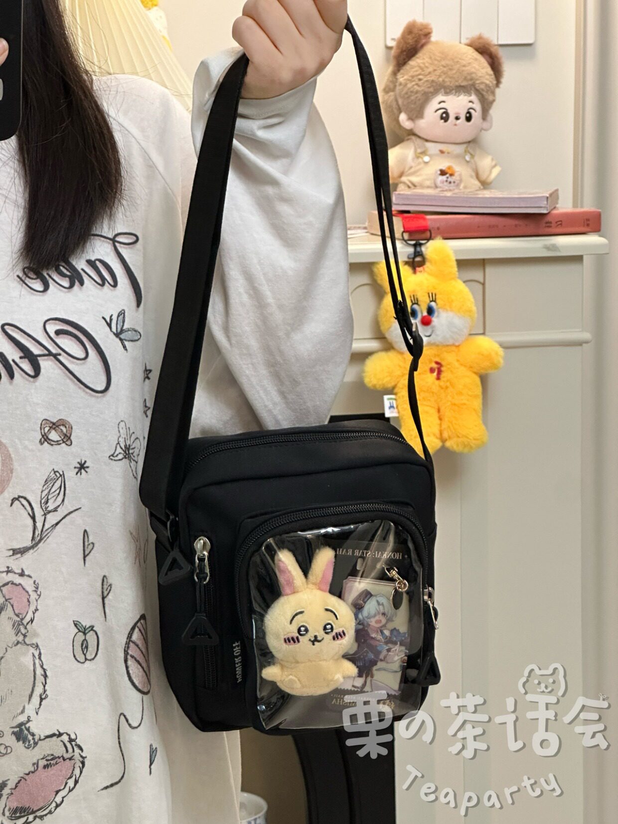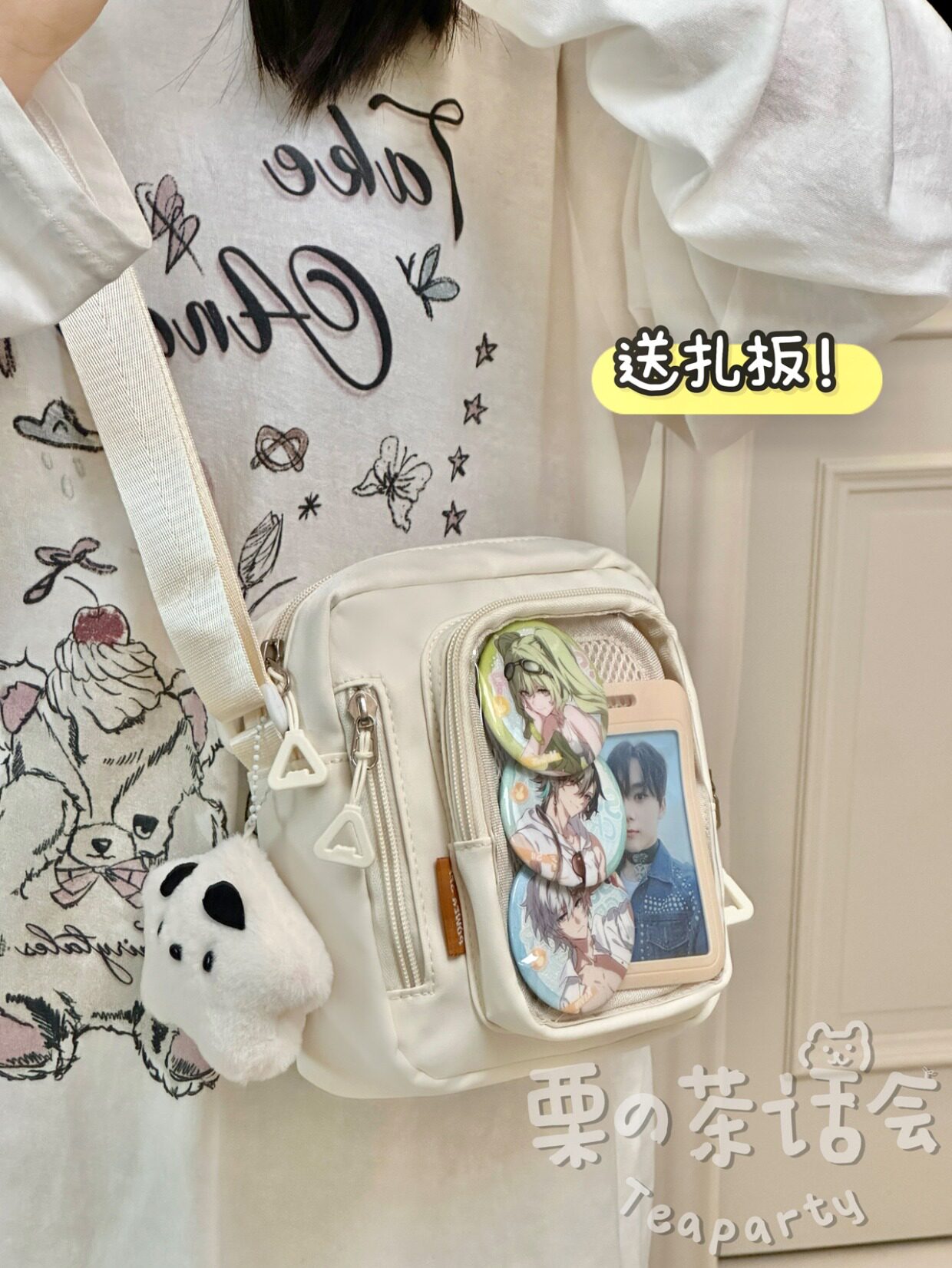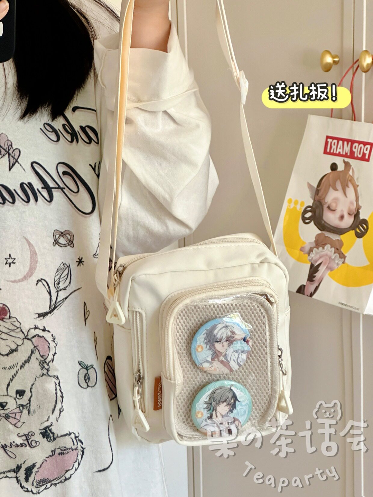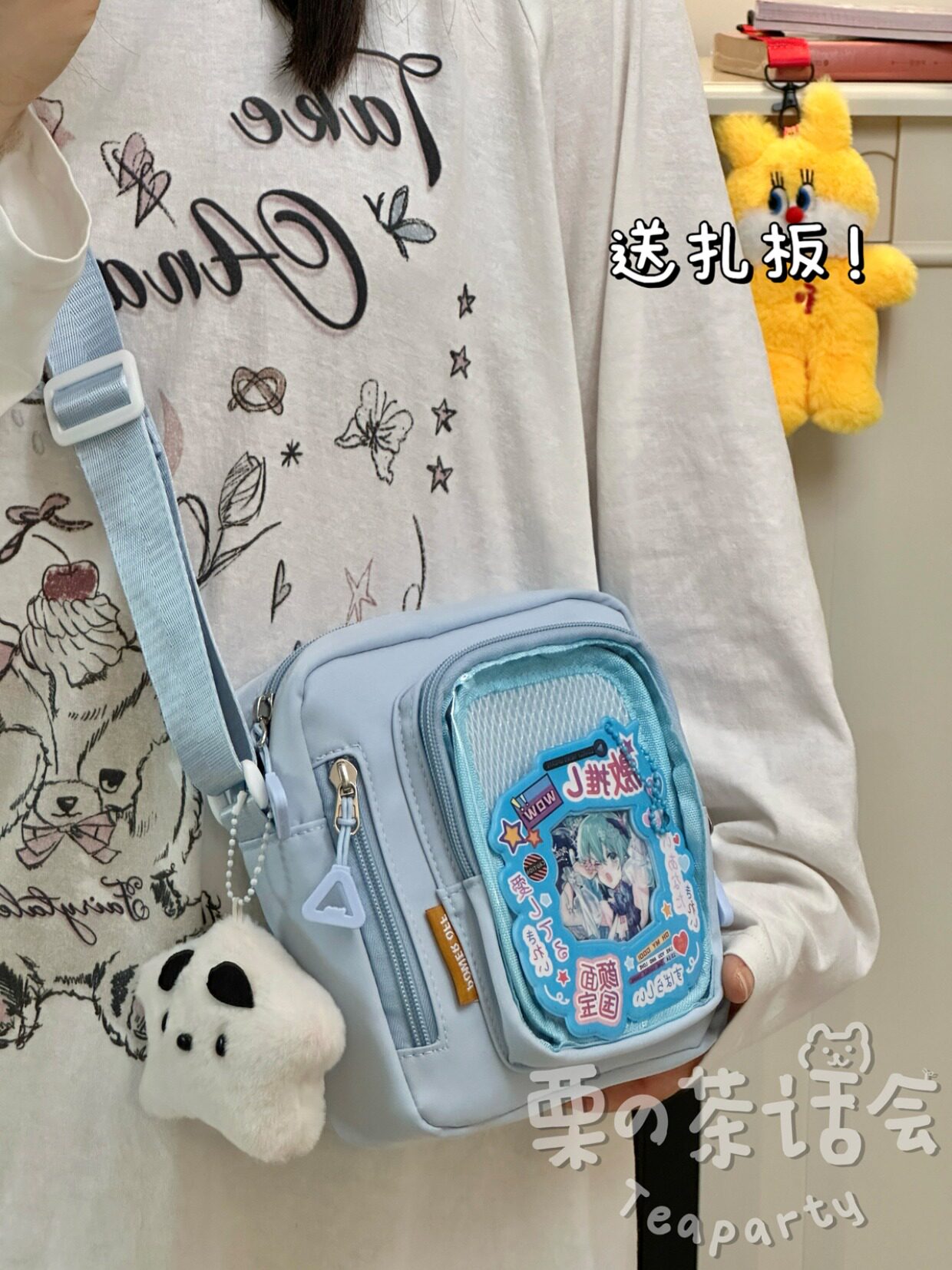 日系ins可愛透明吧唧痛包休閒小包包女 百搭斜後後背包學生簡約手機包