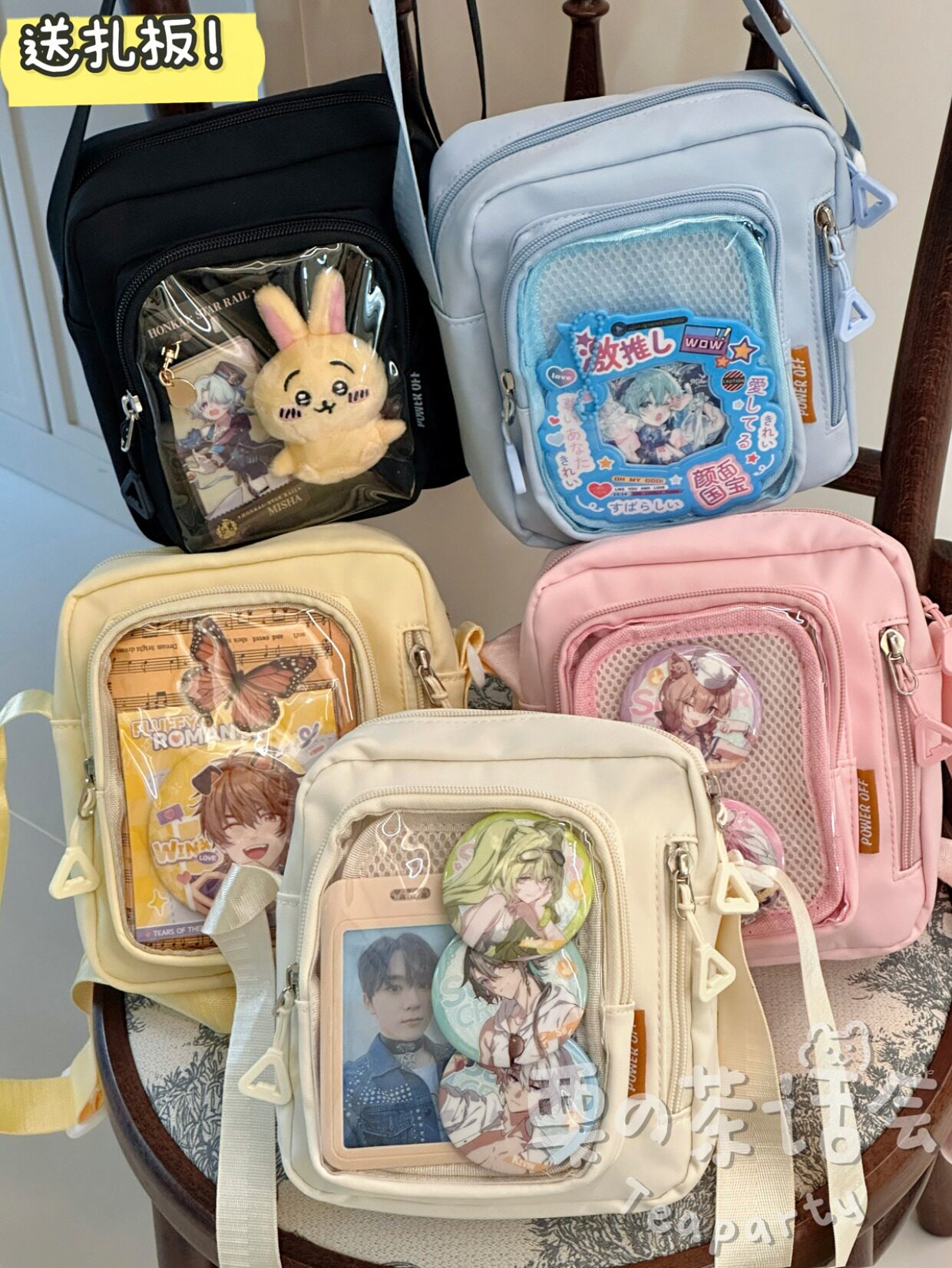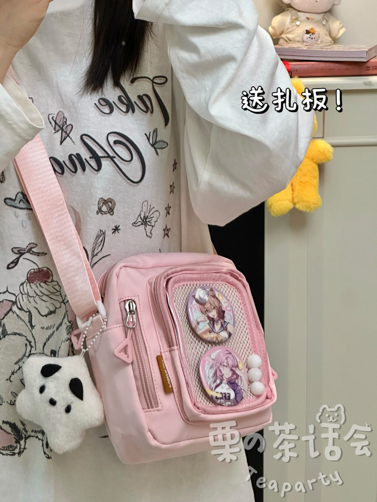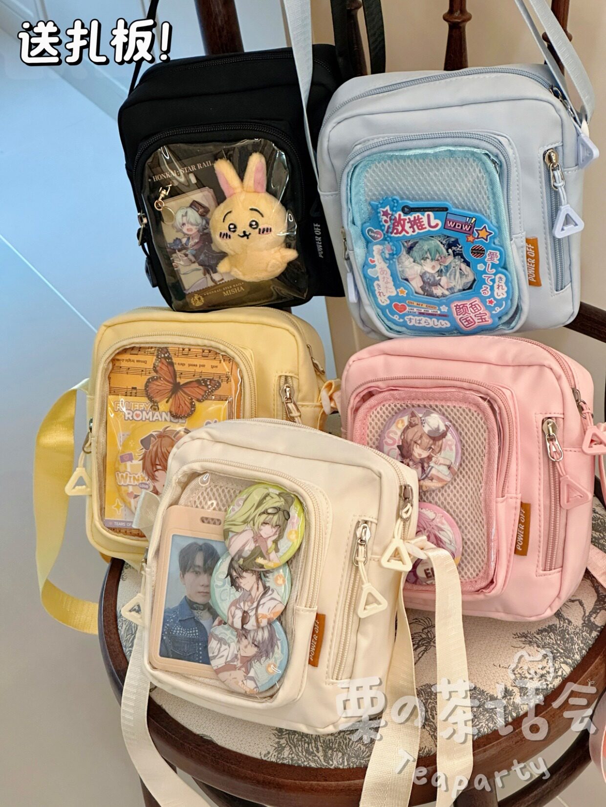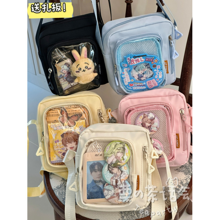 日系ins可愛透明吧唧痛包休閒小包包女 百搭斜後後背包學生簡約手機包