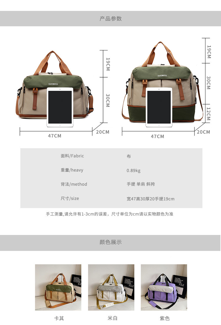 大容量時尚短途旅行包女手提出差輕便行李袋男擴容斜背運動健身包