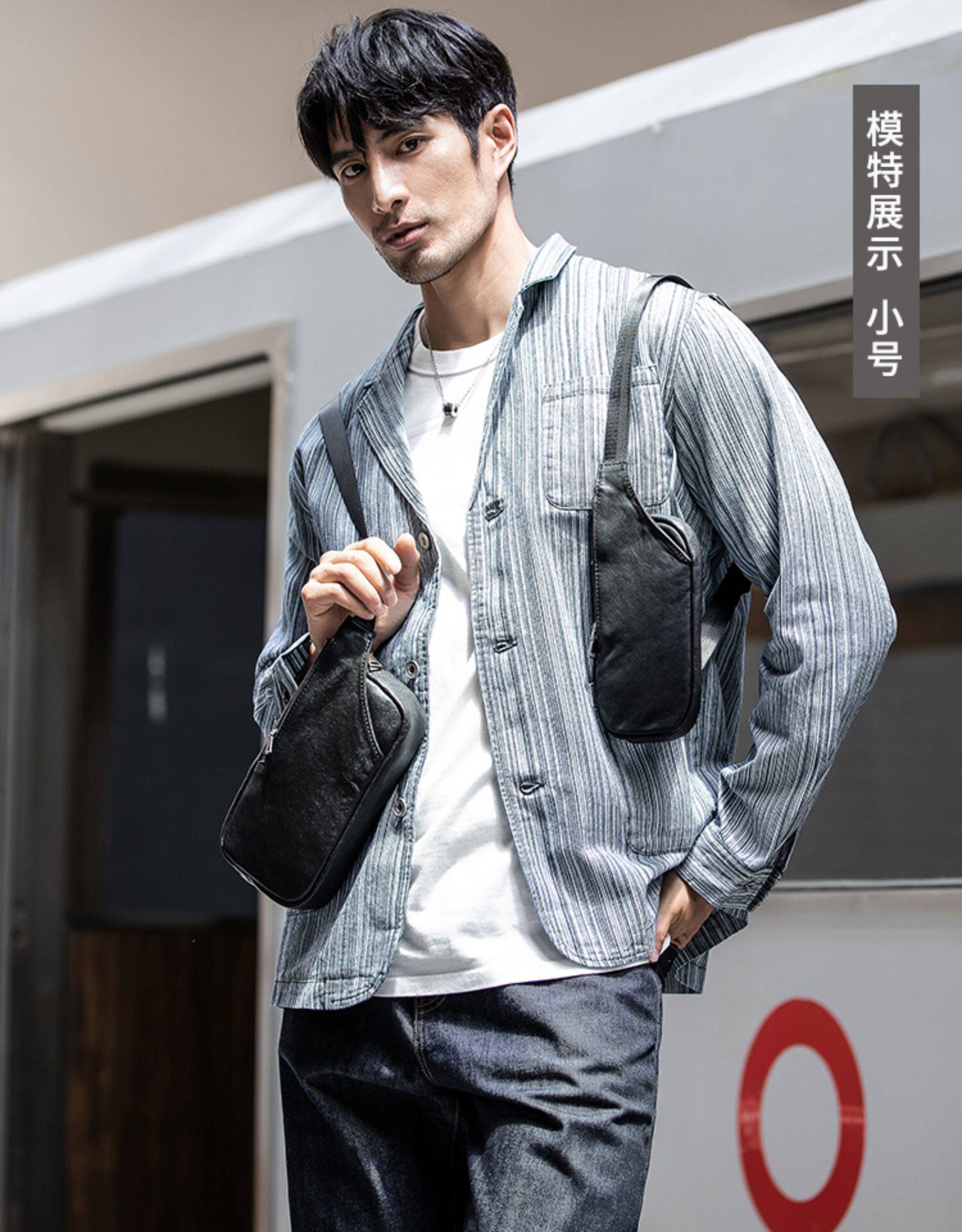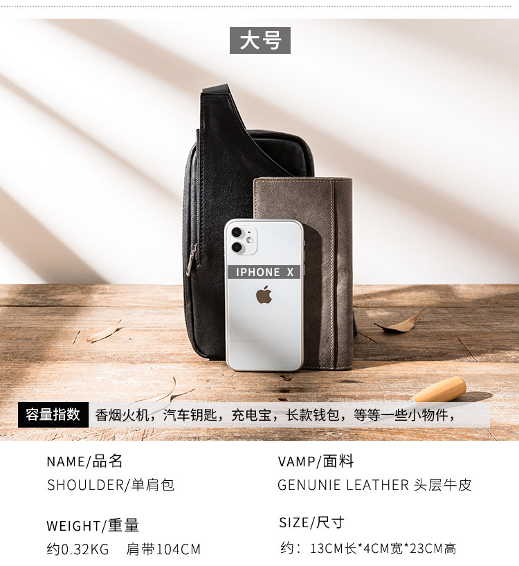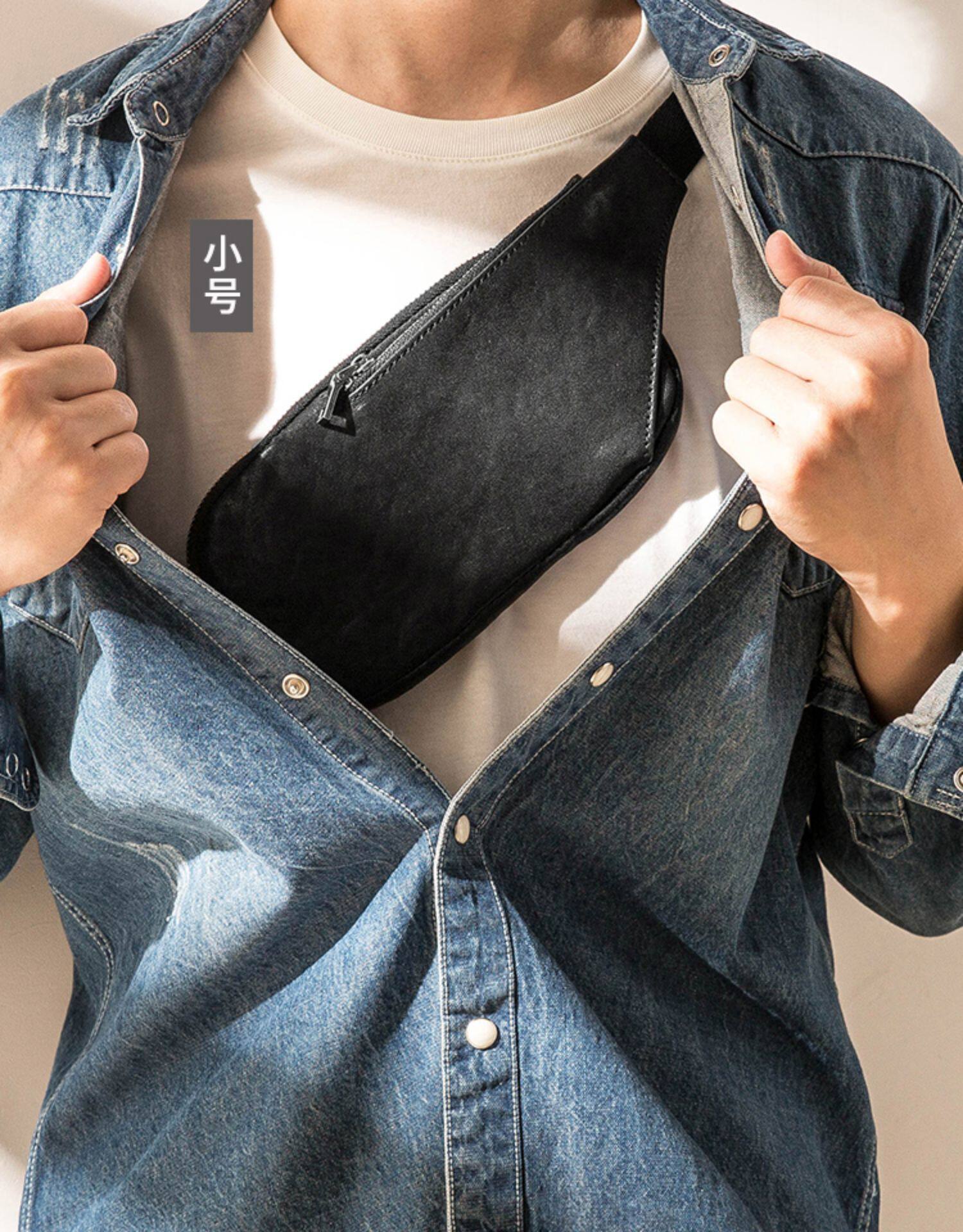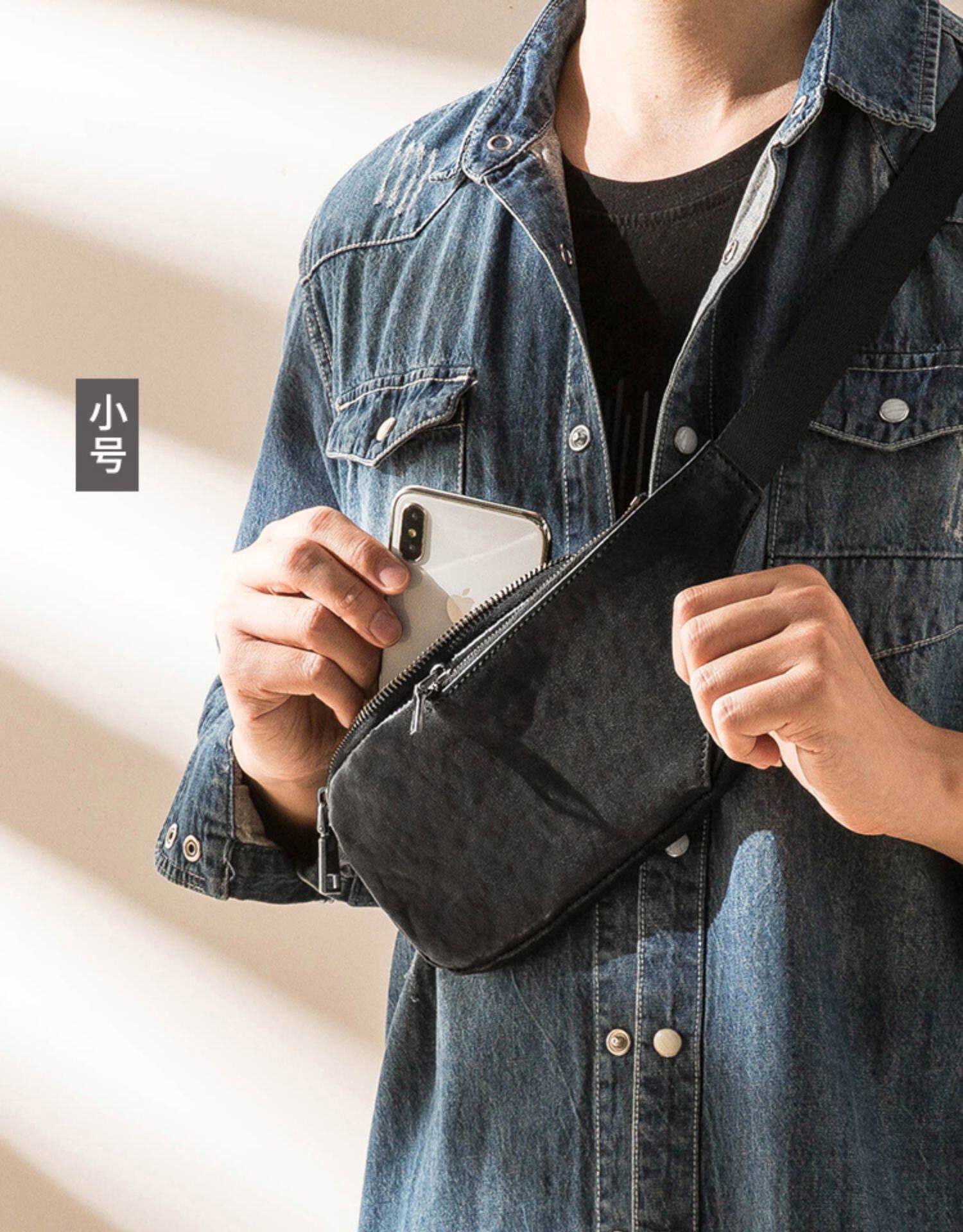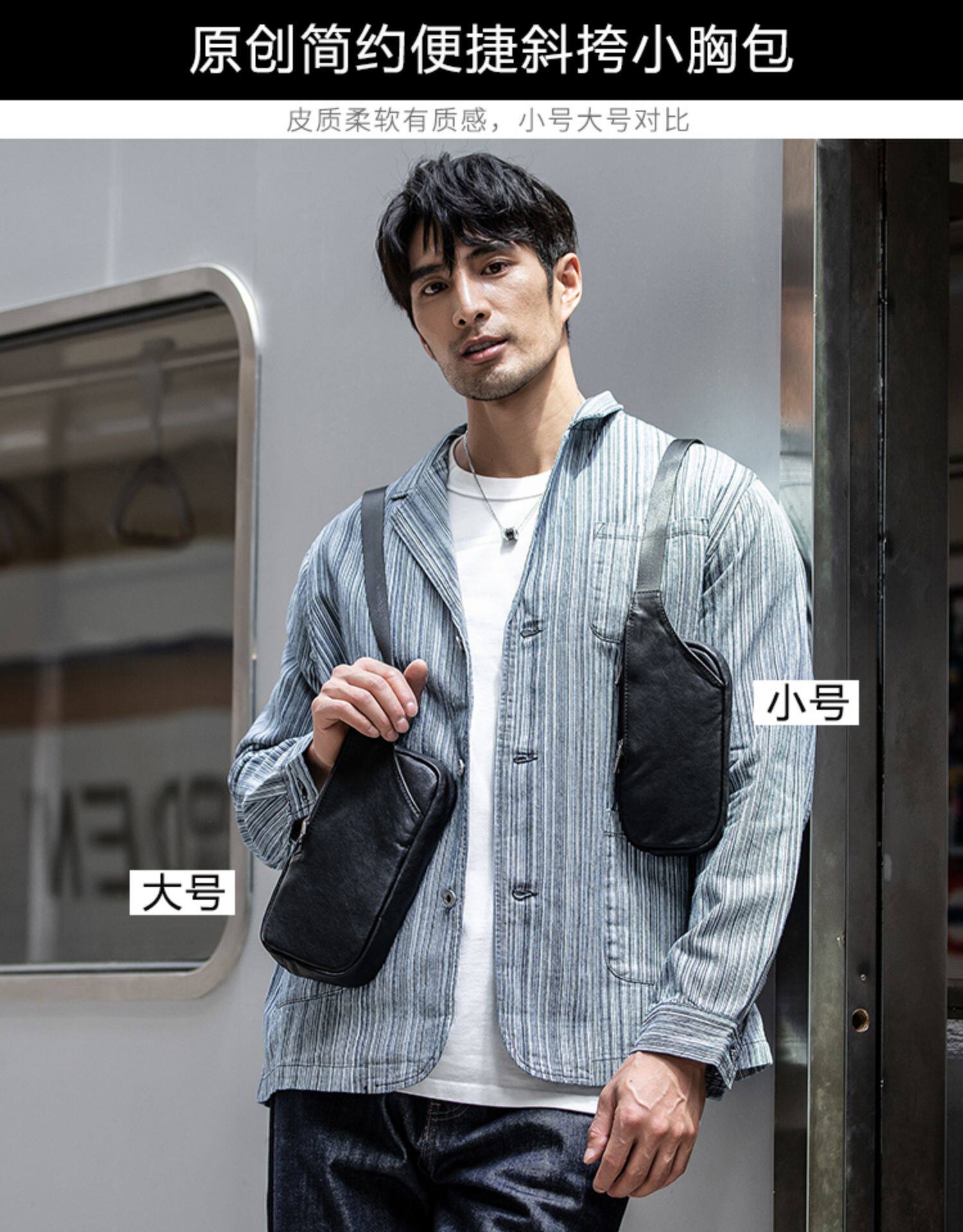 真皮潮牌男士胸包韓版超薄單肩包夏季頭層牛皮百搭休閒斜背小包女