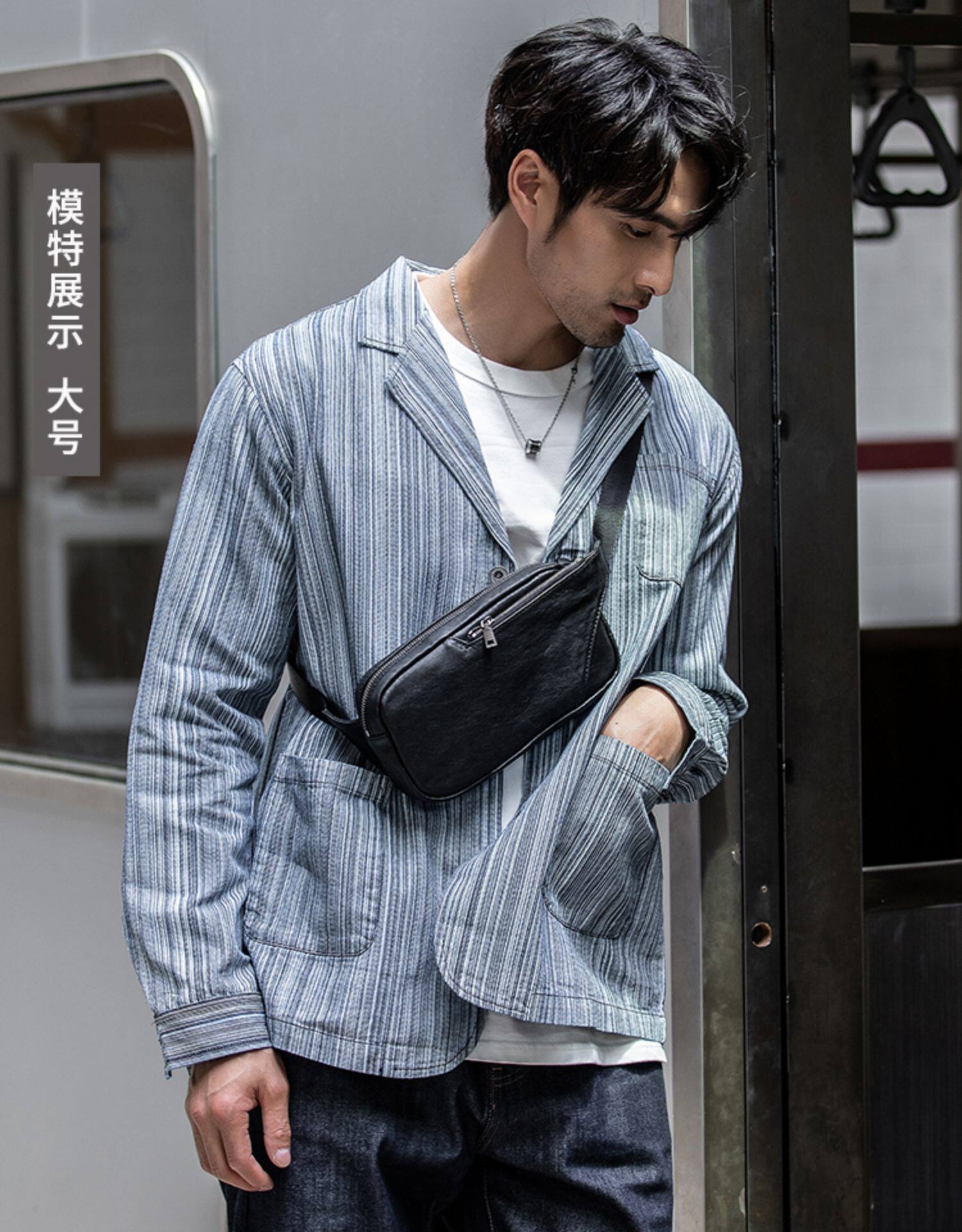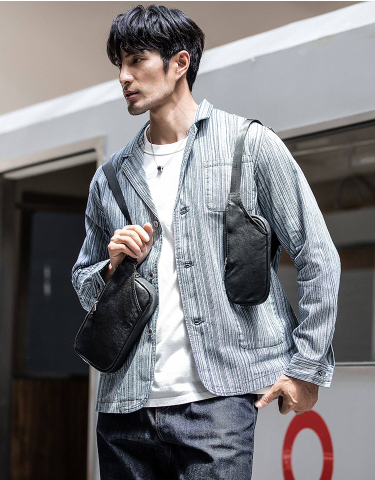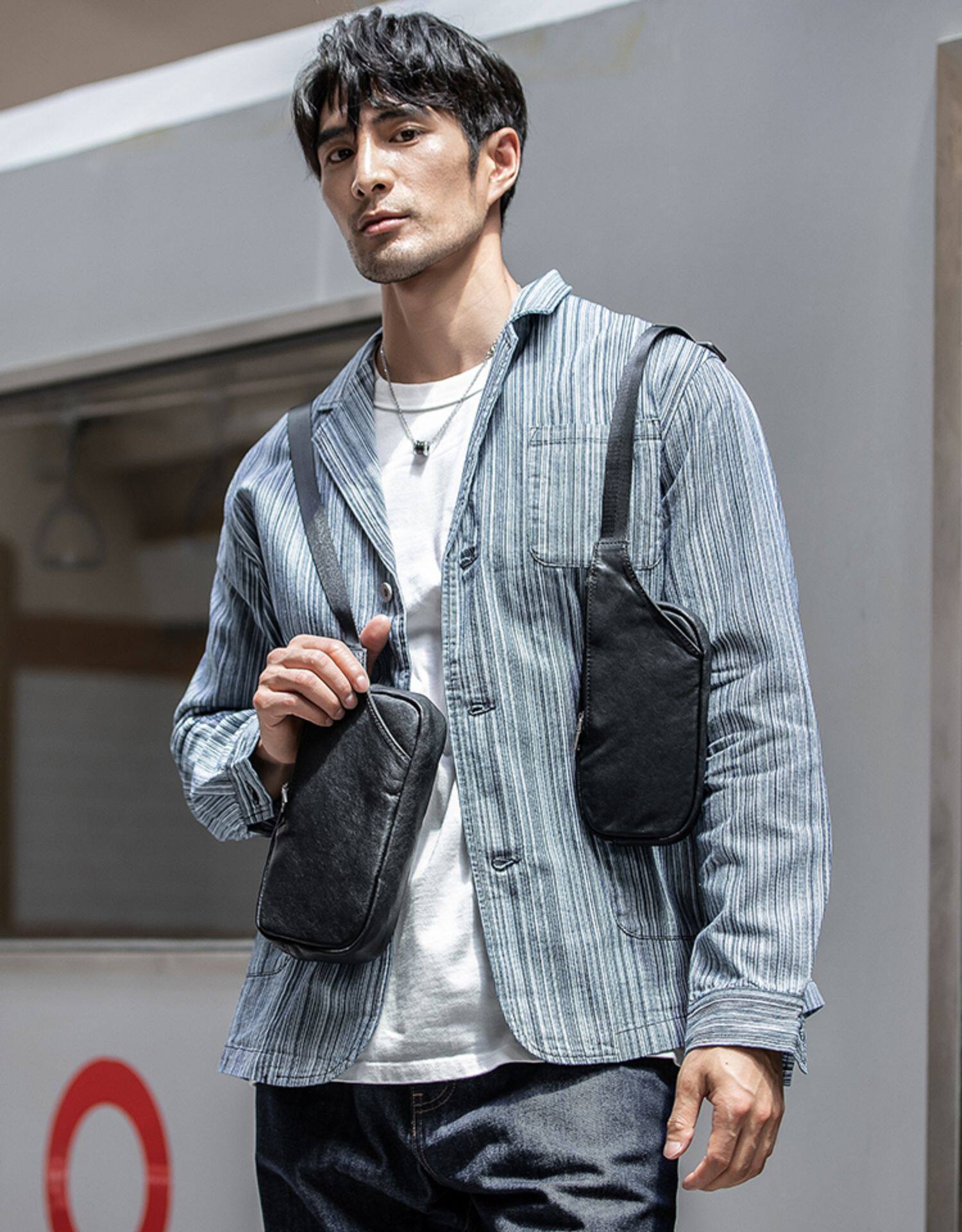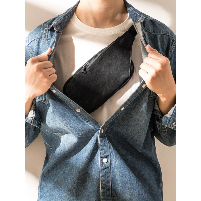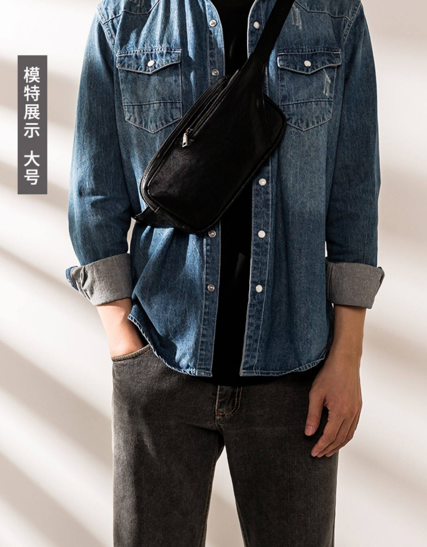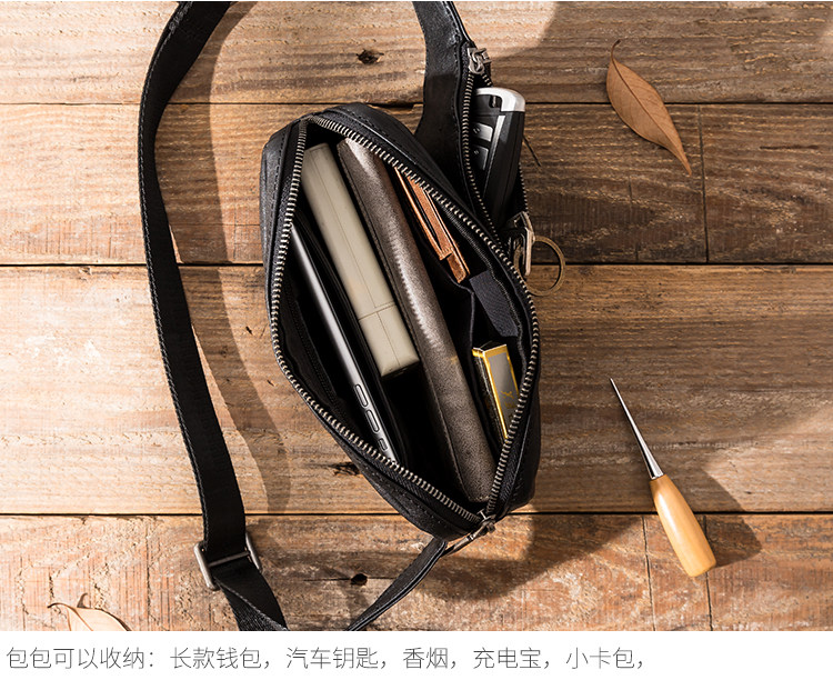真皮潮牌男士胸包韓版超薄單肩包夏季頭層牛皮百搭休閒斜背小包女
