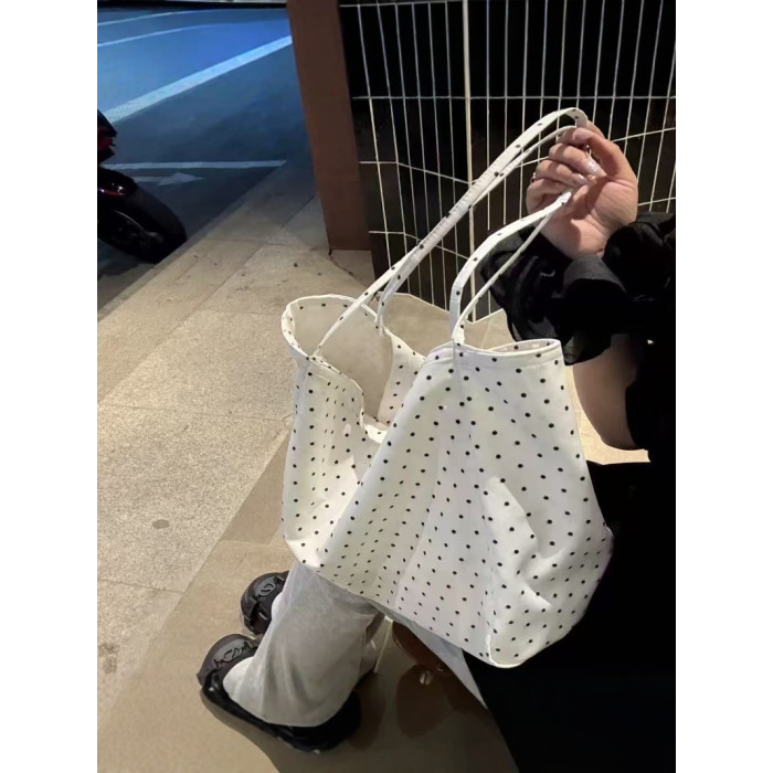 日韓大容量帆布包2025波點新款韓版韓系托特單肩學生少女百搭通勤