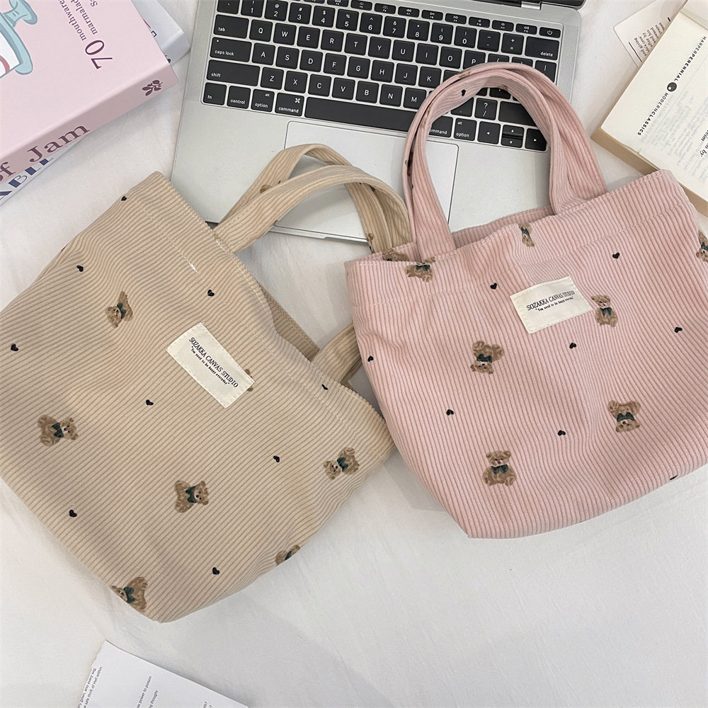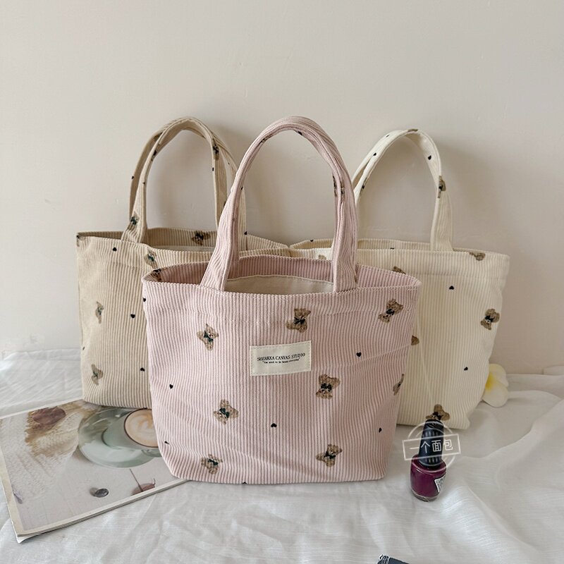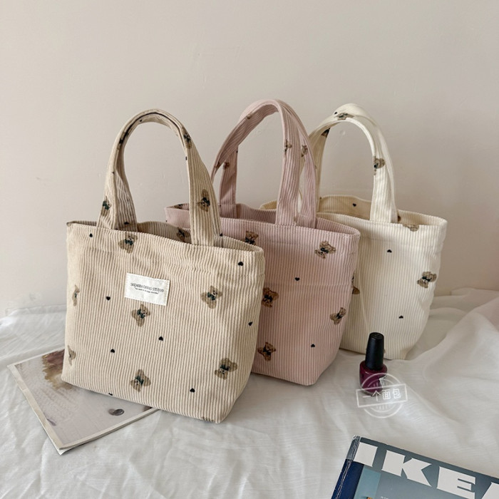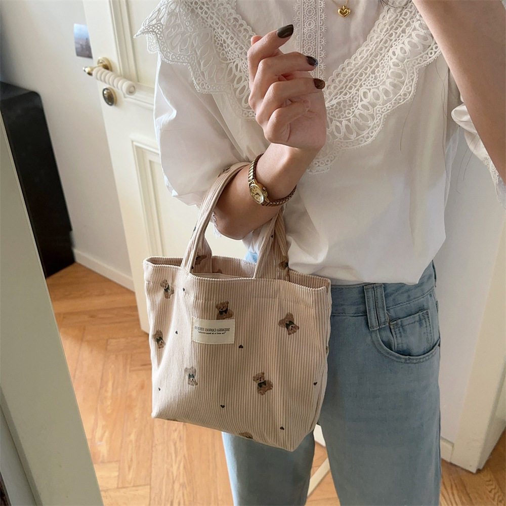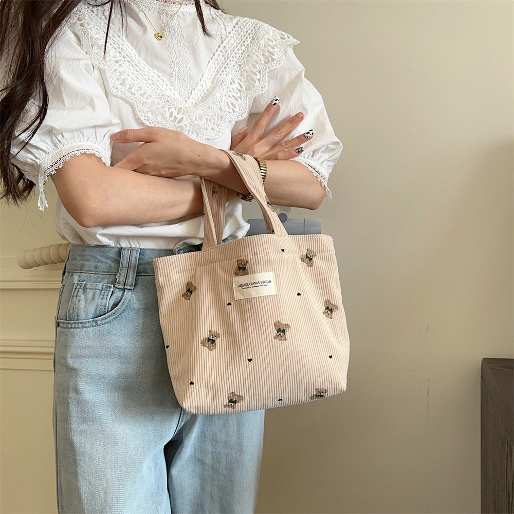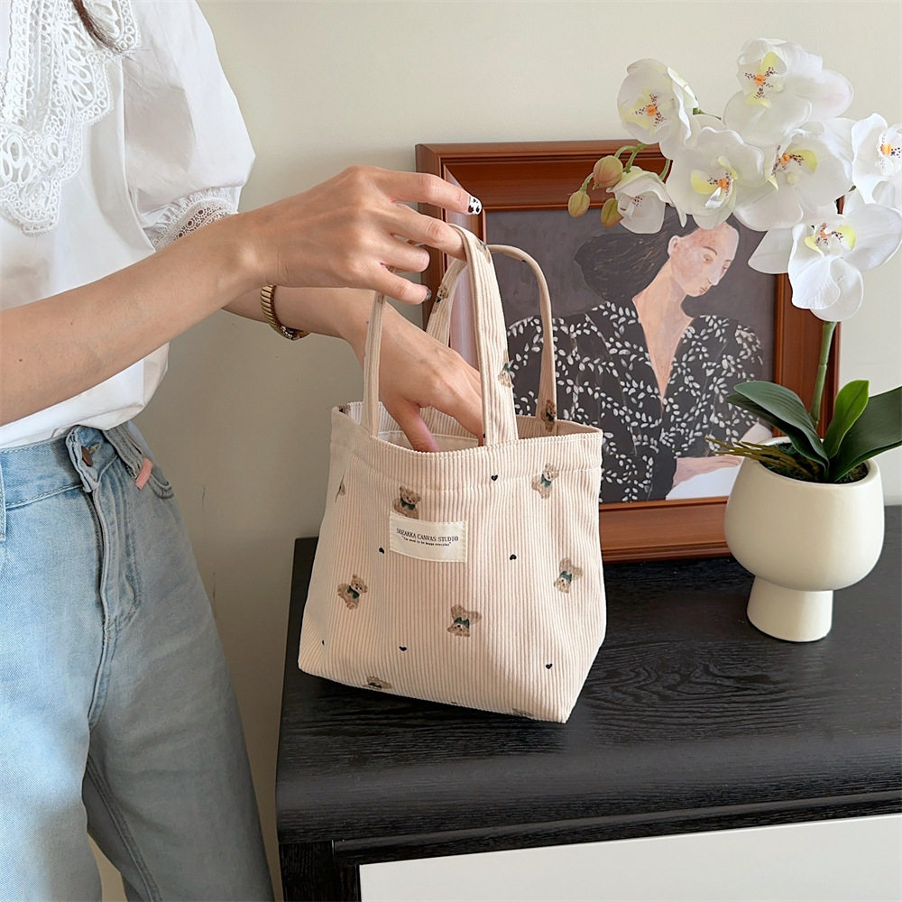 秋冬新款手提小號學生女通勤零食手機雜物收納燈芯絨帆布袋手拎包