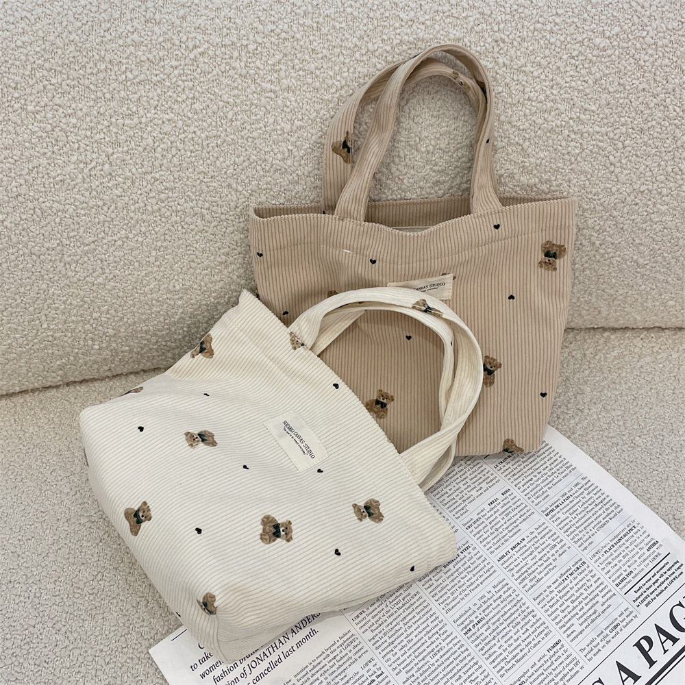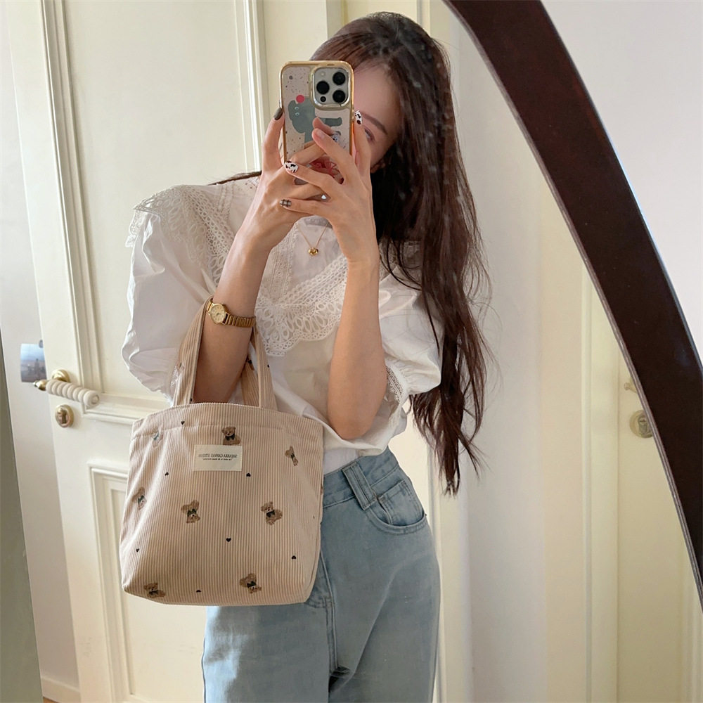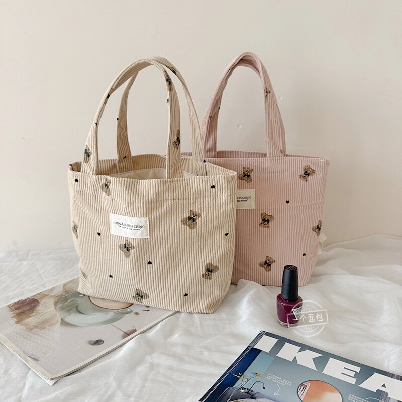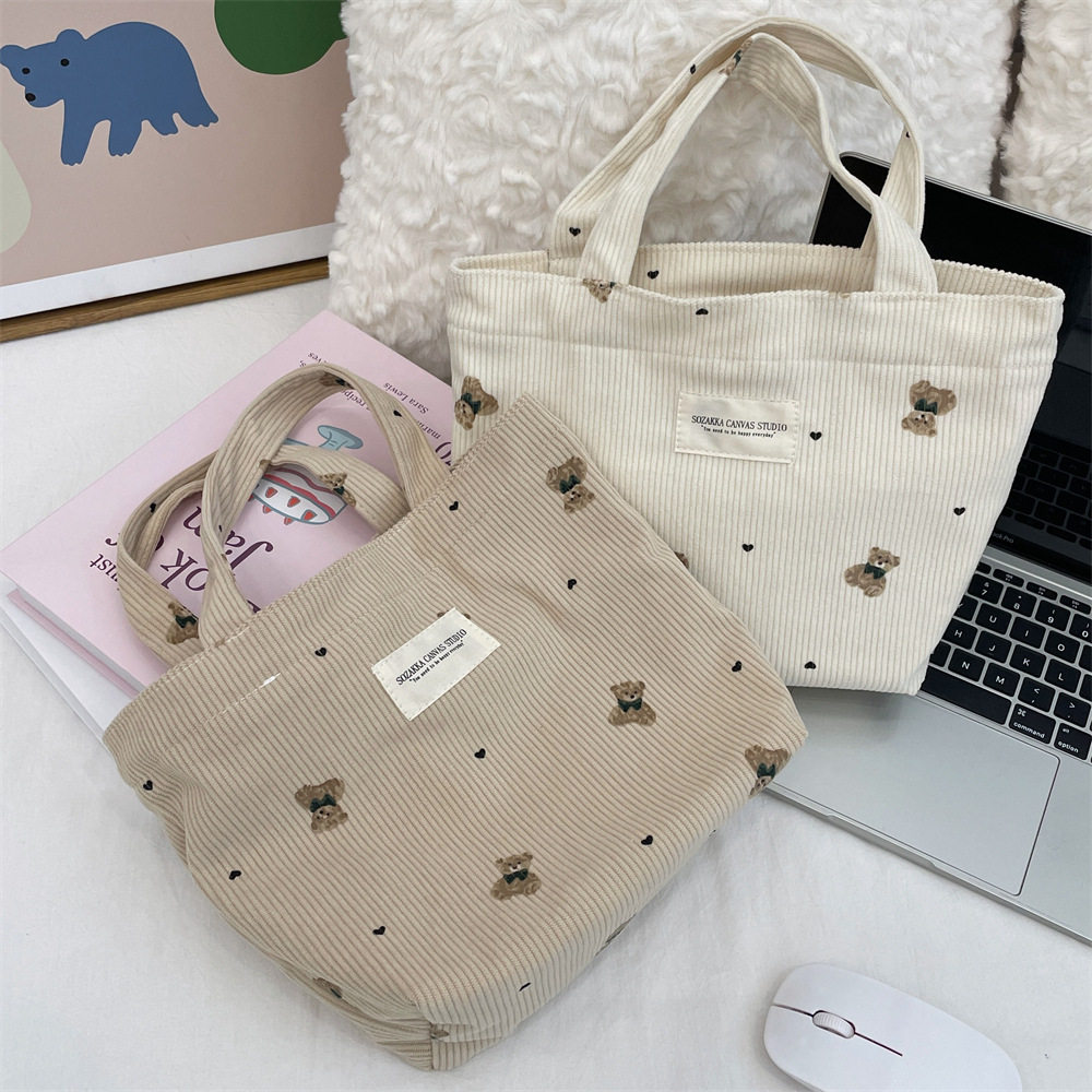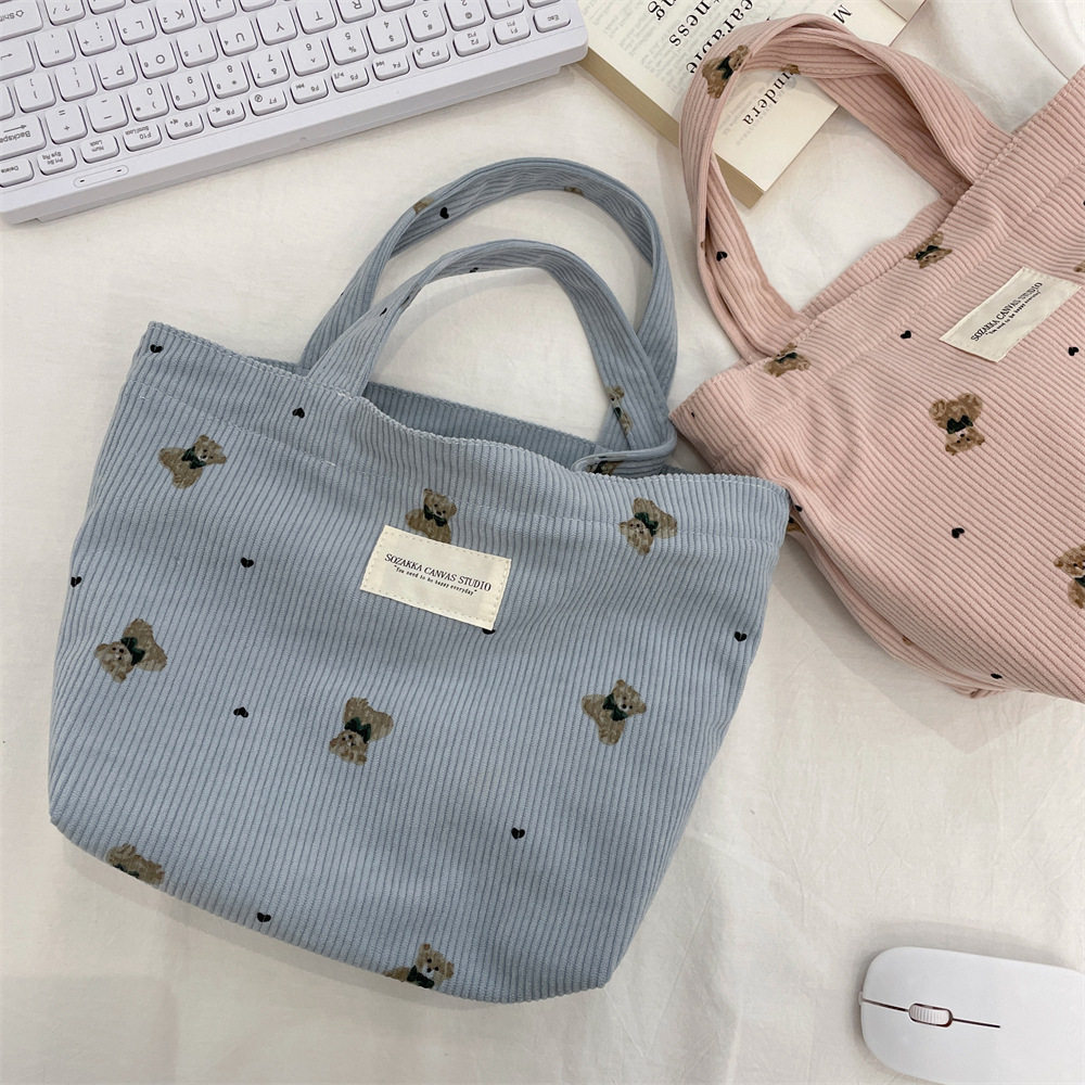 秋冬新款手提小號學生女通勤零食手機雜物收納燈芯絨帆布袋手拎包