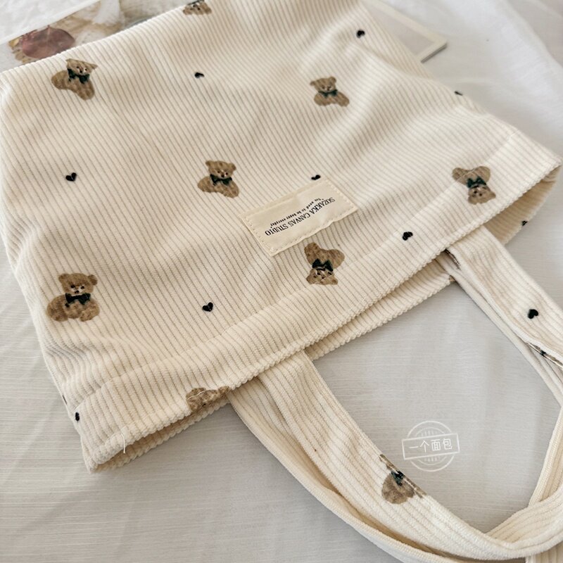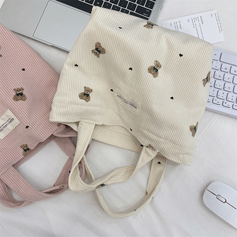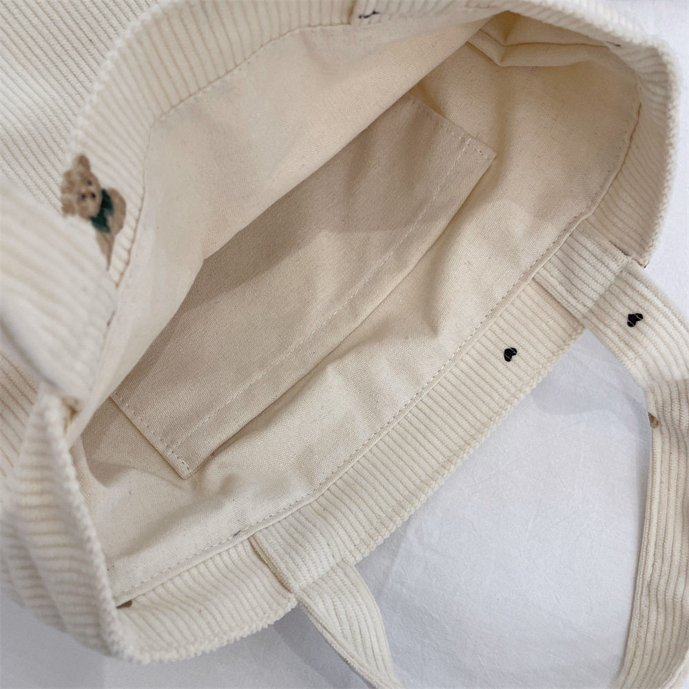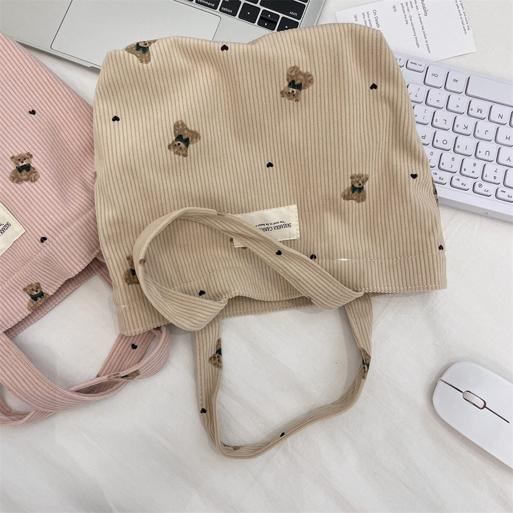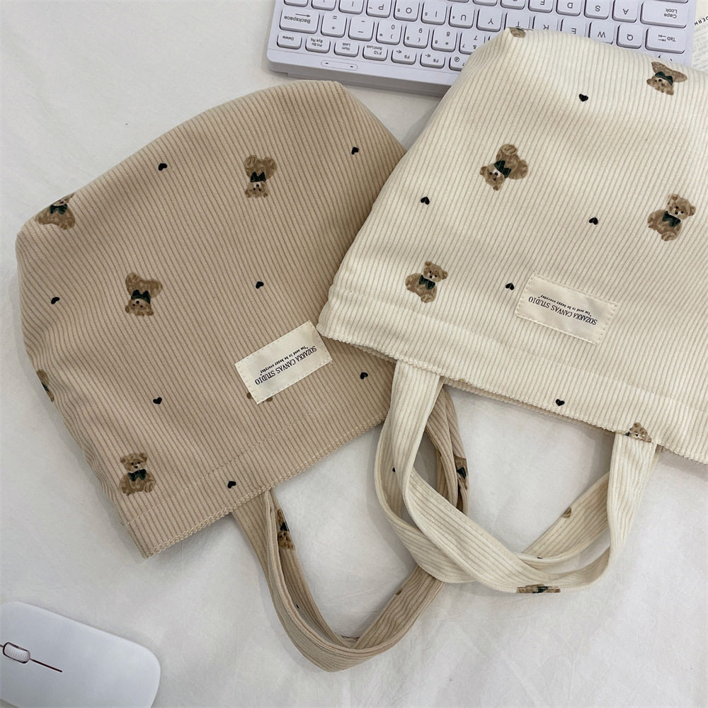 秋冬新款手提小號學生女通勤零食手機雜物收納燈芯絨帆布袋手拎包