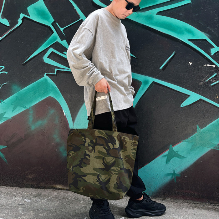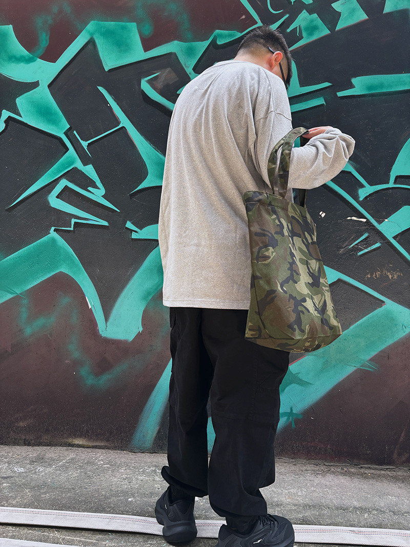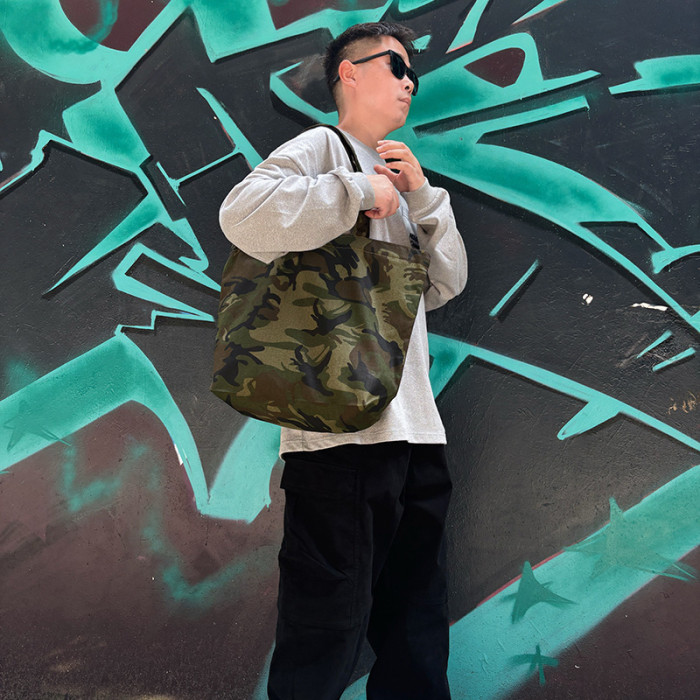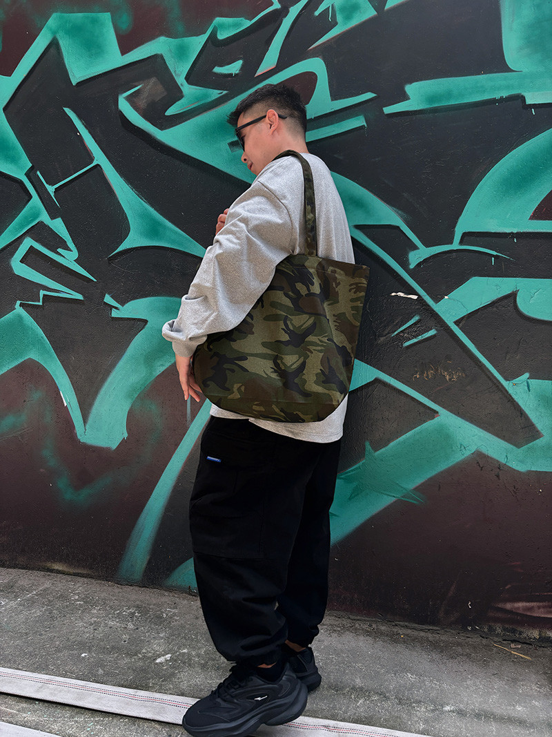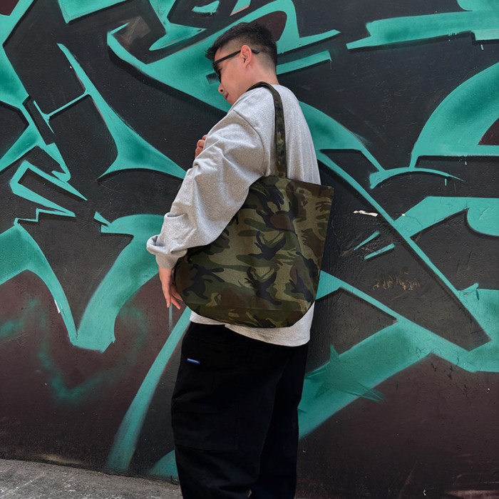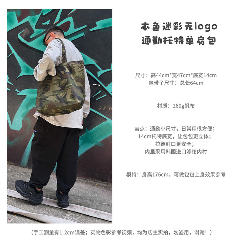 本色迷彩無通勤托特單肩帆布包出街休閒旅行健身環保袋