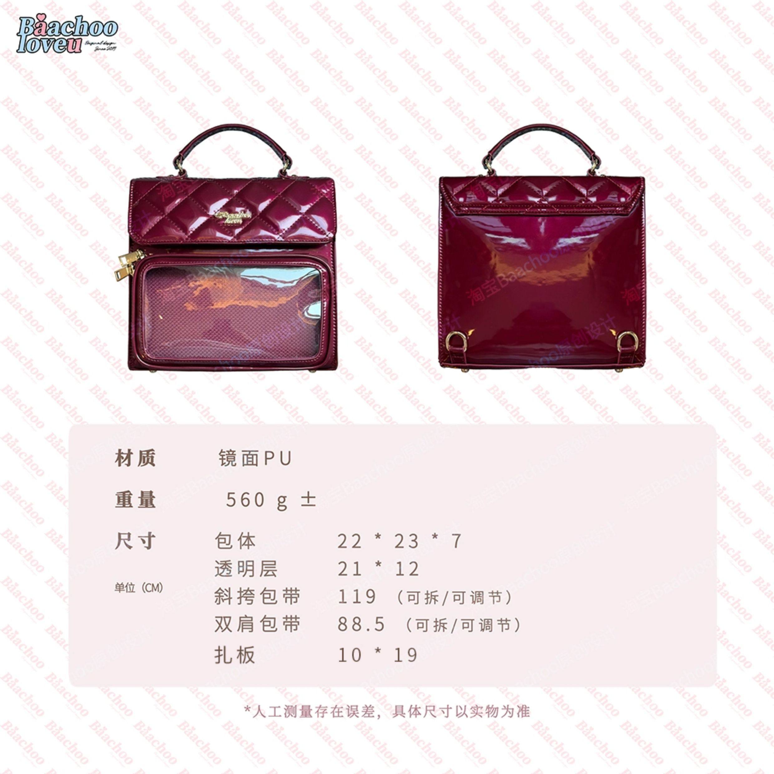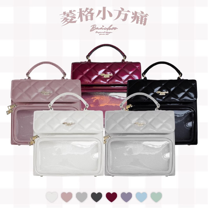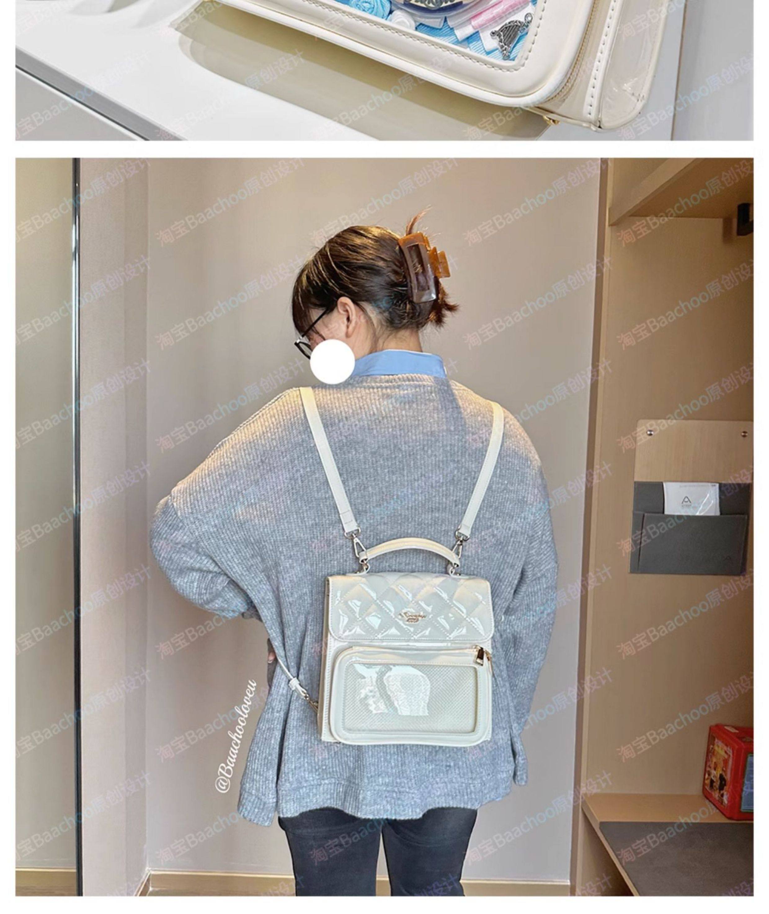 Baachoo原創 漆皮菱格痛包雙肩斜背手提日常通勤小食量
