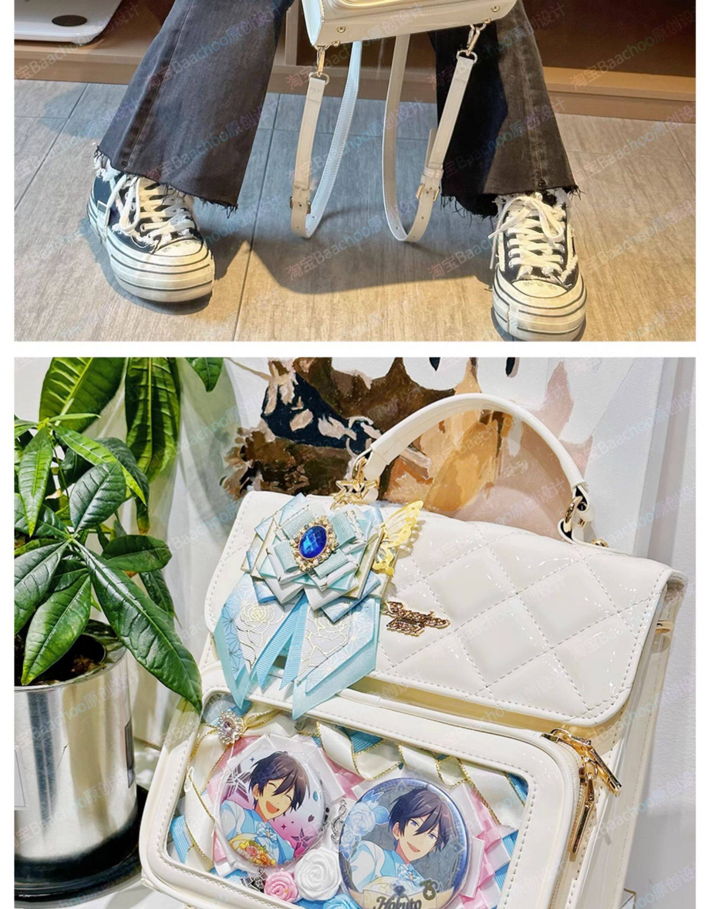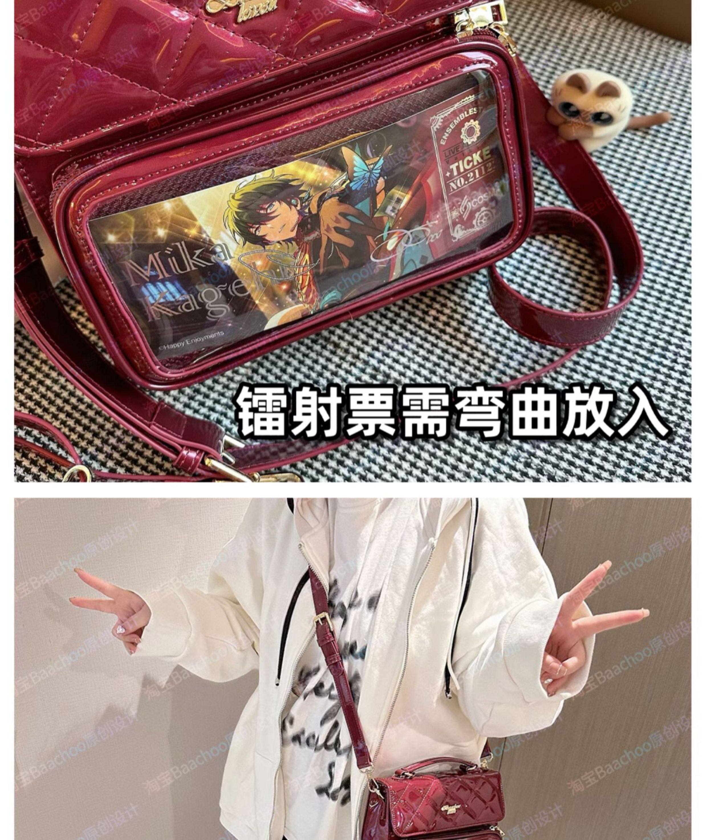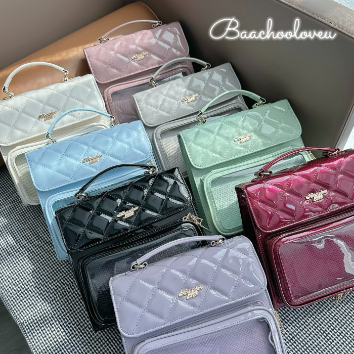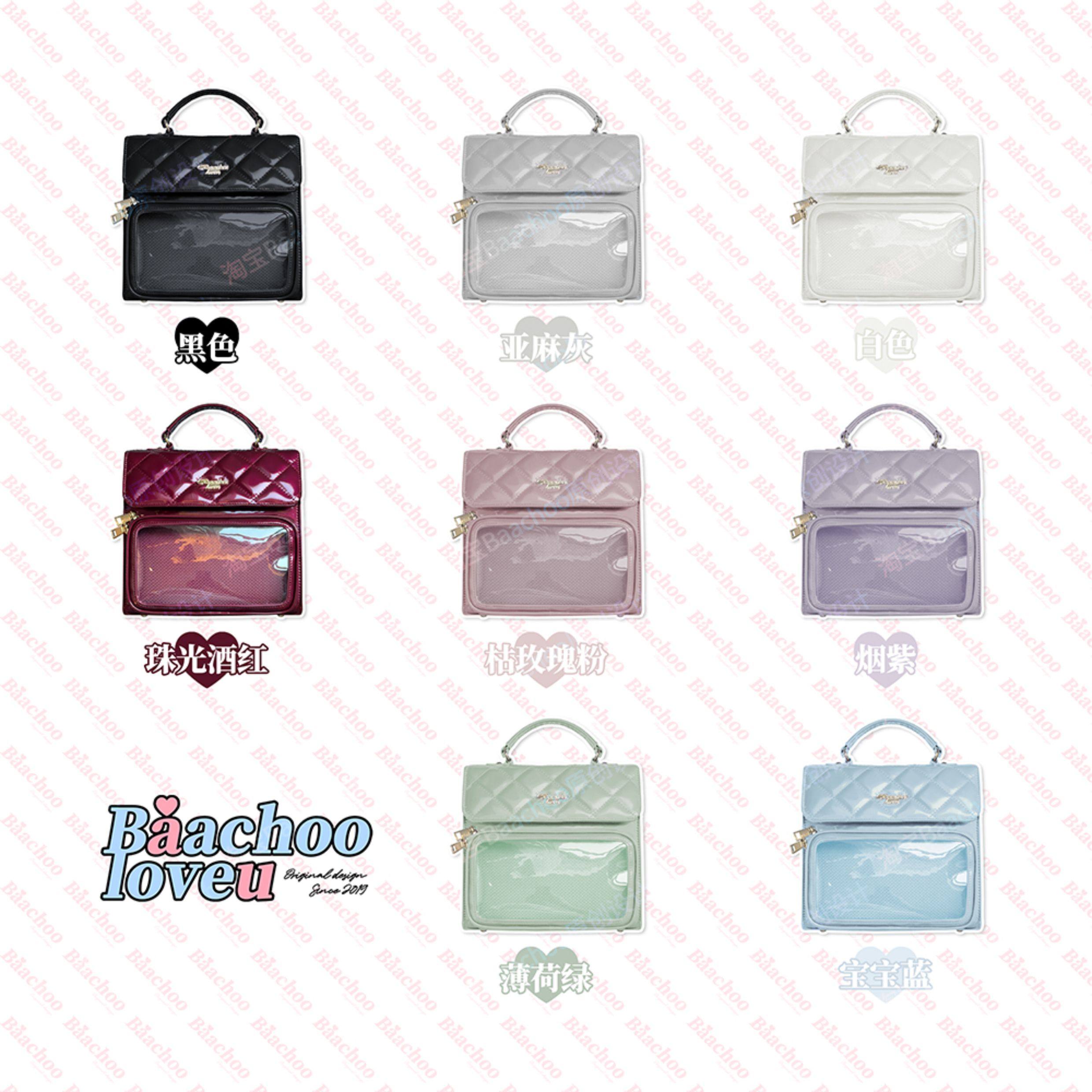 Baachoo原創 漆皮菱格痛包雙肩斜背手提日常通勤小食量