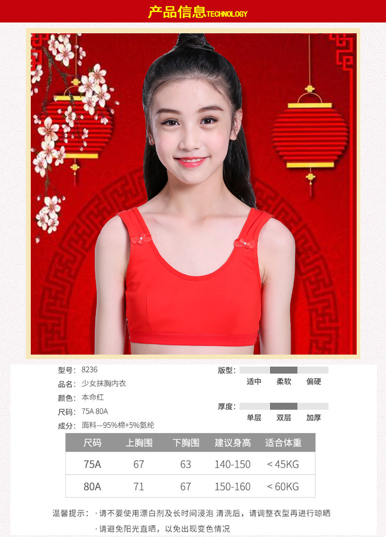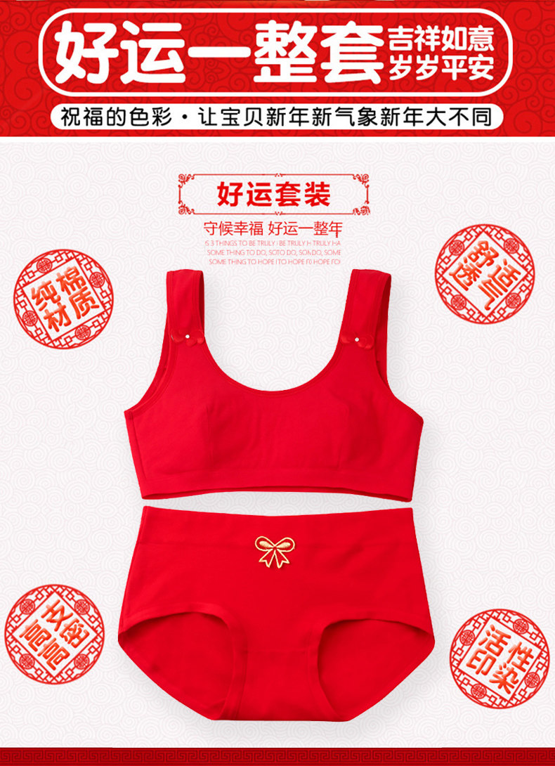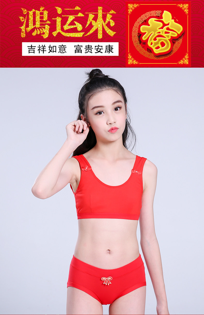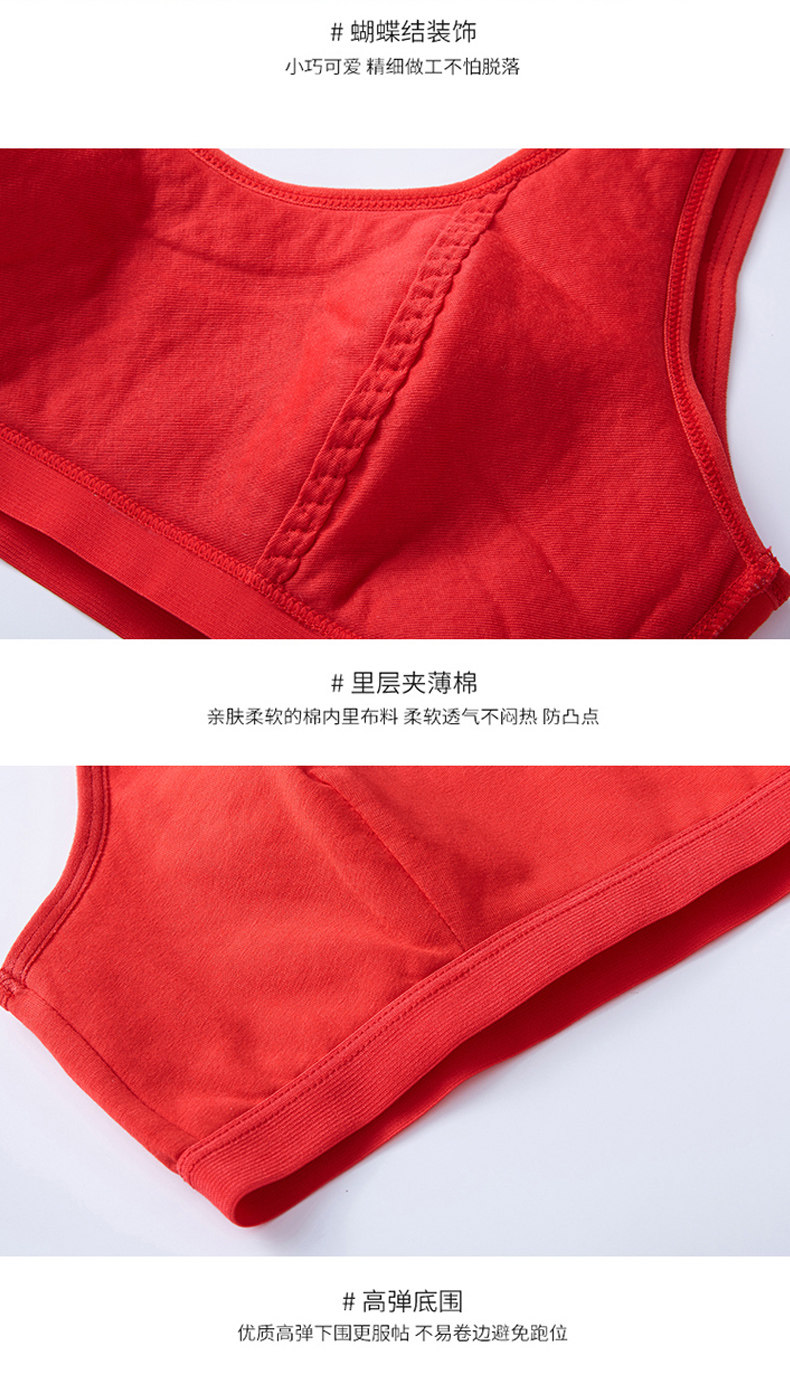 少女本命年內衣紅色文胸套裝12嵗新款純棉發育期女童小背心龍年