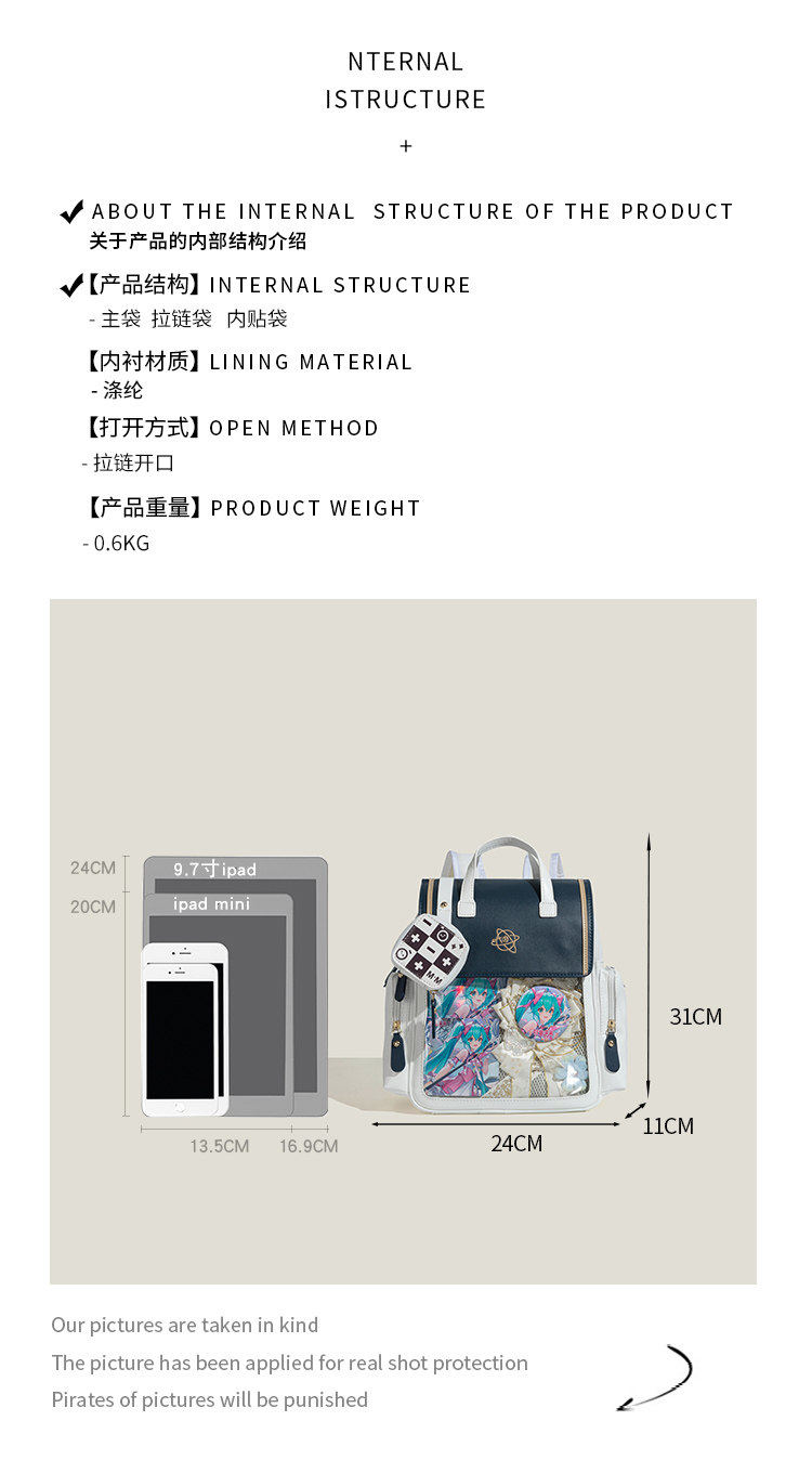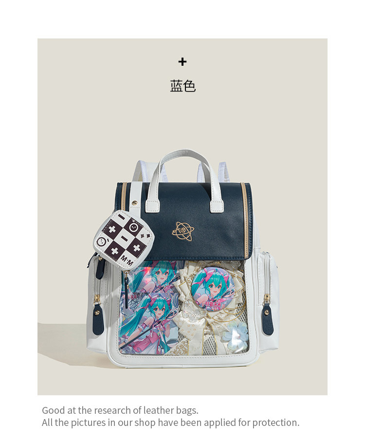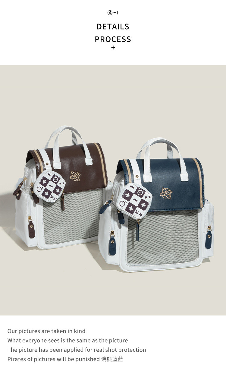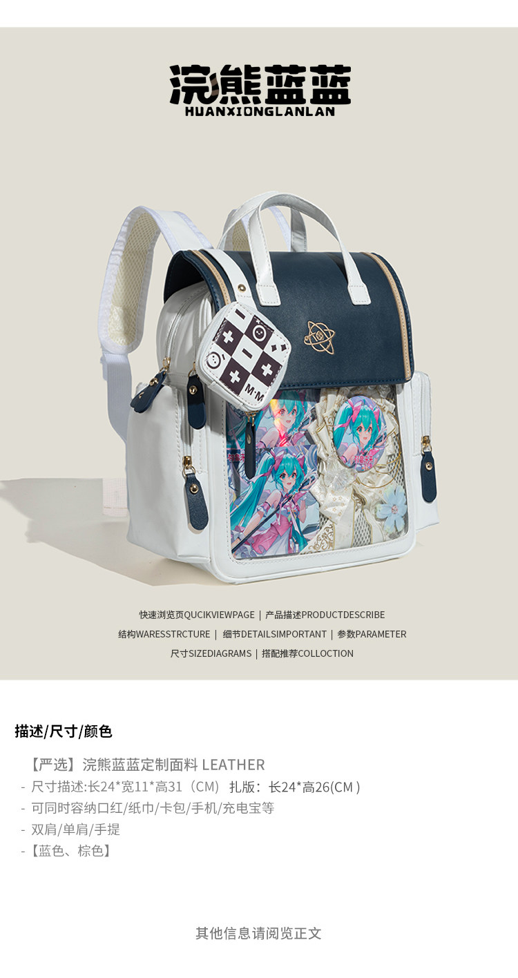 浣熊藍藍原創日系學院風透明少女吧唧痛包大容量上學通勤百搭後後背包