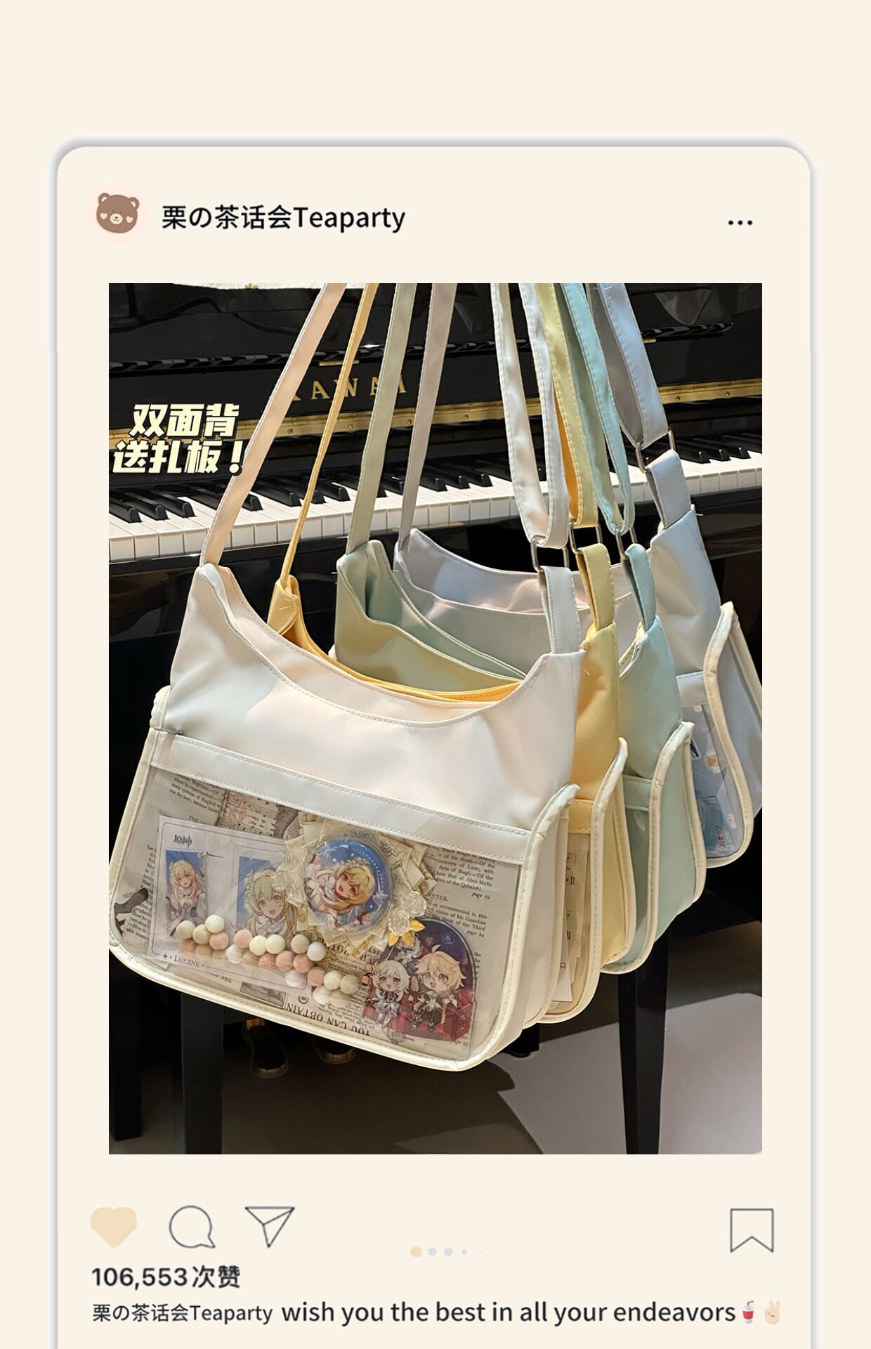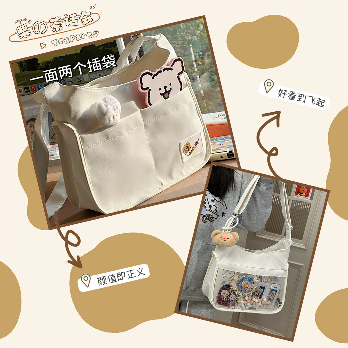 地下黨痛包輕便高顔值日系二次元吧唧單肩包學生大容量斜後後背包包女