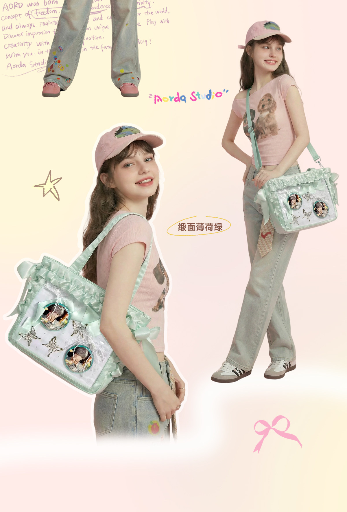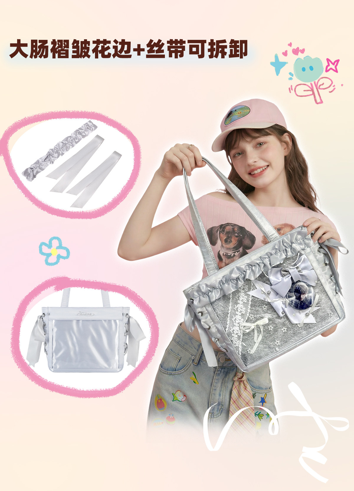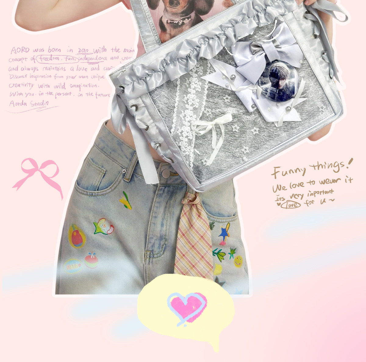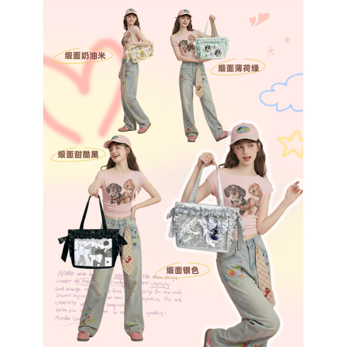 AORDA 小食量絲帶痛包斜背輕盈痛日常二次元托特包大腸痛吧唧娃包