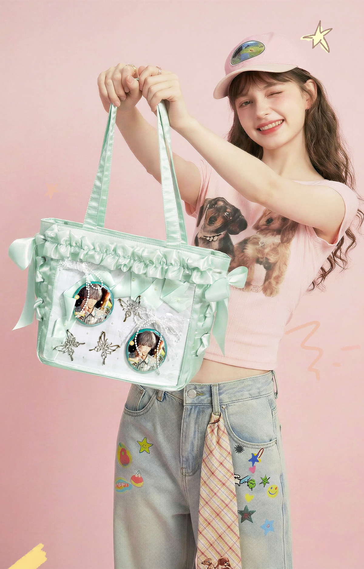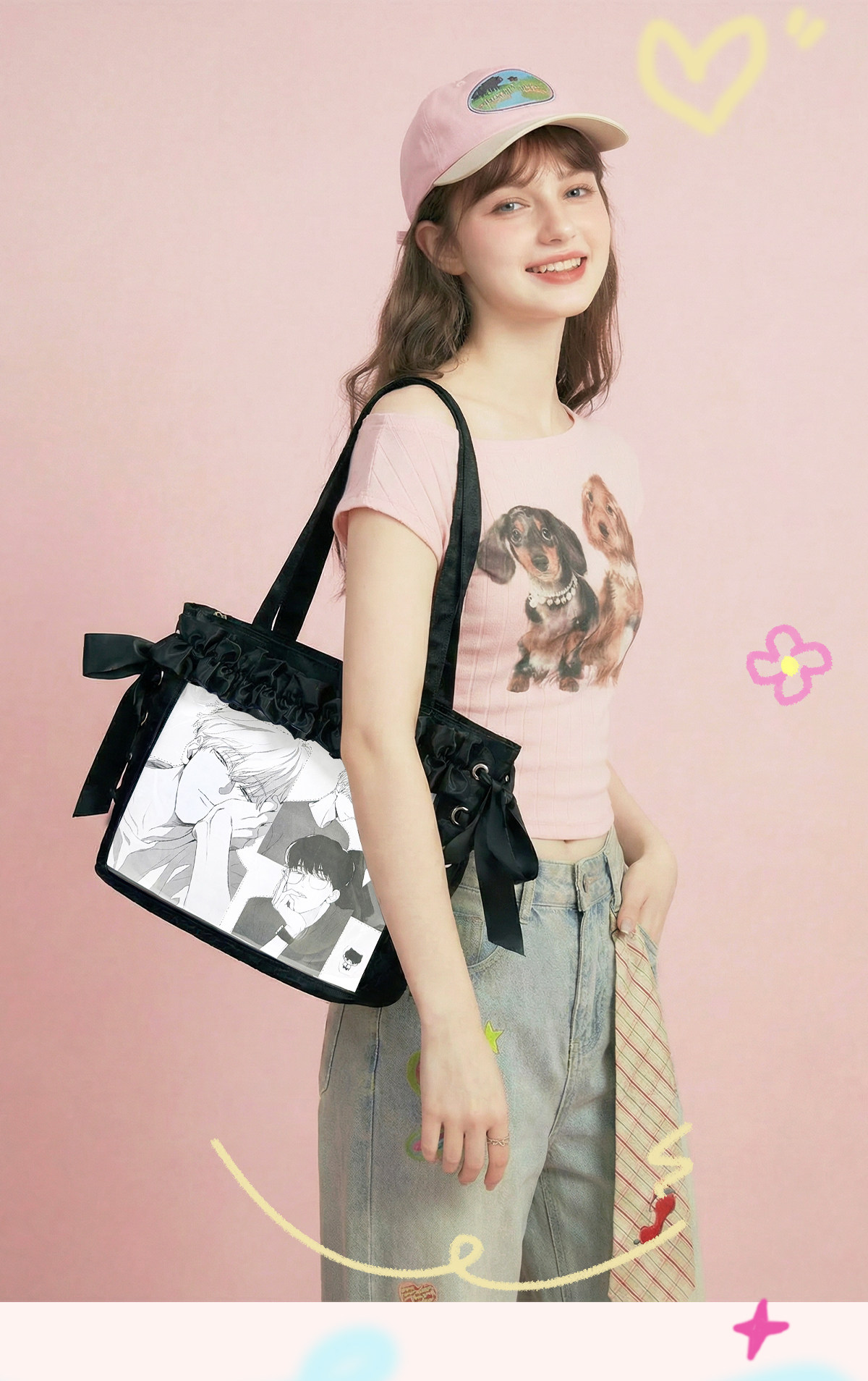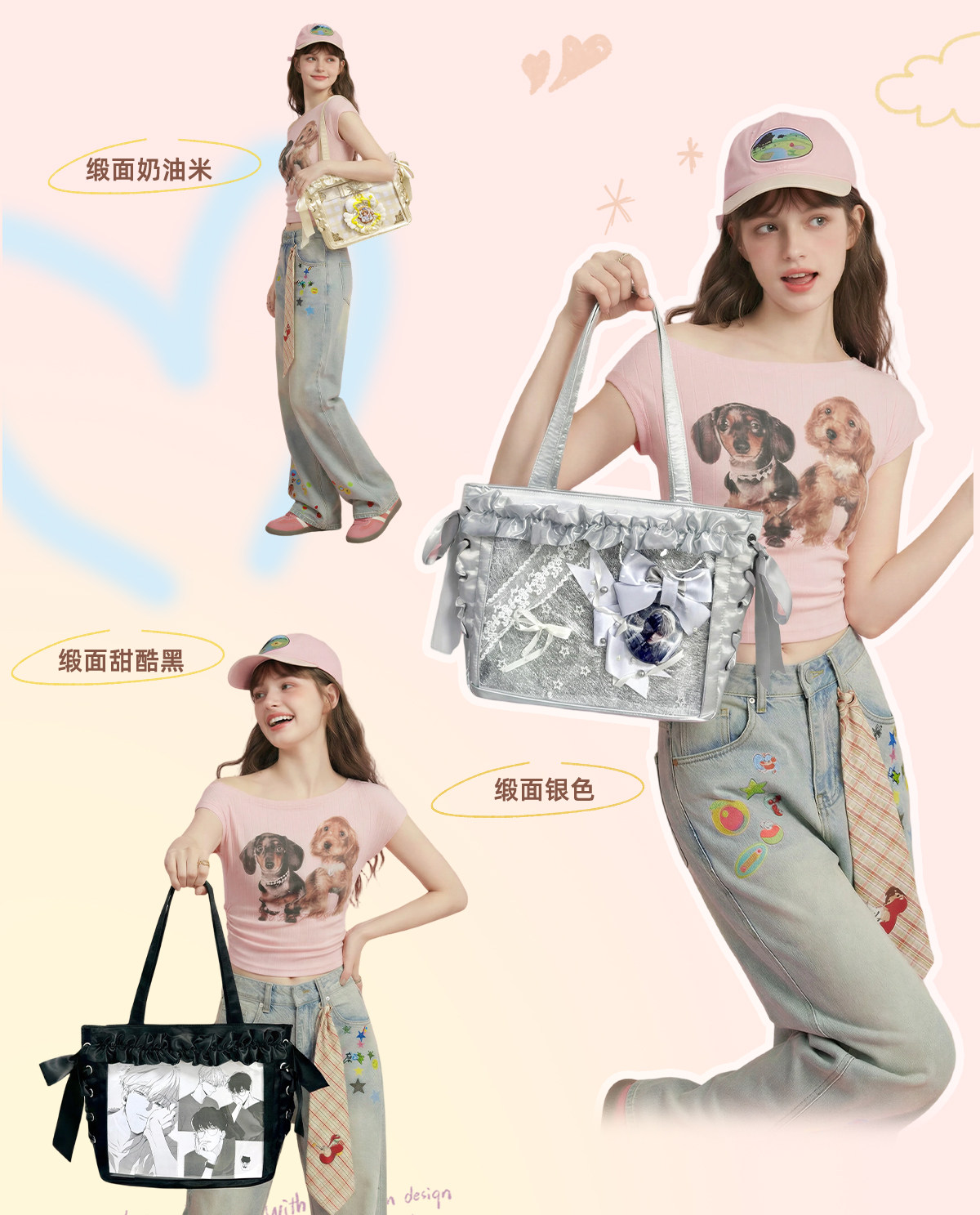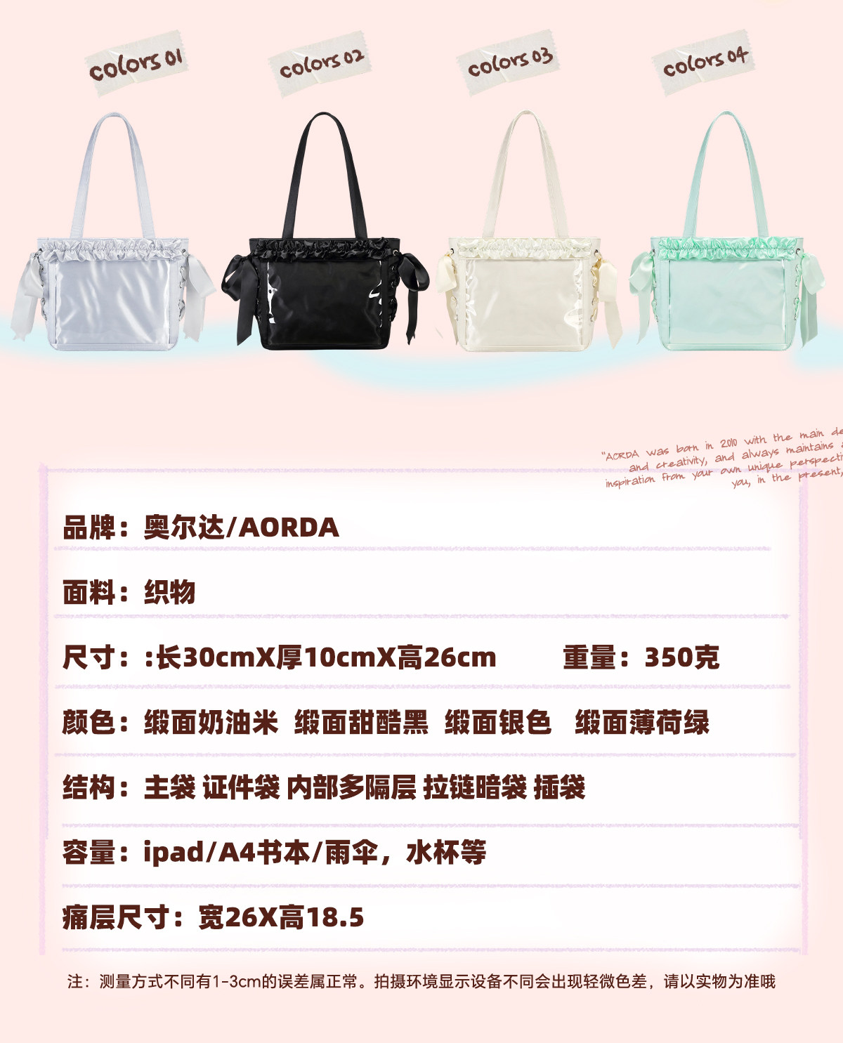 AORDA 小食量絲帶痛包斜背輕盈痛日常二次元托特包大腸痛吧唧娃包