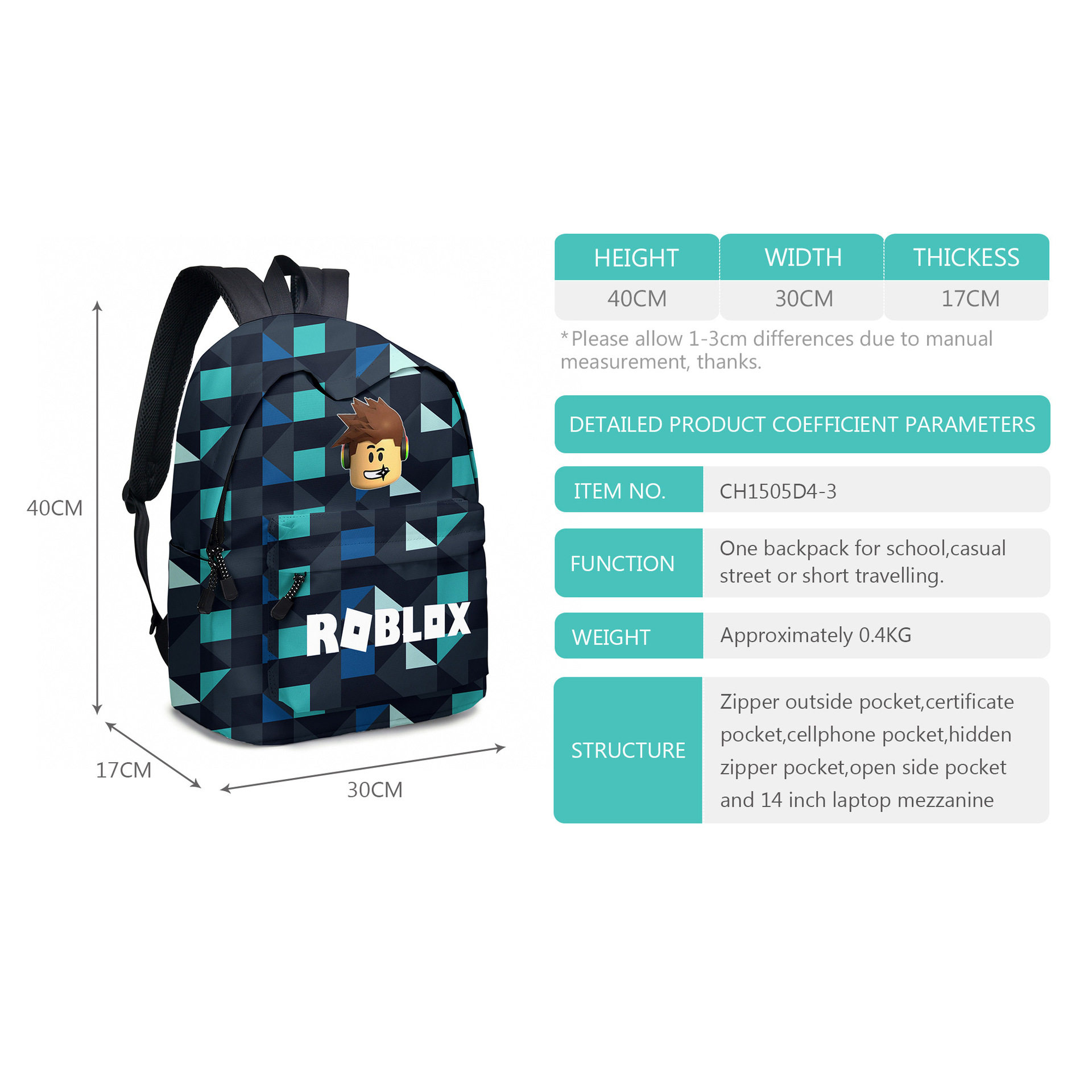 Roblox書包筆袋餐包套裝羅布樂思小學生初中生後後背包大容量旅行包