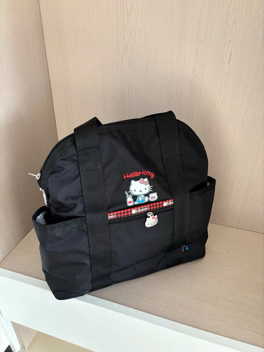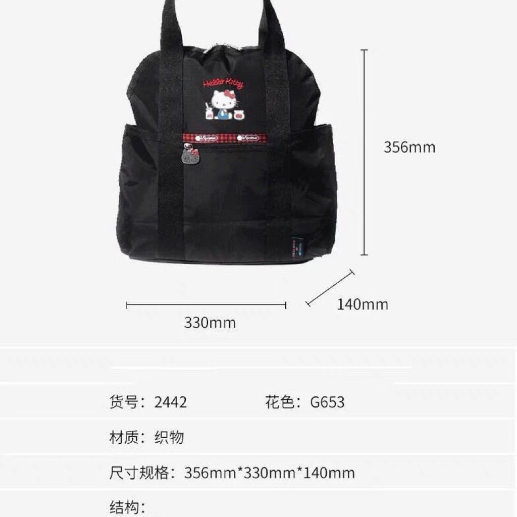2025新款hellokitty雙肩包黑色兩用包書包旅行包大容量百搭手提包