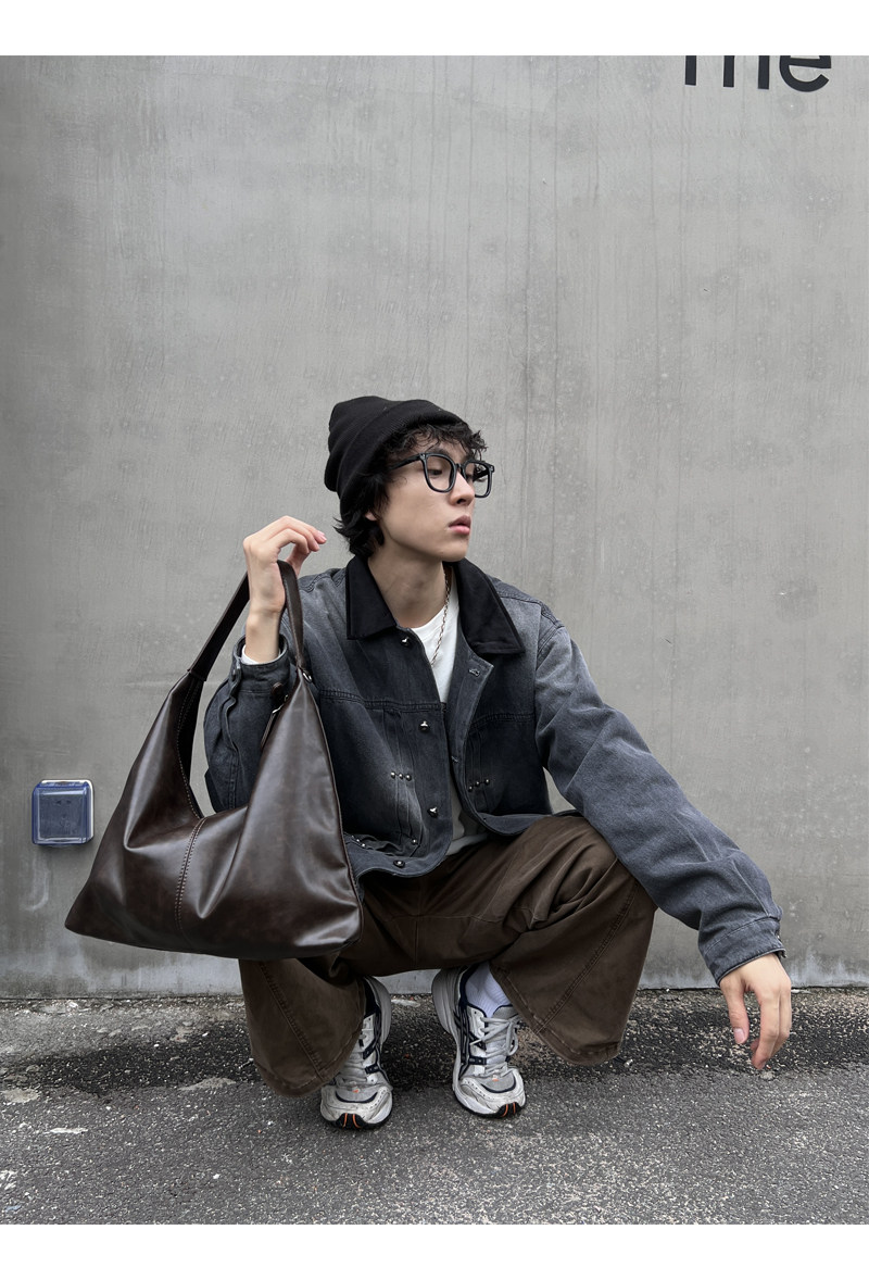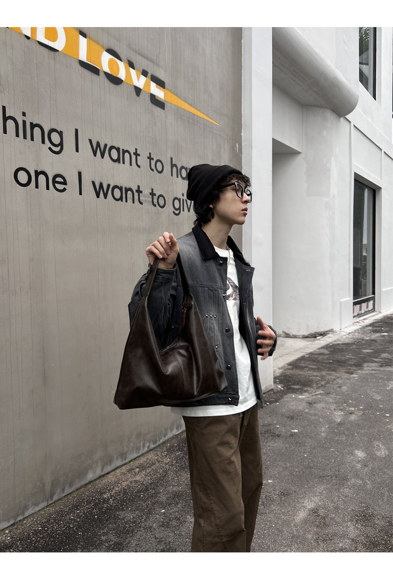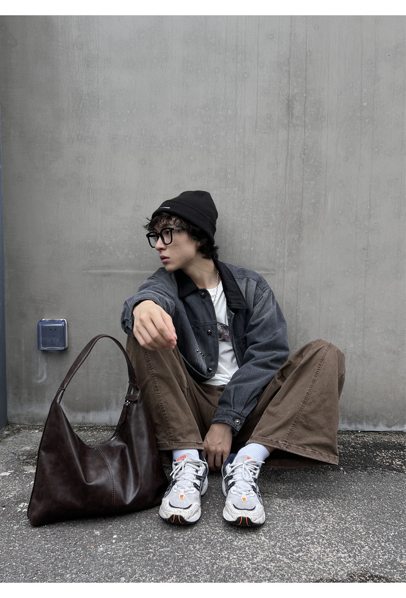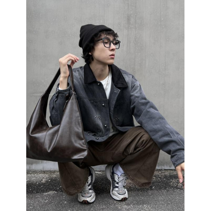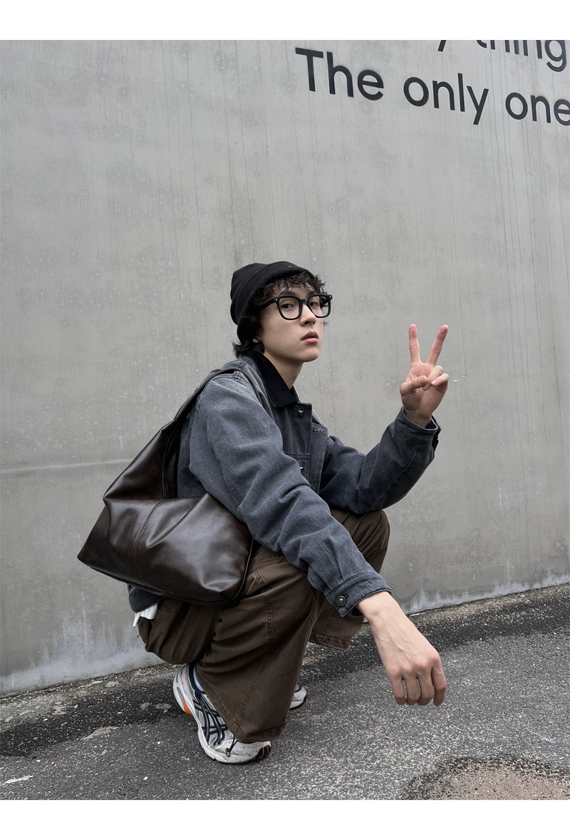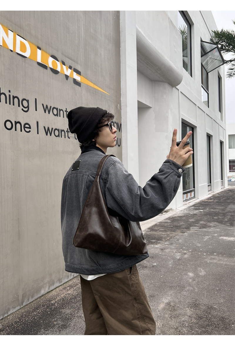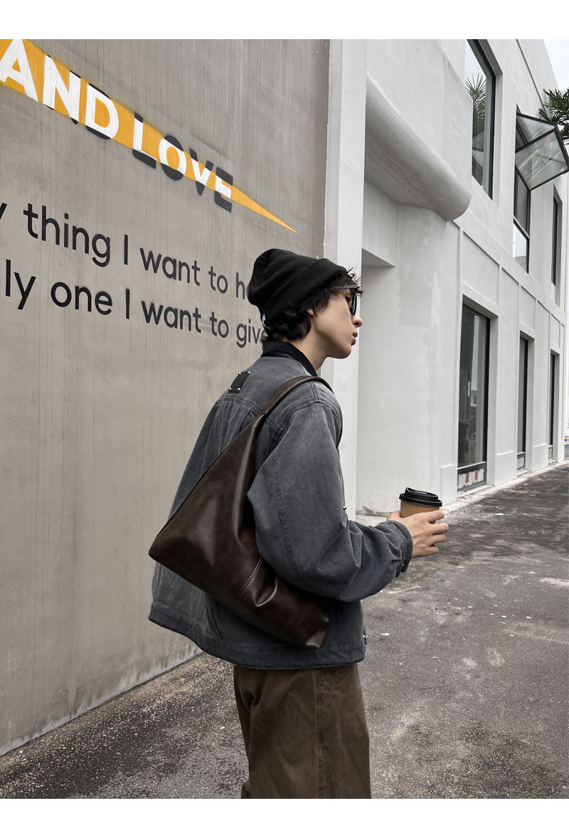 YUEN時髦單肩腋下通勤時髦男女百搭大容量手提挎包男女簡約挎包潮