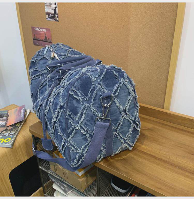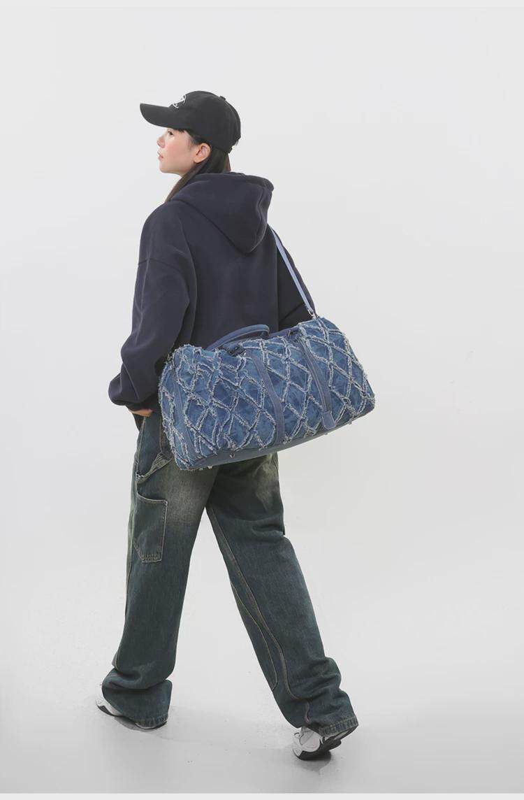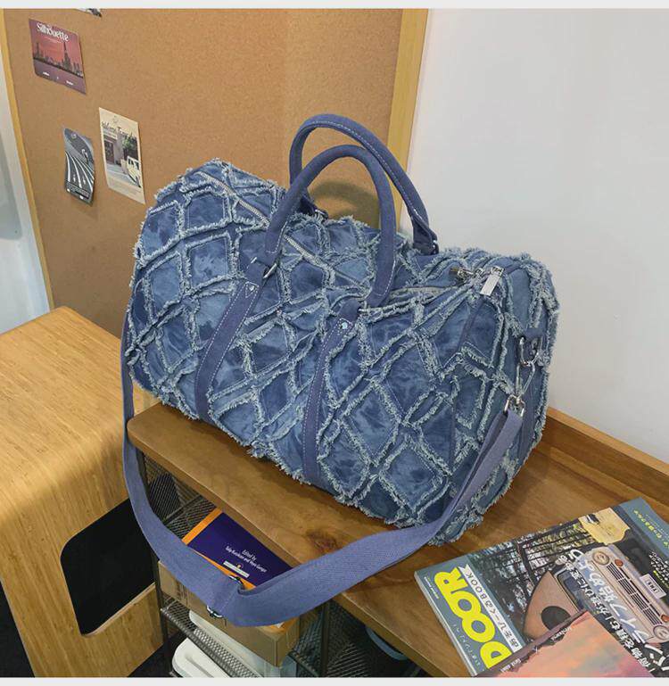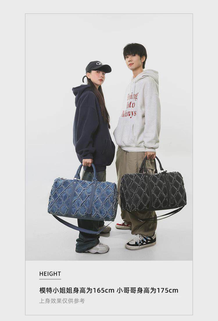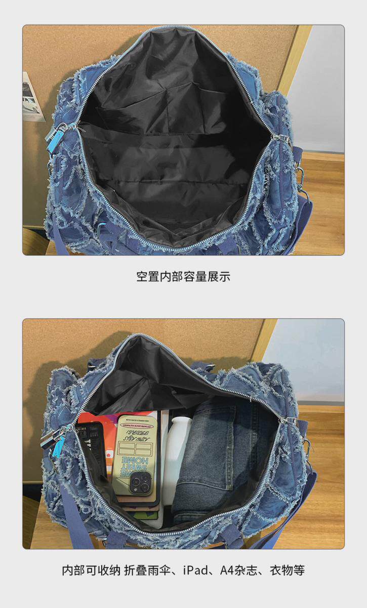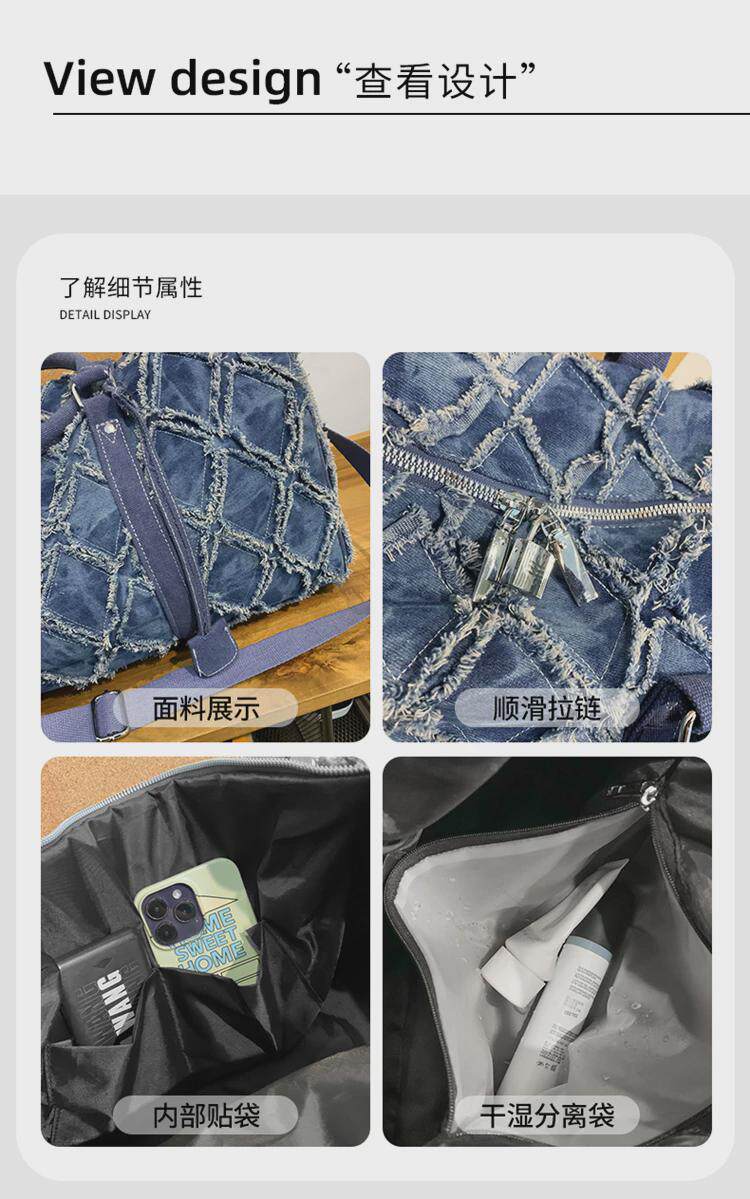 旅行包行李袋男生2025新款大容量短途包水洗牛仔布斜背手提健身包