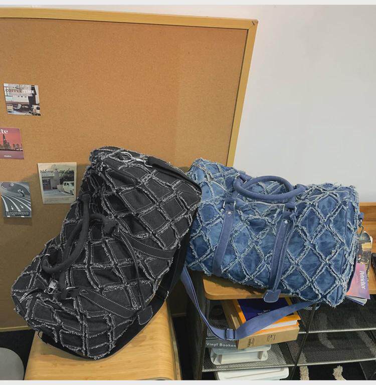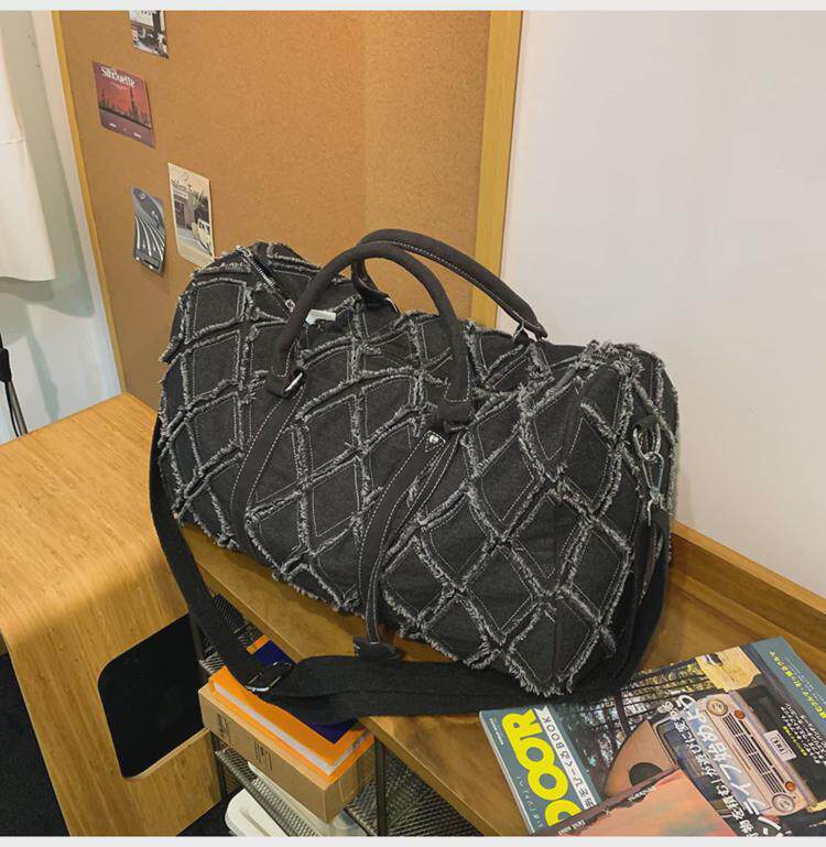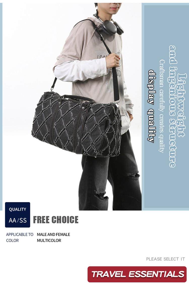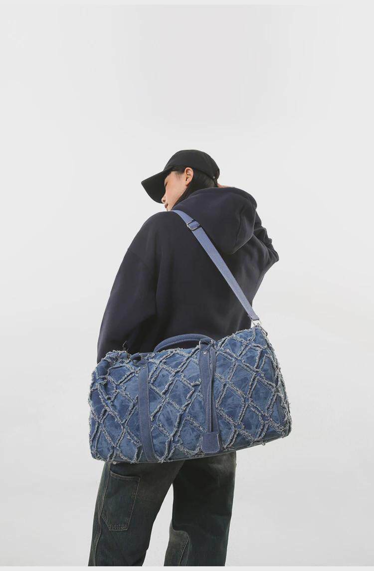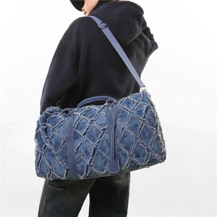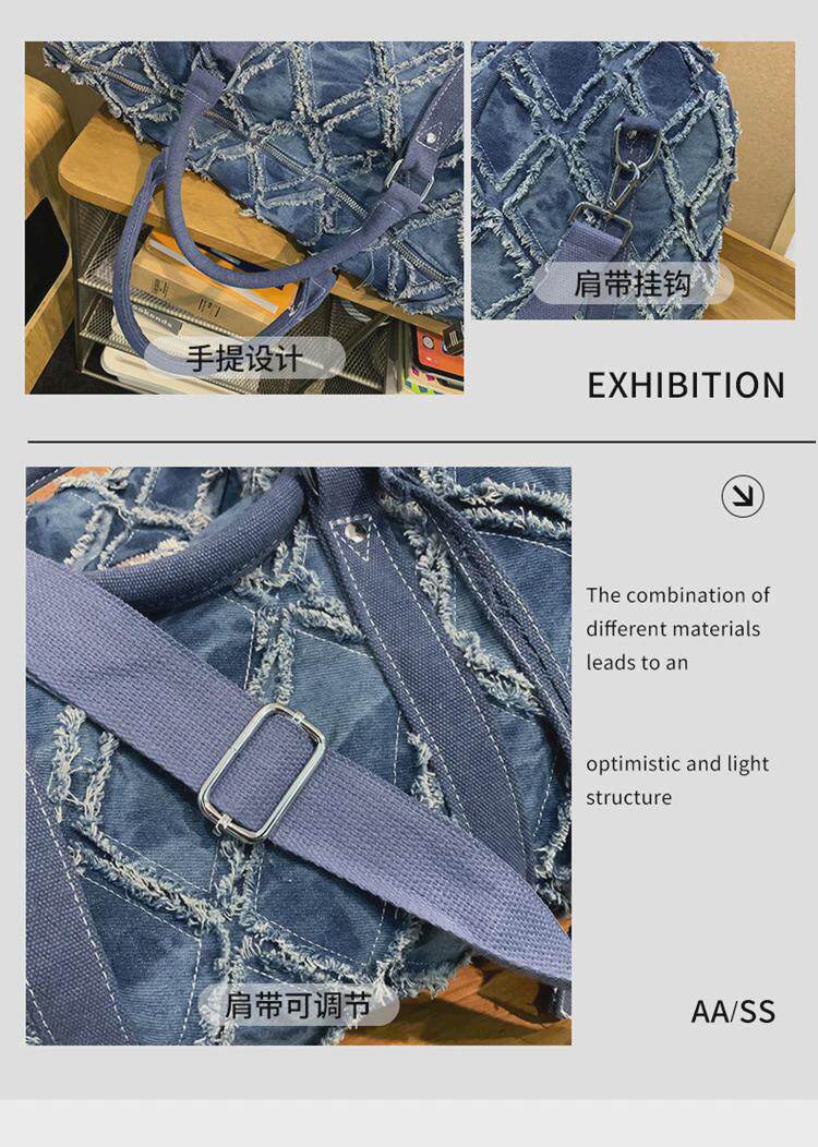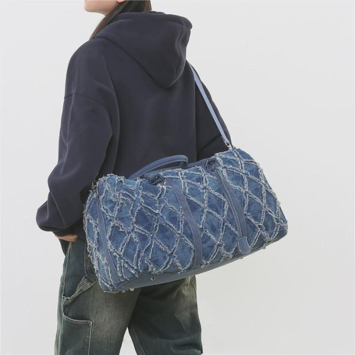 旅行包行李袋男生2025新款大容量短途包水洗牛仔布斜背手提健身包